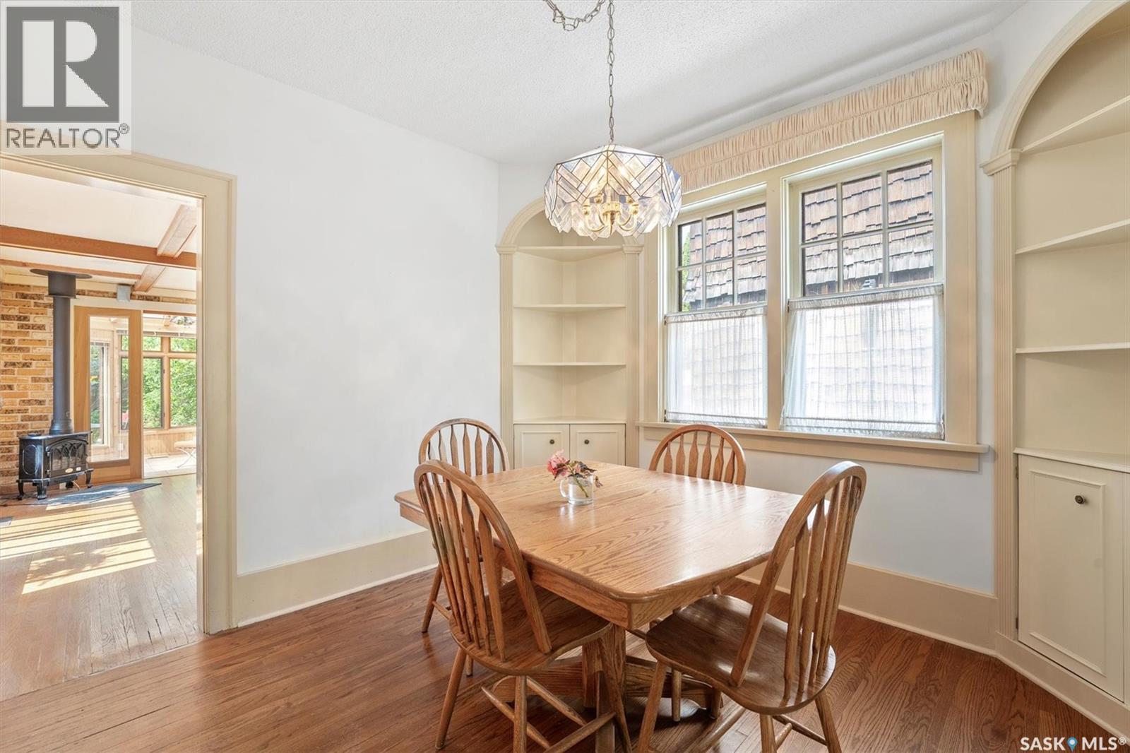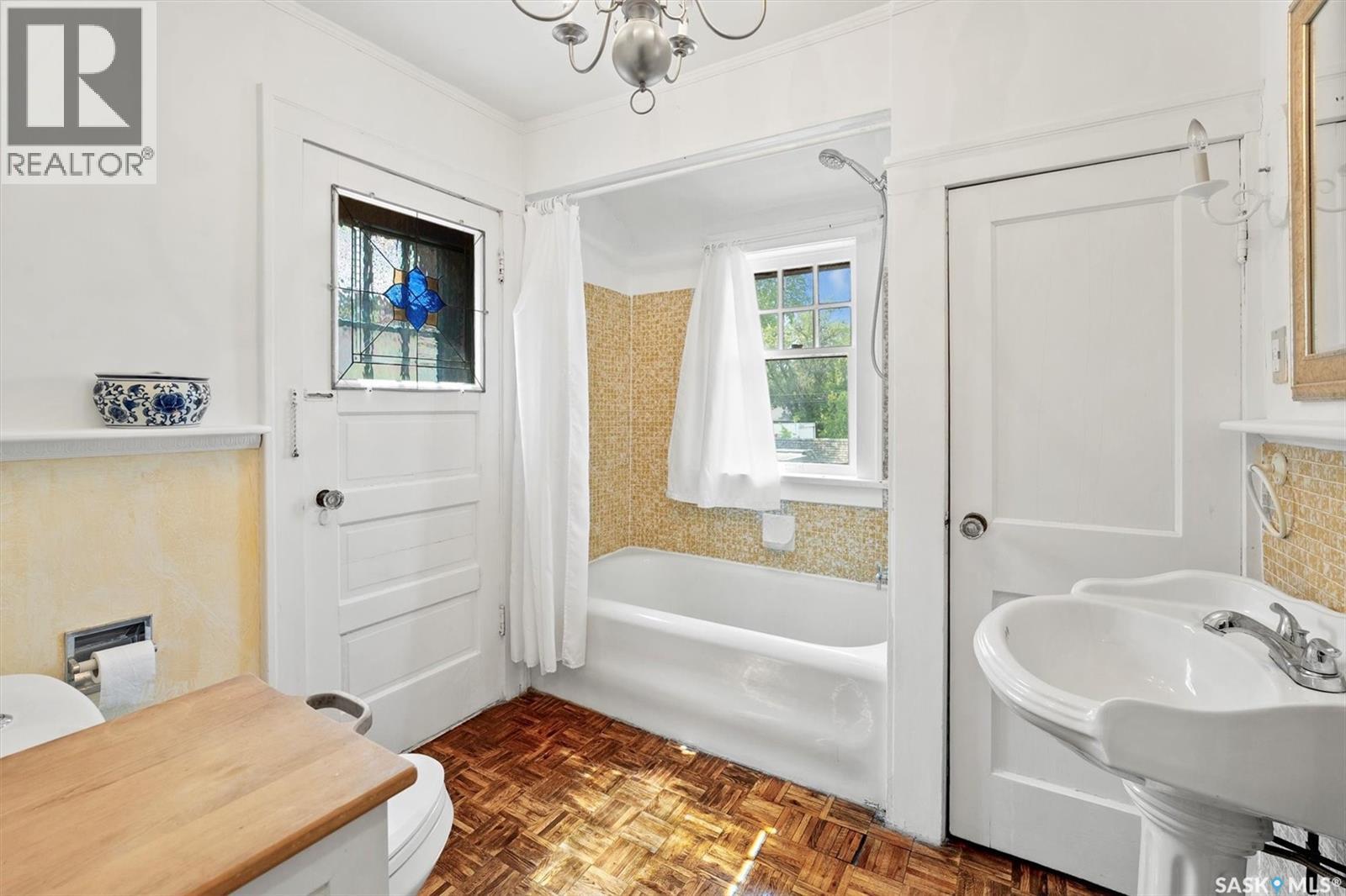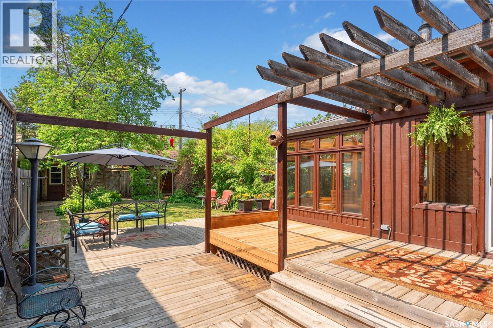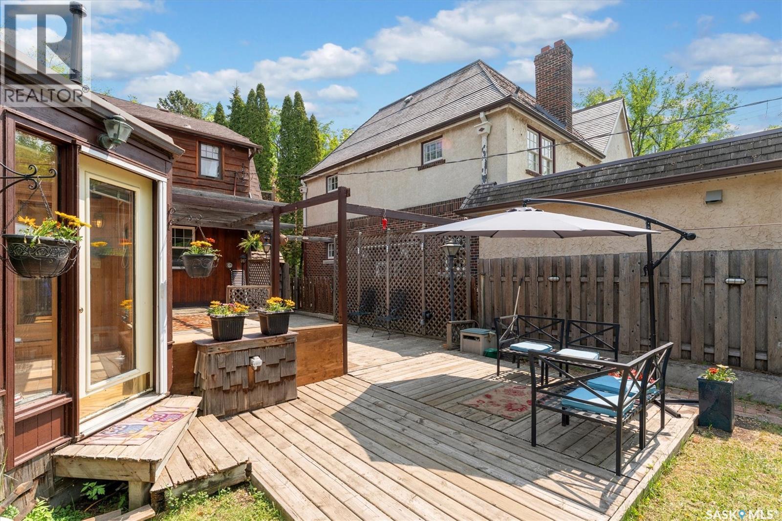 Charming character home located in the heart of the city — 811 9th Avenue, Saskatoon. Step into timeless character and warmth at this beautifully maintained two-storey home in a highly sought after location, Built in 1935 and rich with architectural charm, this 1,670 sq ft property offers a thoughtful blend of historical appeal and practical updates. Inside, you'll find a spacious and inviting layout featuring three bedrooms upstairs plus an additional den in the basement. the main level is adorned with hardwood flooring, exposed interior brick in the office, and gorgeous stained-glass windows and chandeliers that lend an elegant, vintage feel. Enjoy cozy evenings by one of the two gas fireplaces, or unwind in the stunning four-season sunroom. The kitchen and dining areas offer a generous space and the opportunity to modernize. A bright office on the main floor provides a quiet and unique workspace with character detailing throughout. The partially finished basement includes a den, 3-piece bath, laundry area, and ample storage, plus side entry access — adding flexibility for future suite potential. What truly sets this home apart is its stunning outdoor space. The large backyard is a rare find, complete with a spacious deck, two sheds, and mature landscaping offering both beauty and privacy. Top-quality Denovo triple-pane windows on the east side ensure energy efficiency while preserving the home's integrity. Located near downtown, amenities, and transit routes, this property combines location, character, and lifestyle. While there's no garage, the property offers back and side access — with plenty of room to build is desired. There is side access for a potential basement suite. Give me a call today to view this lovely property (id:43042)