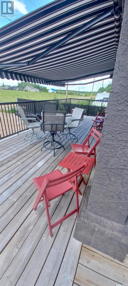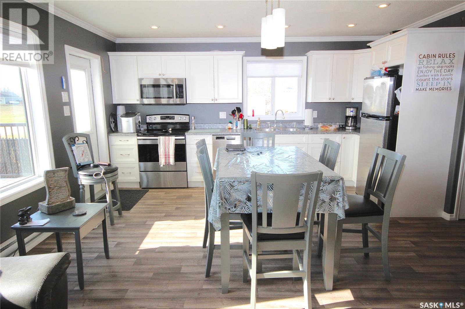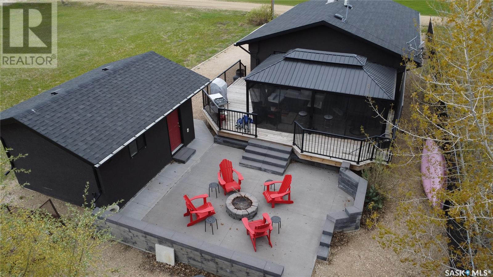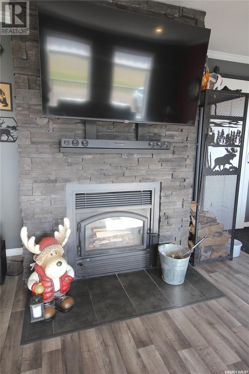 Dreaming of lake life? Make your dream come true with this 2015 built home for year round lake life at Burgis Beach (Good Spirit Lake). It offers a wrap-around deck with aluminum rails and wind screen, screened in gazebo area with steps down to a large concrete patio area with a cozy firepit. You can enjoy the morning sun with your cup of java and then move to the other side of the home to enjoy the evening sunsets - an additional electric awning has been added to provide shade. The home offers large windows for plenty of natural sunlight and the living room features a stacked stone wood burning fireplace for ambience and heat in winter (only birch has been burned and seller will leave a supply for new owner). For the cooler nights you have additional baseboard heat with controls in each room. The home sits on screw piles and a crawl space with concrete to keep out any critters - this 3.5' crawl space is insulated and heated and allows for ample additional storage. The kitchen has soft close cabinetry and includes stainless steel appliances. Also included is an air exchanger and the home is connected to Canora water line. Spend your summers enjoying the lake life instead of doing yard work as this yard is nicely xeriscaped for minimal maintenance. There is an insulated 14x18 garage, an additional shed/storage building and RV parking with a plug in. Don't forget to check out the virtual tour for an outside tour of the yard (id:43042)