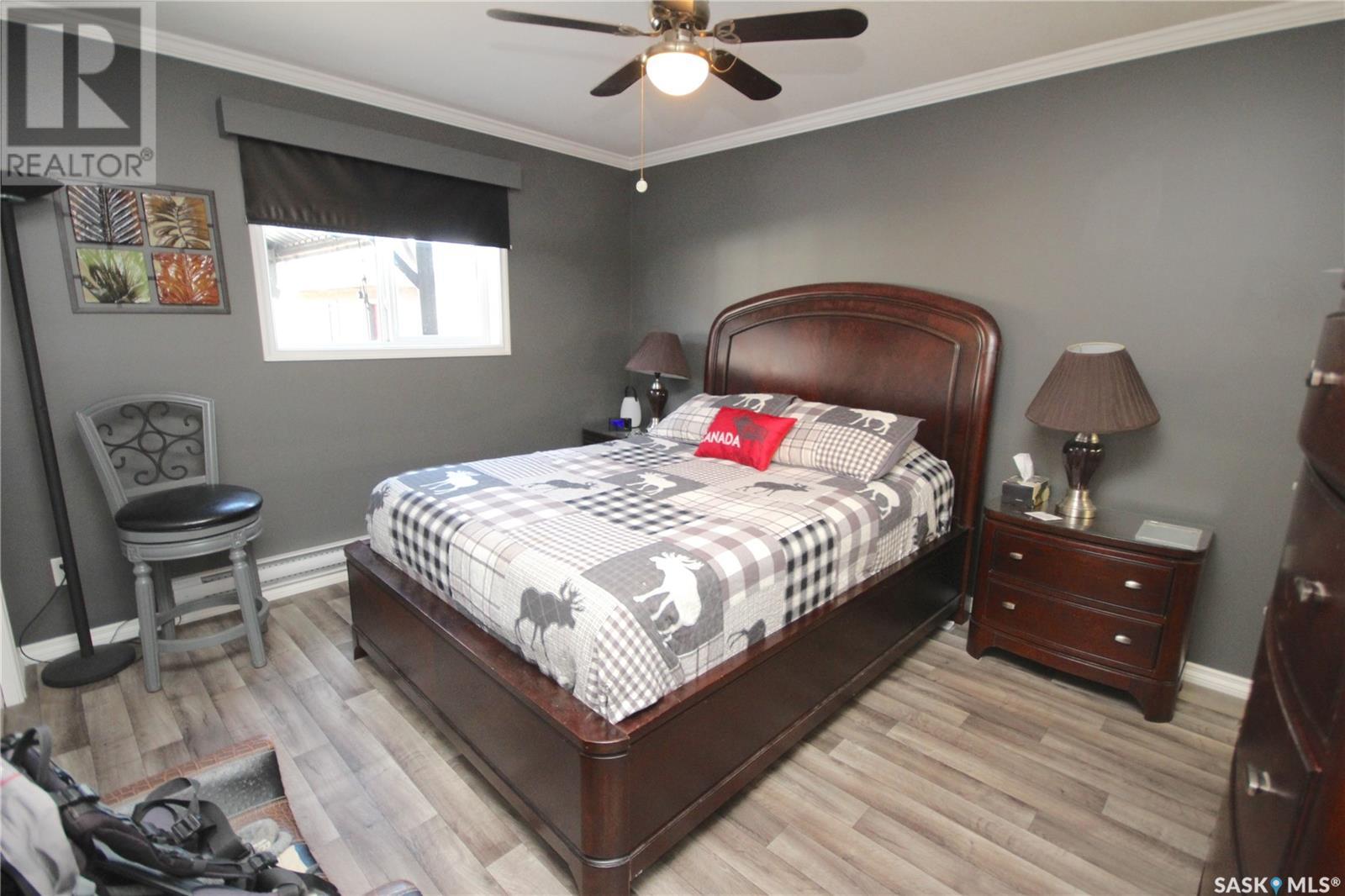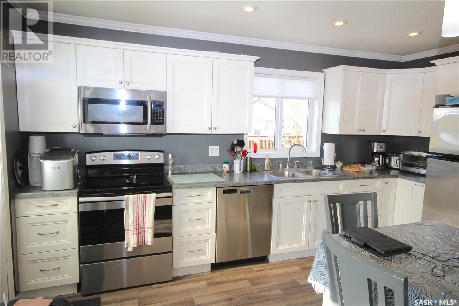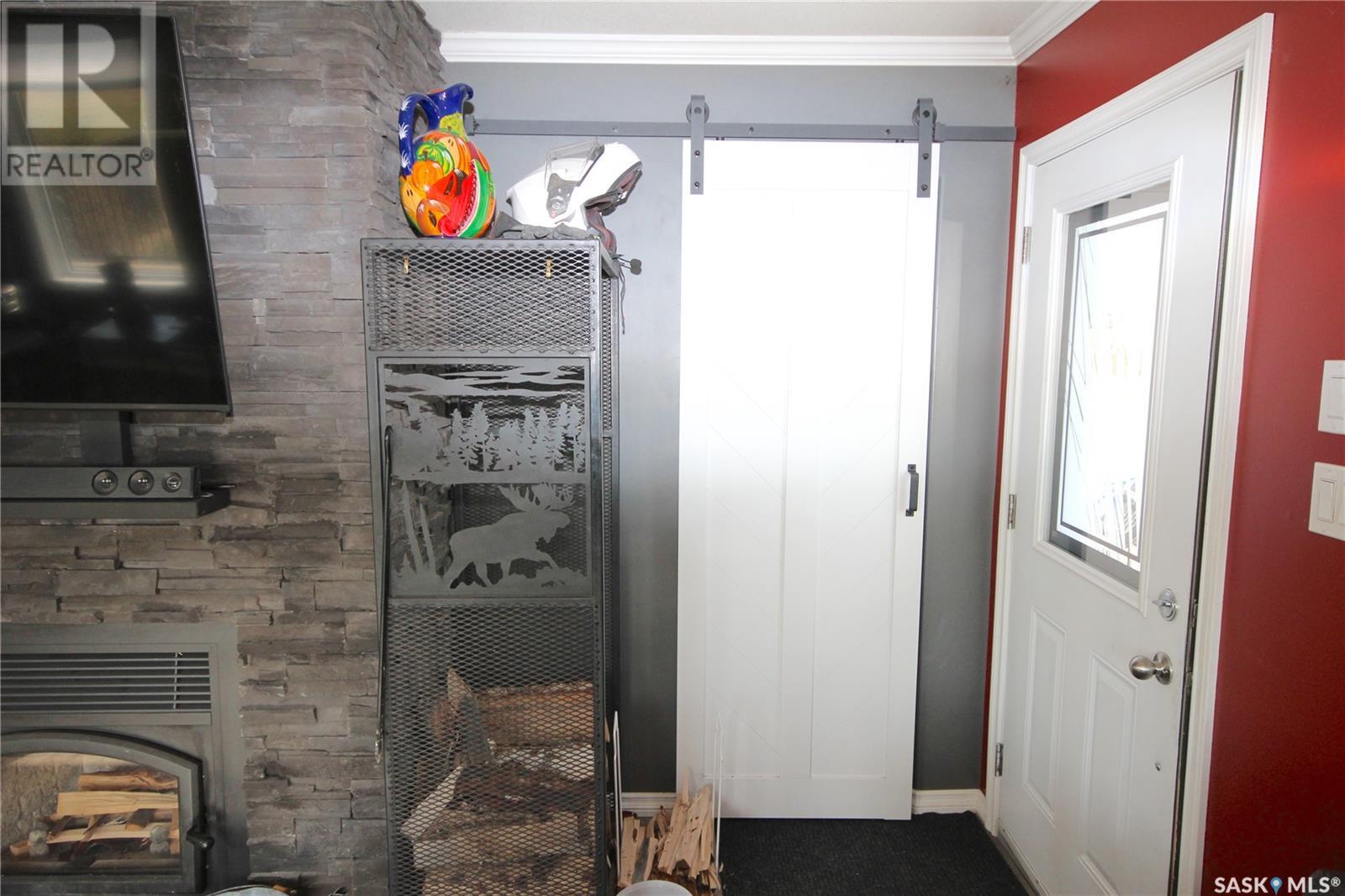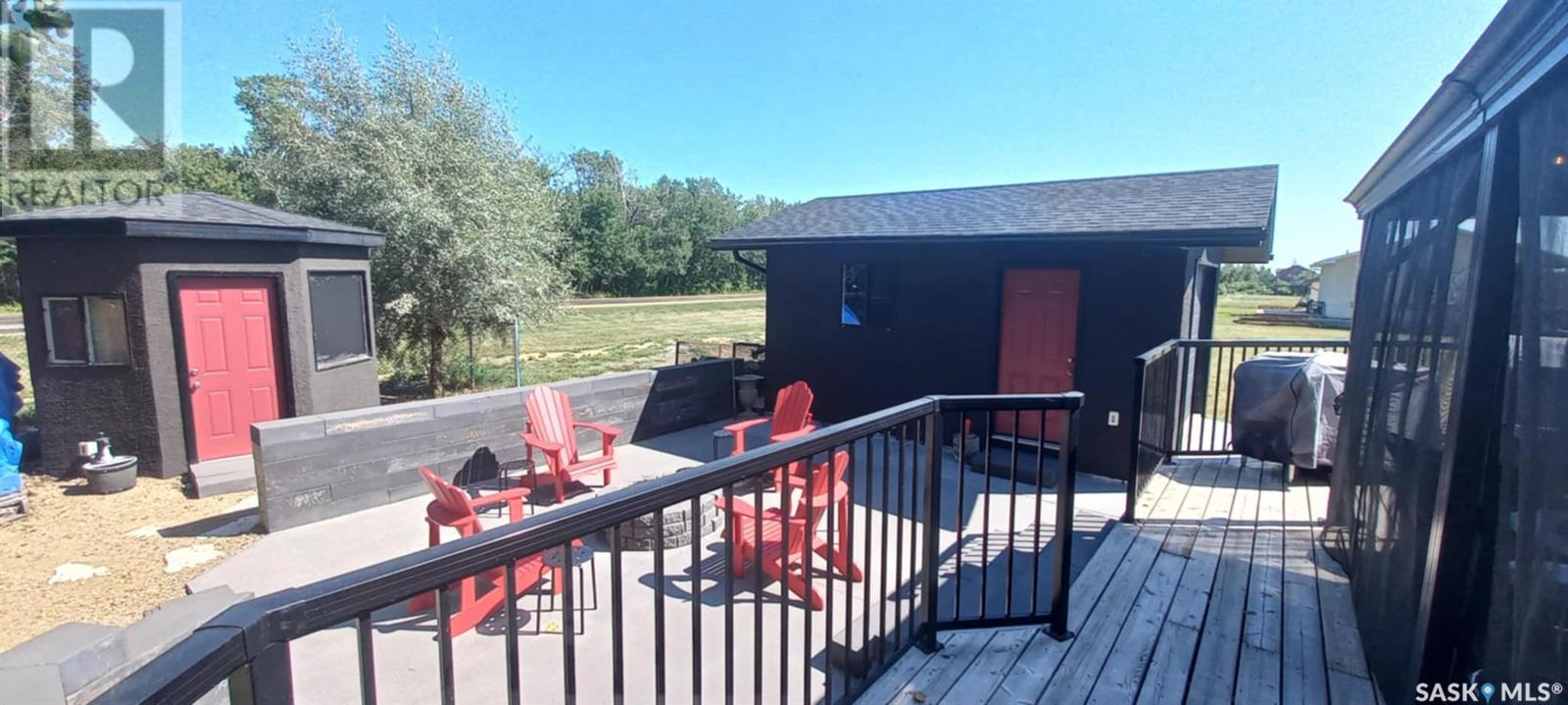 Dreaming of lake life? Make your dream come true with this 2015 built home for year round lake life at Burgis Beach (Good Spirit Lake). It offers a wrap-around deck with aluminum rails and wind screen, screened in gazebo area with steps down to a large concrete patio area with a cozy firepit. You can enjoy the morning sun with your cup of java and then move to the other side of the home to enjoy the evening sunsets - an additional electric awning has been added to provide shade. The home offers large windows for plenty of natural sunlight and the living room features a stacked stone wood burning fireplace for ambience and heat in winter (only birch has been burned and seller will leave a supply for new owner). For the cooler nights you have additional baseboard heat with controls in each room. The home sits on screw piles and a crawl space with concrete to keep out any critters - this 3.5' crawl space is insulated and heated and allows for ample additional storage. The kitchen has soft close cabinetry and includes stainless steel appliances. Also included is an air exchanger and the home is connected to Canora water line. Spend your summers enjoying the lake life instead of doing yard work as this yard is nicely xeriscaped for minimal maintenance. There is an insulated 14x18 garage, an additional shed/storage building and RV parking with a plug in. Don't forget to check out the virtual tour for an outside tour of the yard (id:43042)
