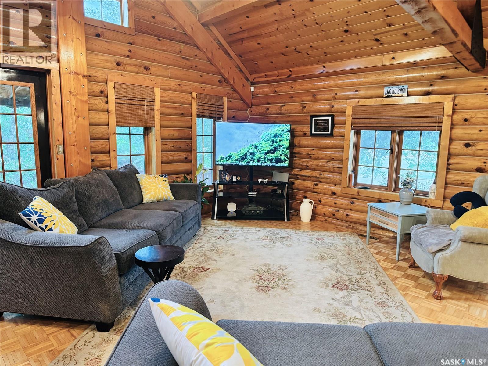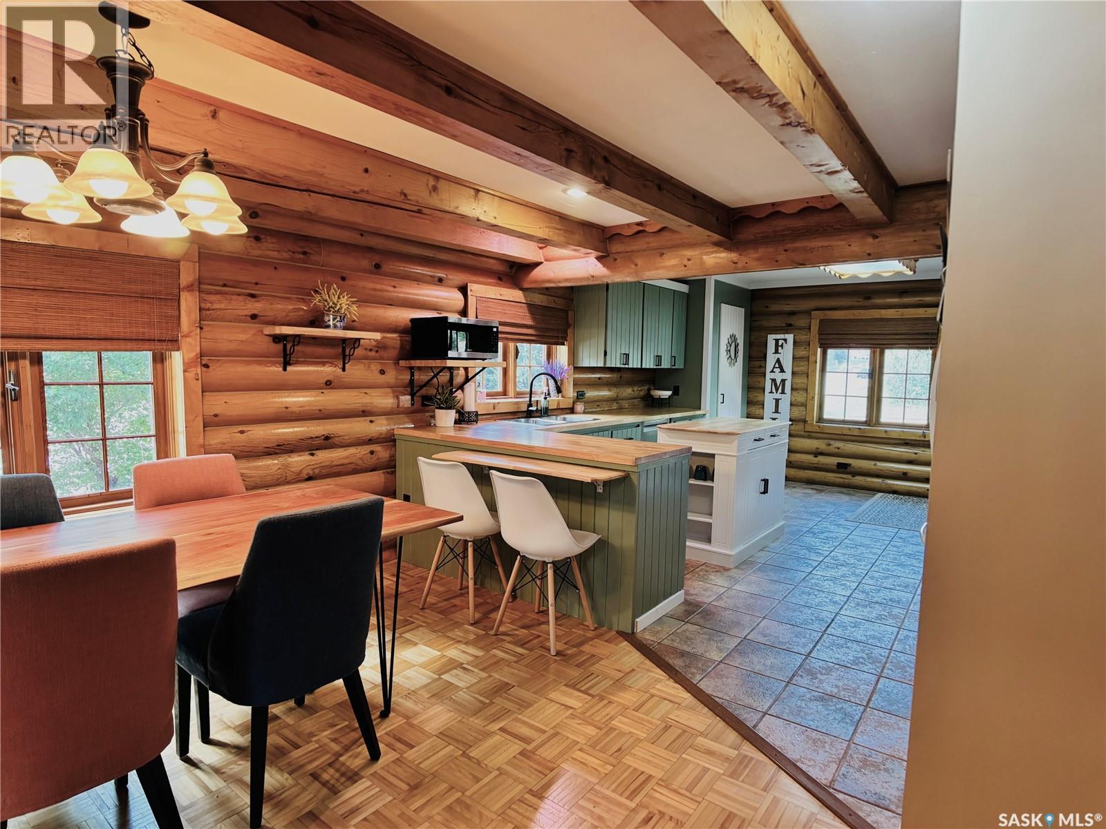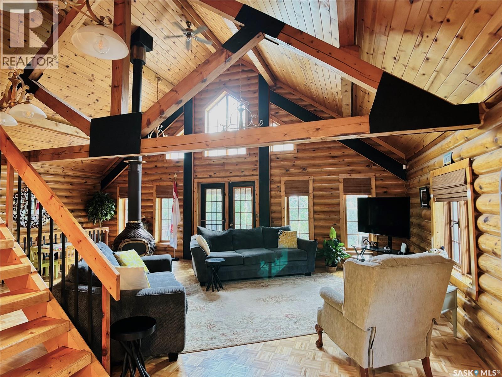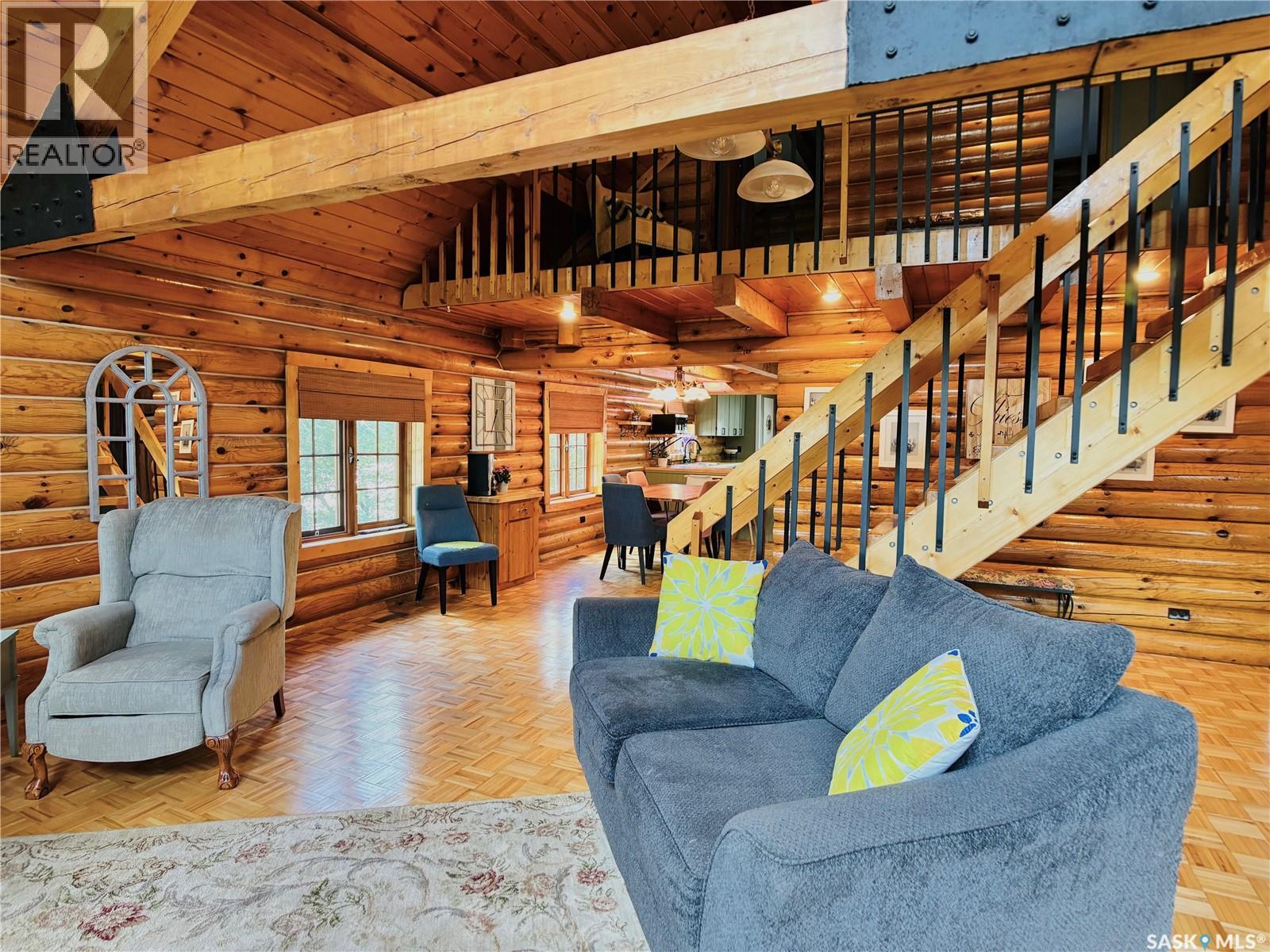 Welcome to this beautiful 1712 square foot log home, offering the perfect blend of rustic charm and modern comfort. Nestled in a serene setting, this 2-bedroom, 2-bathroom retreat boasts towering vaulted ceilings and numerous windows that fill the open-concept main floor with natural light. The inviting expansive living space features warm log walls, a custom fireplace and a seamless flow into the kitchen and dining areas—ideal for entertaining or quiet evenings in. Step outside to your park-like backyard, complete with a pergola, mature landscaping, and plenty of room to relax or entertain guests. The yard and home have both been meticulously maintained allowing you to just move in! Who needs a vacation home when you have this gem to call home? Enjoy peace of mind with numerous recent updates throughout the home, all while embracing the timeless character of log cabin living. Whether you're sipping coffee by the fire or enjoying the backyard oasis from the deck, this home offers year-round comfort and tranquility. This is a rare opportunity to own a unique and inviting log home with modern flair. Don’t miss your chance to experience the perfect combination of cozy, rustic charm and modern convenience. Call to book your private showing today! (id:43042)