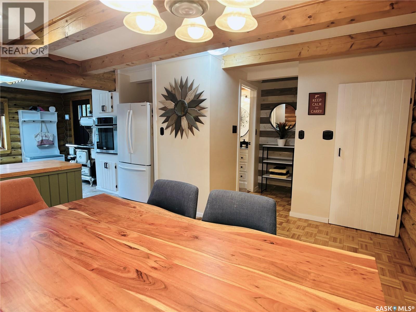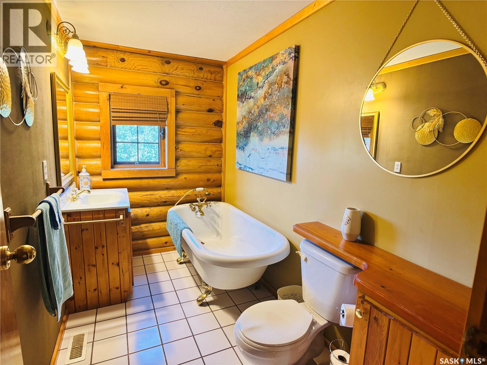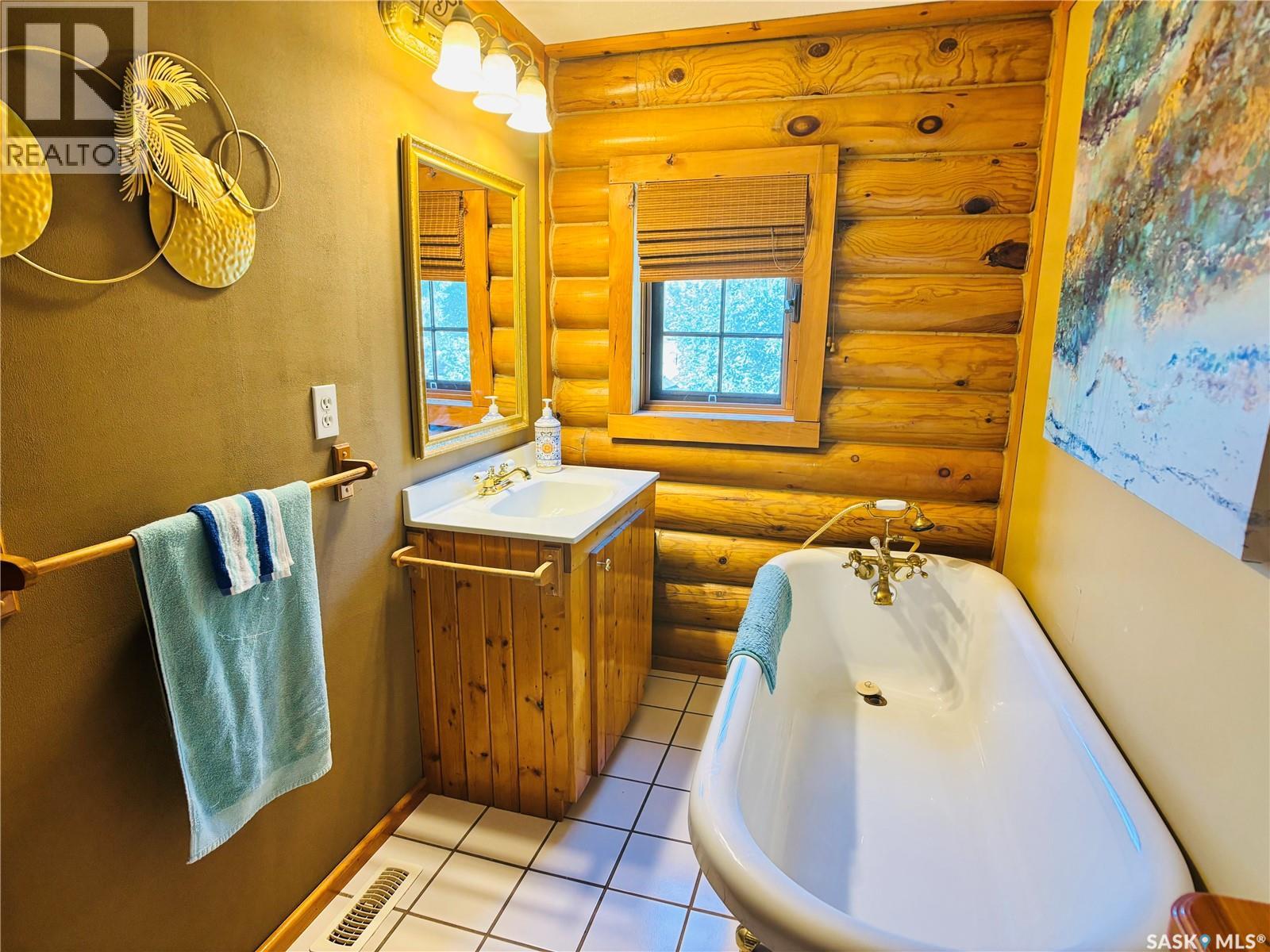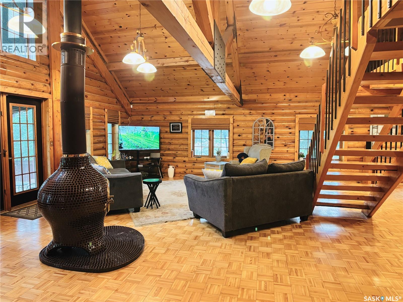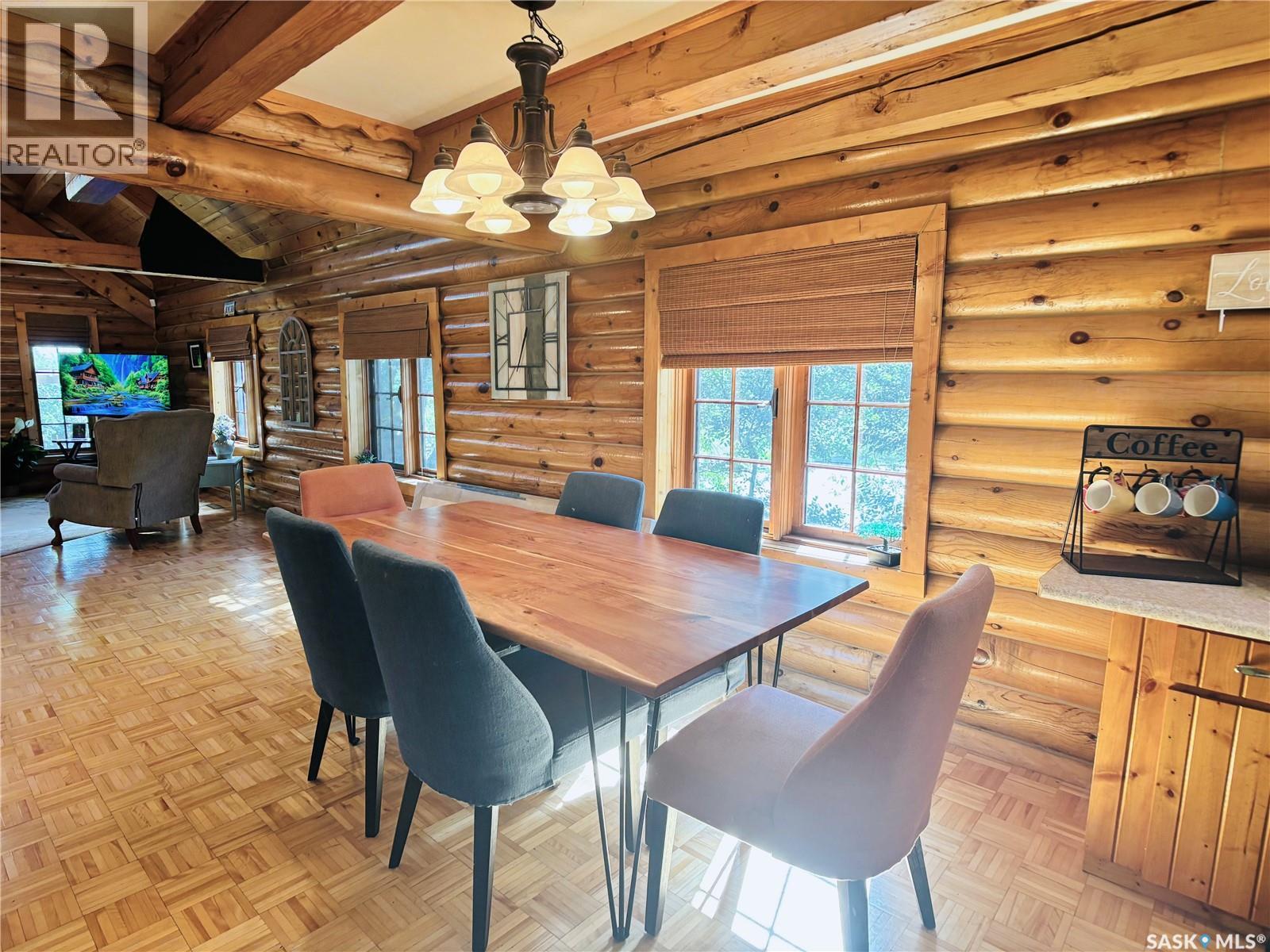 Welcome to this beautiful 1712 square foot log home, offering the perfect blend of rustic charm and modern comfort. Nestled in a serene setting, this 2-bedroom, 2-bathroom retreat boasts towering vaulted ceilings and numerous windows that fill the open-concept main floor with natural light. The inviting expansive living space features warm log walls, a custom fireplace and a seamless flow into the kitchen and dining areas—ideal for entertaining or quiet evenings in. Step outside to your park-like backyard, complete with a pergola, mature landscaping, and plenty of room to relax or entertain guests. The yard and home have both been meticulously maintained allowing you to just move in! Who needs a vacation home when you have this gem to call home? Enjoy peace of mind with numerous recent updates throughout the home, all while embracing the timeless character of log cabin living. Whether you're sipping coffee by the fire or enjoying the backyard oasis from the deck, this home offers year-round comfort and tranquility. This is a rare opportunity to own a unique and inviting log home with modern flair. Don’t miss your chance to experience the perfect combination of cozy, rustic charm and modern convenience. Call to book your private showing today! (id:43042)