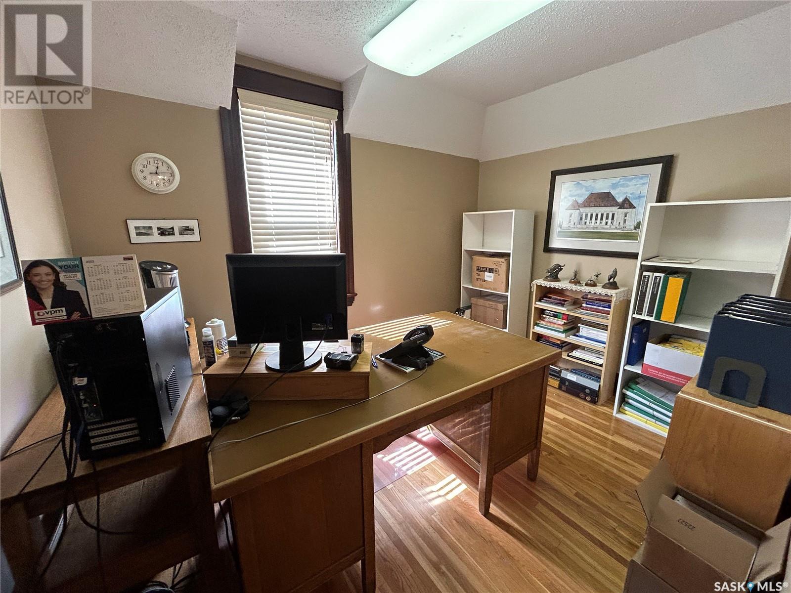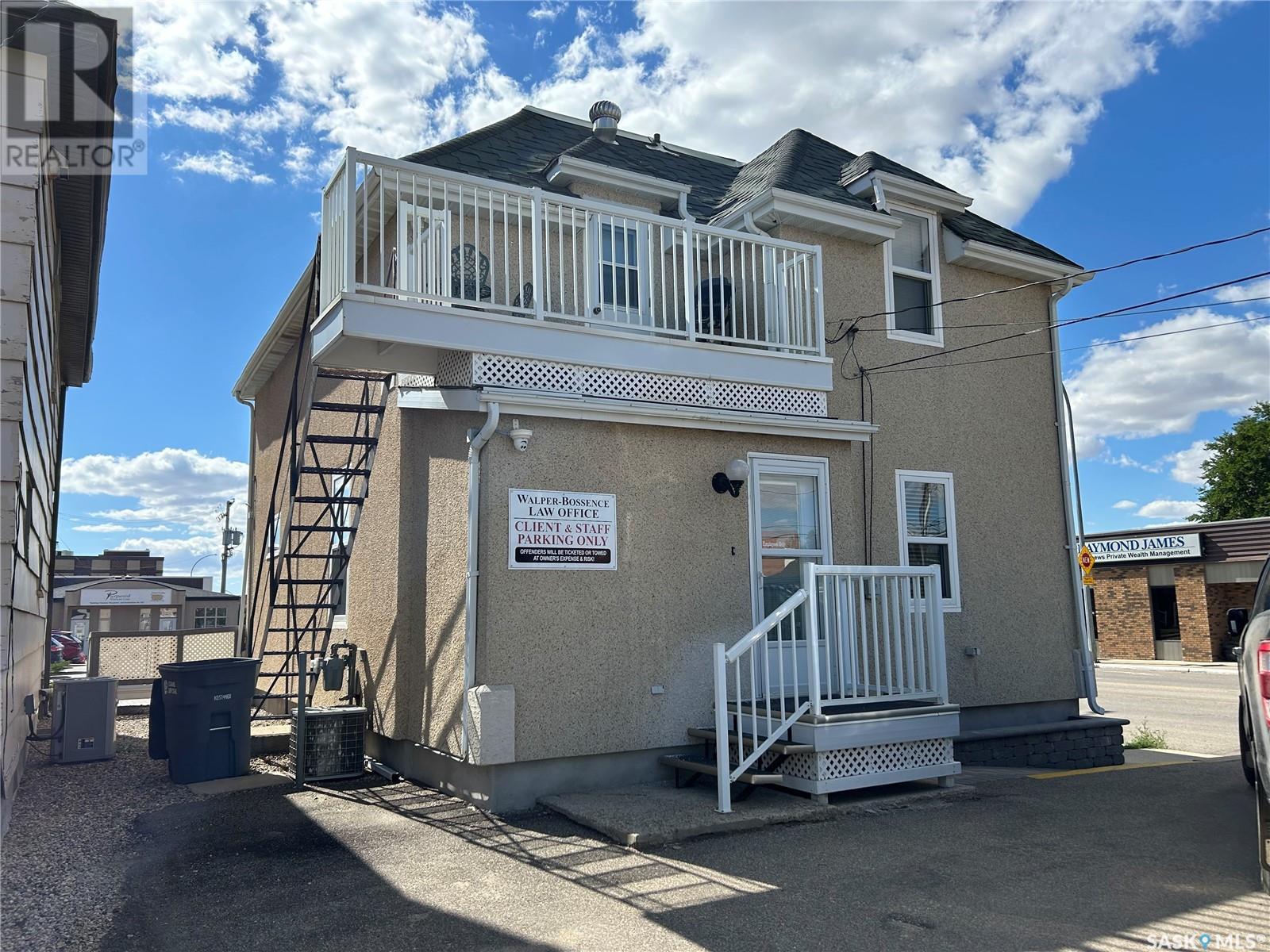 Stunning character building located in the heart of downtown Moose Jaw with over 1600 sqft of usable space the possibilities of use for this building are endless. With it being zoned C2 you are able to run your business out of the main, with a full kitchen, bathroom and laundry with 2 possible bedrooms on the second floor you would be able to save money and live where you work. As you walk into the waiting & reception area it will be hard not to notice the charm and the maintenance of this building. Also on the main level is 1 closed office space and 2 employee work areas. No lack of parking as there is a large parking lot in the back that had recently been re surfaced. This building is wheelchair accessible and has a second floor emergency escape stairwell connected to a small balcony. This is a great property with plenty of potential!! Some other improvements that have been done are: the chimney has been repoitned, New brick stone from the front side walk to the building, pardging, Book your appointment to view today. (id:43042)