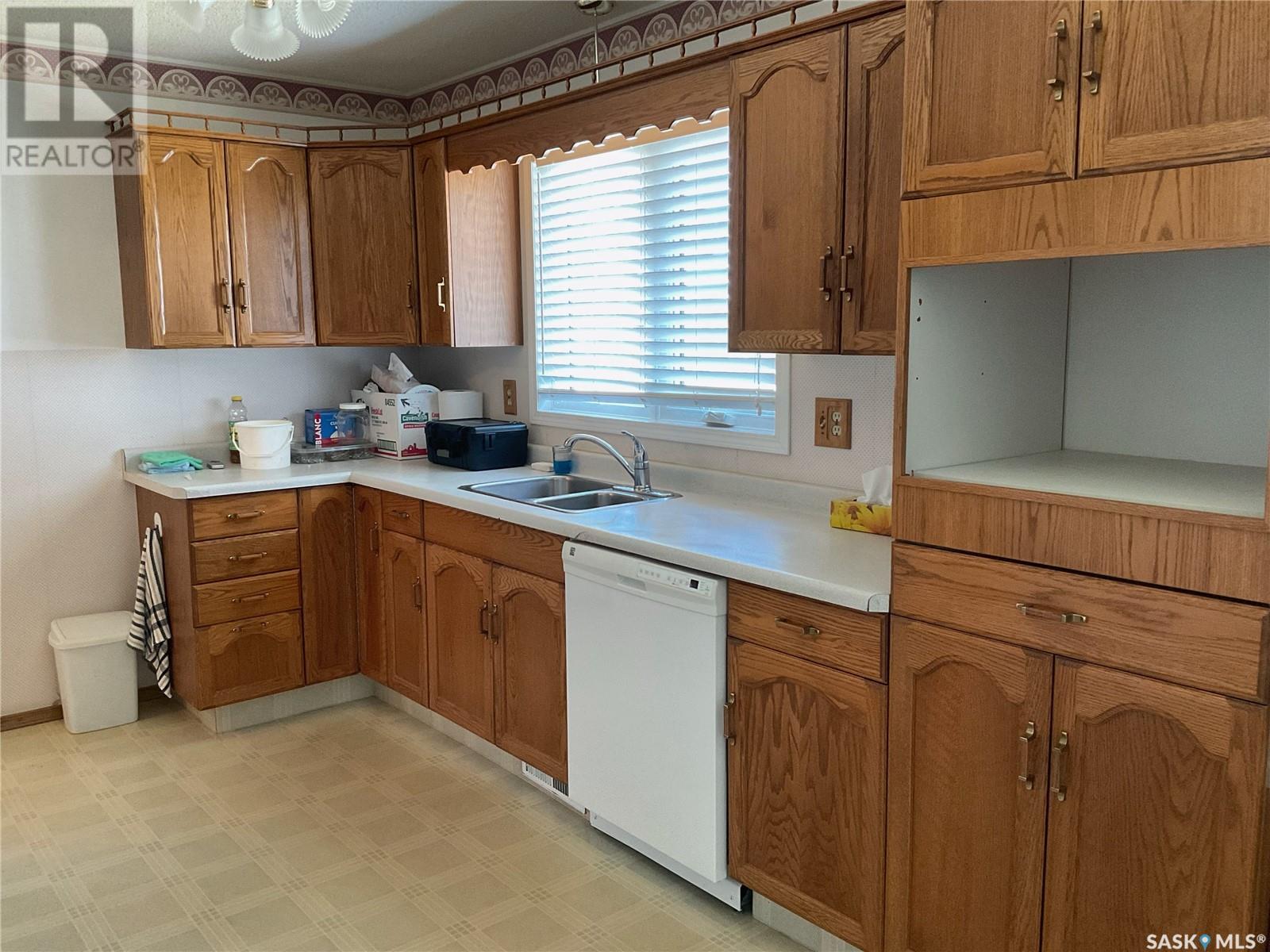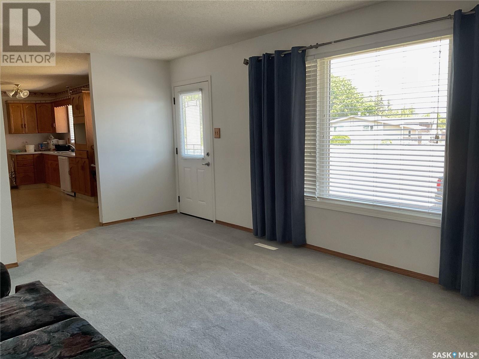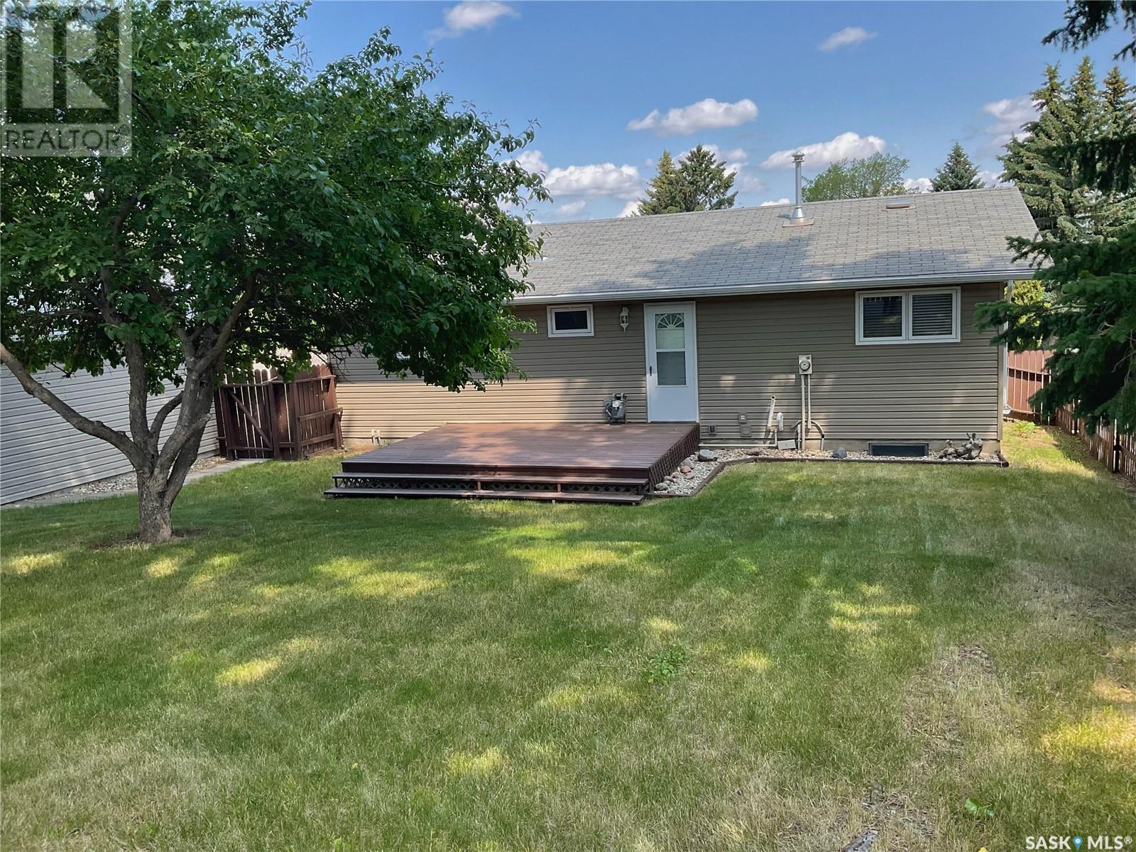 Welcome to this well-maintained and move-in ready bungalow nestled on a quiet cul-de-sac in Swift Current's desirable southwest neighborhood. Just steps away from a K-8 school, skating rink, multiple parks, and an outdoor swimming pool. This charming 3-bedroom, 2-bathroom home sits on a generous lot, with a beautifully landscaped backyard featuring a raised deck, mature trees, and ample green space. Inside you'll find a bright and inviting living area, an eat-in kitchen with solid oak cabinetry, a gas stove, and abundant storage. The main floor features two bedrooms and a 4-piece bathroom, while the fully finished basement offers a third bedroom, a 3-piece bathroom, laundry room, and plenty of storage space. This property offers the ideal setting for family living. (id:43042)