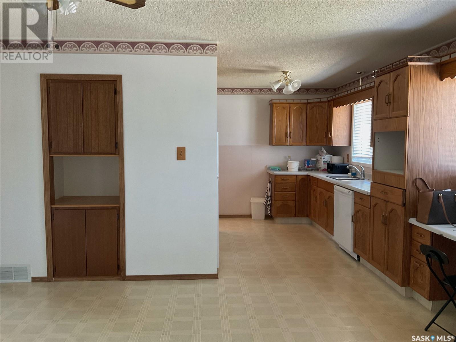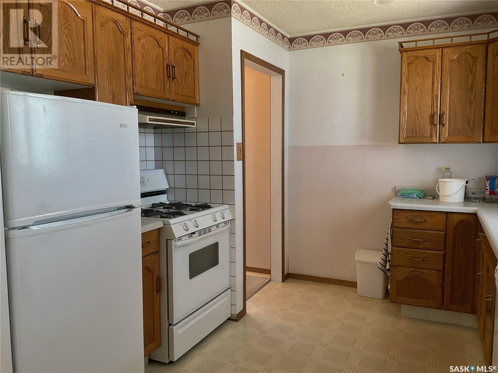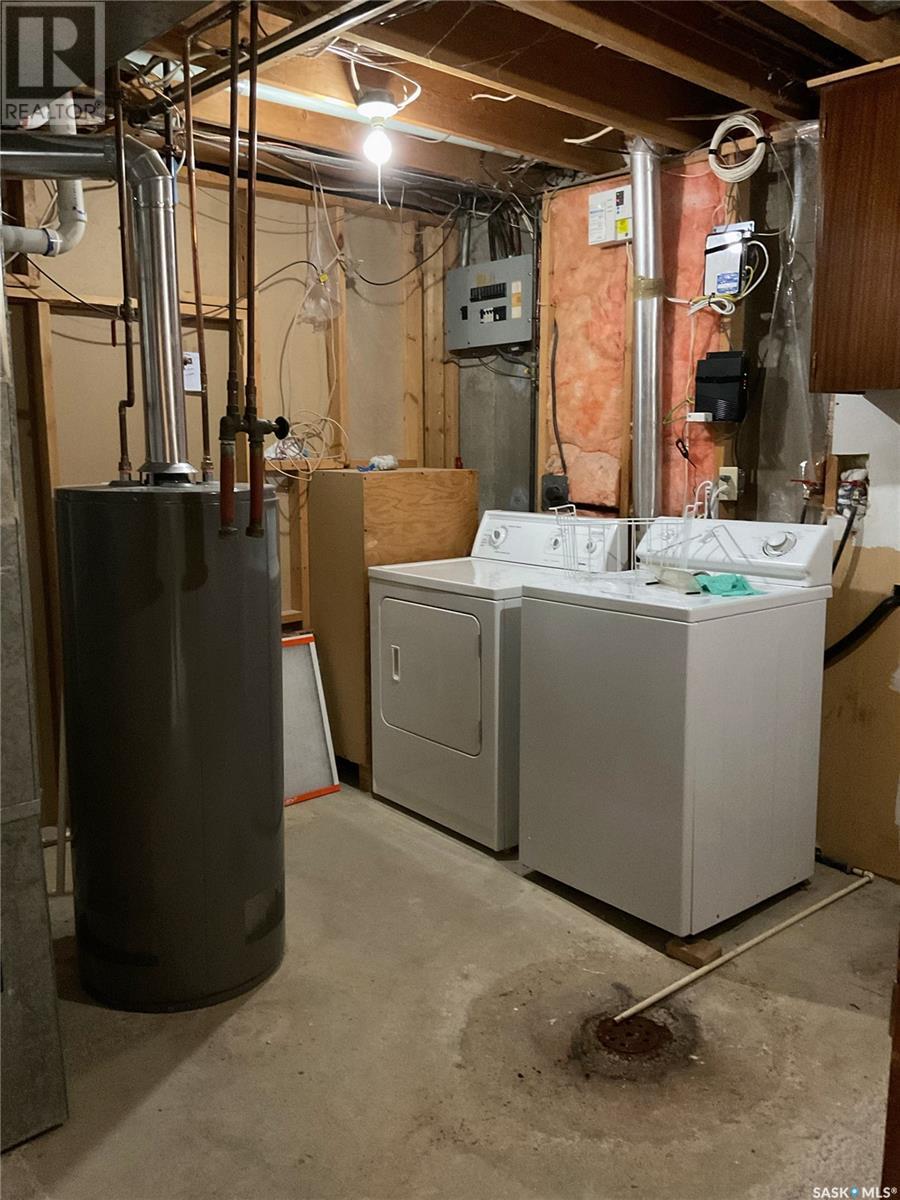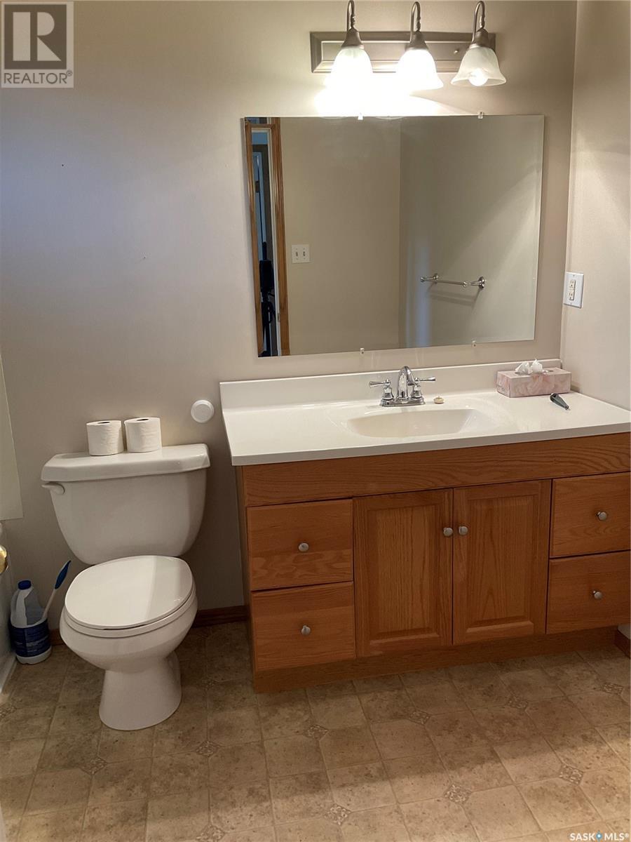 Welcome to this well-maintained and move-in ready bungalow nestled on a quiet cul-de-sac in Swift Current's desirable southwest neighborhood. Just steps away from a K-8 school, skating rink, multiple parks, and an outdoor swimming pool. This charming 3-bedroom, 2-bathroom home sits on a generous lot, with a beautifully landscaped backyard featuring a raised deck, mature trees, and ample green space. Inside you'll find a bright and inviting living area, an eat-in kitchen with solid oak cabinetry, a gas stove, and abundant storage. The main floor features two bedrooms and a 4-piece bathroom, while the fully finished basement offers a third bedroom, a 3-piece bathroom, laundry room, and plenty of storage space. This property offers the ideal setting for family living. (id:43042)