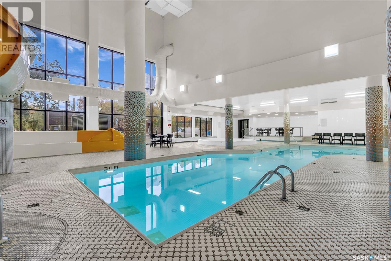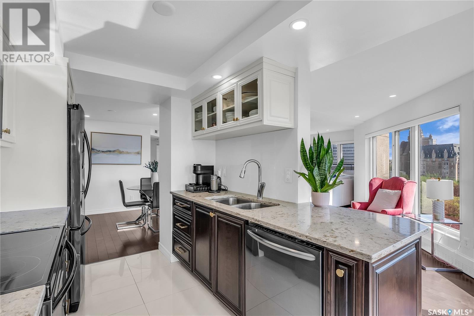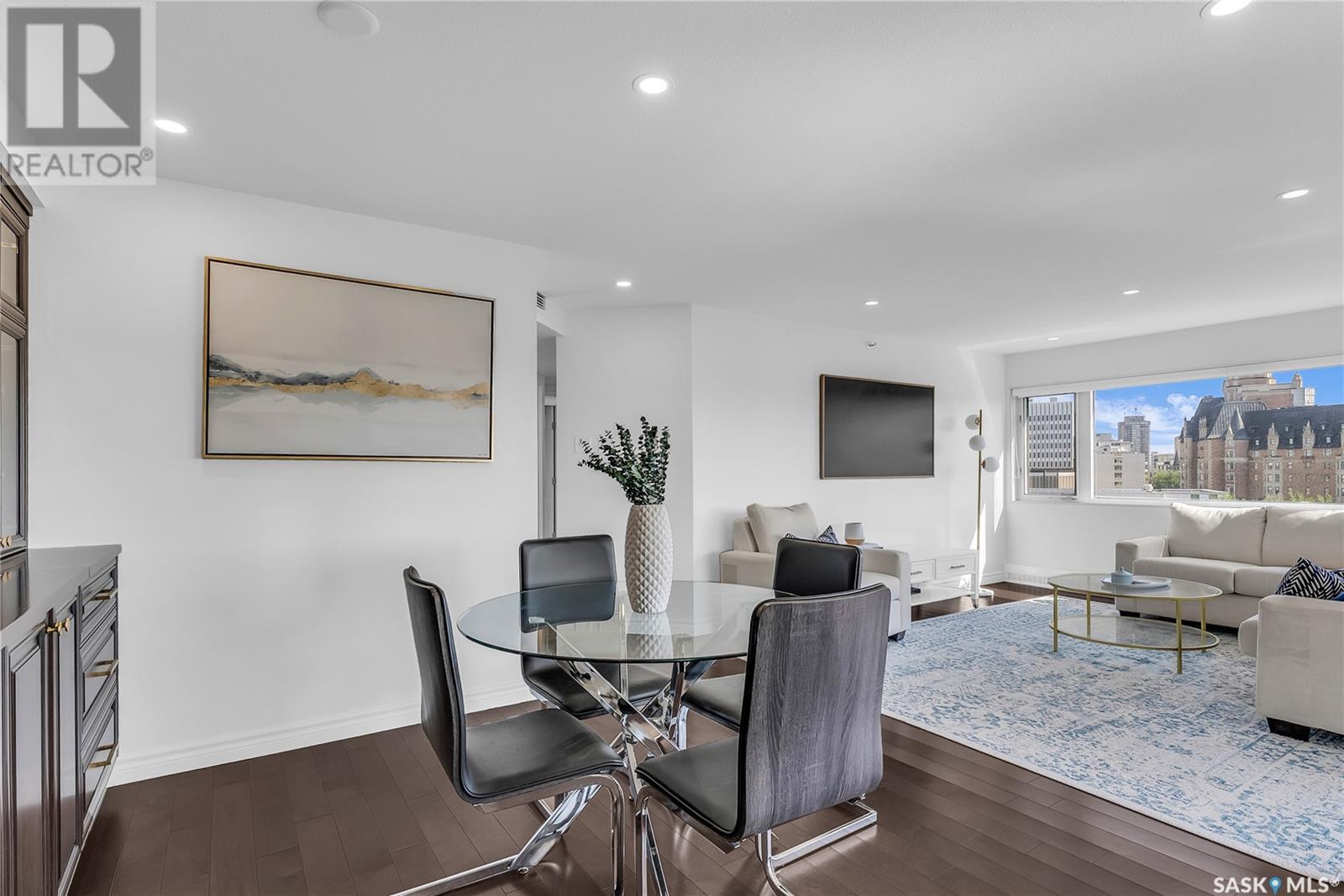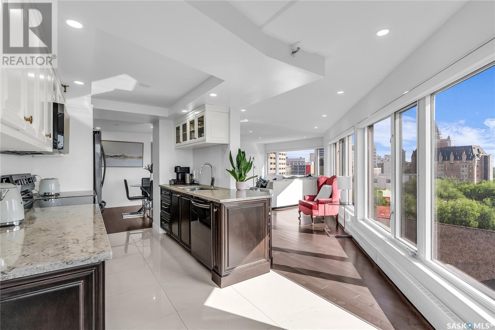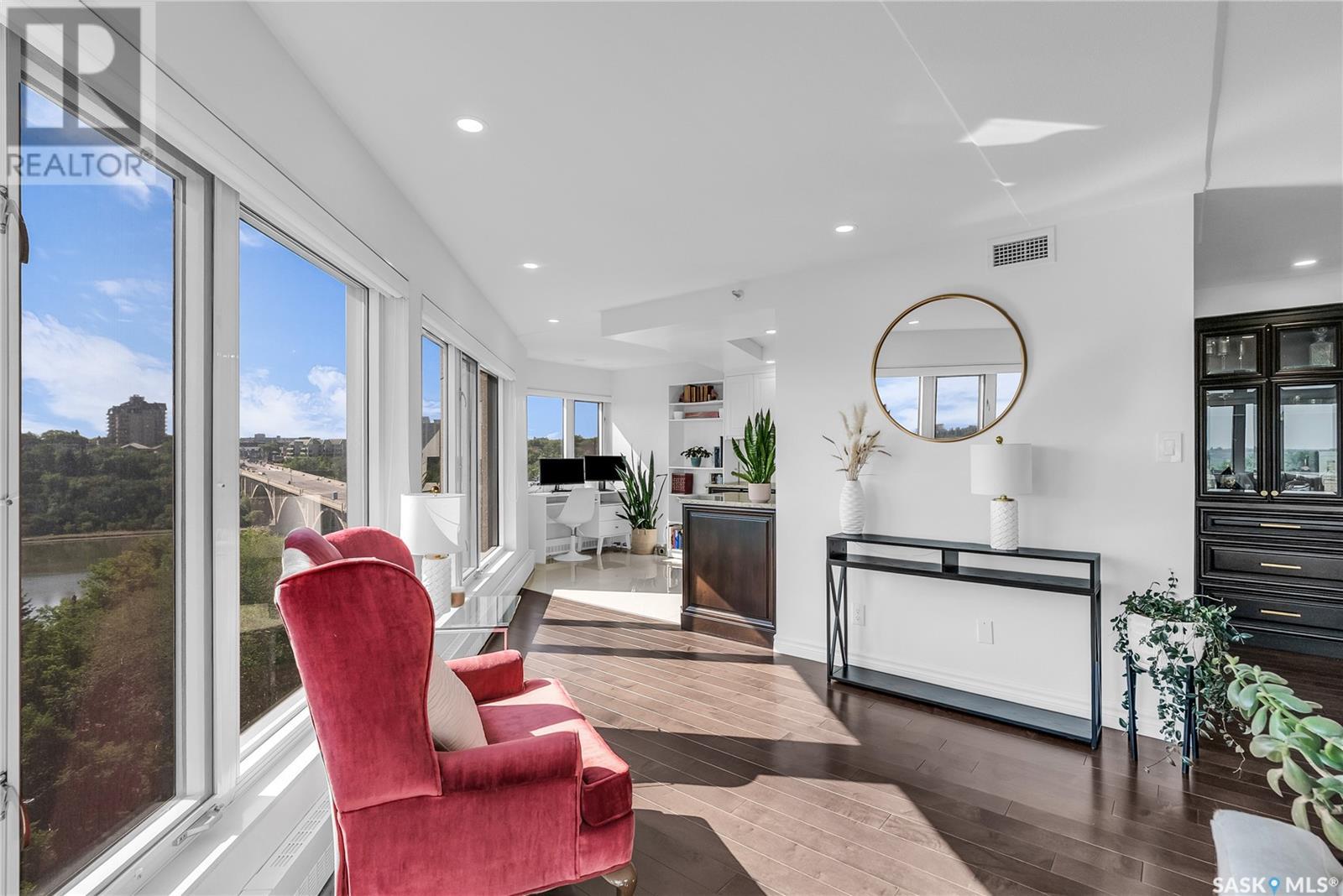 Iconic Views & Urban Living. Welcome to The Renaissance, where location, lifestyle, and luxury come together. This 2-bedroom, 2- bathroom condo has been extensively renovated and is completely move-in ready—offering not just a home, but a statement. From the moment you step inside, the unmatched view steals the show—looking directly onto the historic Bessborough Hotel and beyond. Whether it's sunrise coffees or sunset wine, your private space frames one of the best views in Saskatoon. Located just steps from the Saskatchewan River, walking and running trails, and a short stroll to Broadway, you’re never far from local gems like Poached, Shelter, and Cafe Del Rey. The best of Saskatoon’s dining, coffee, and culture is truly at your doorstep. And when you're not out enjoying the neighbourhood? You’ll have access to top-tier amenities including a full gym, indoor pool, and waterslide—making it easy to relax or recharge without leaving the building. (id:43042)