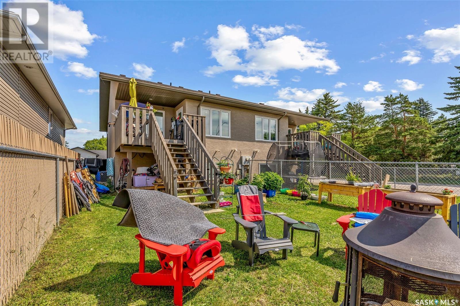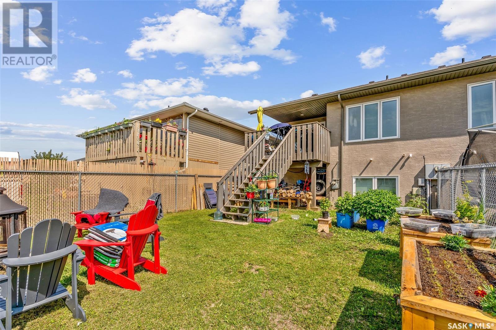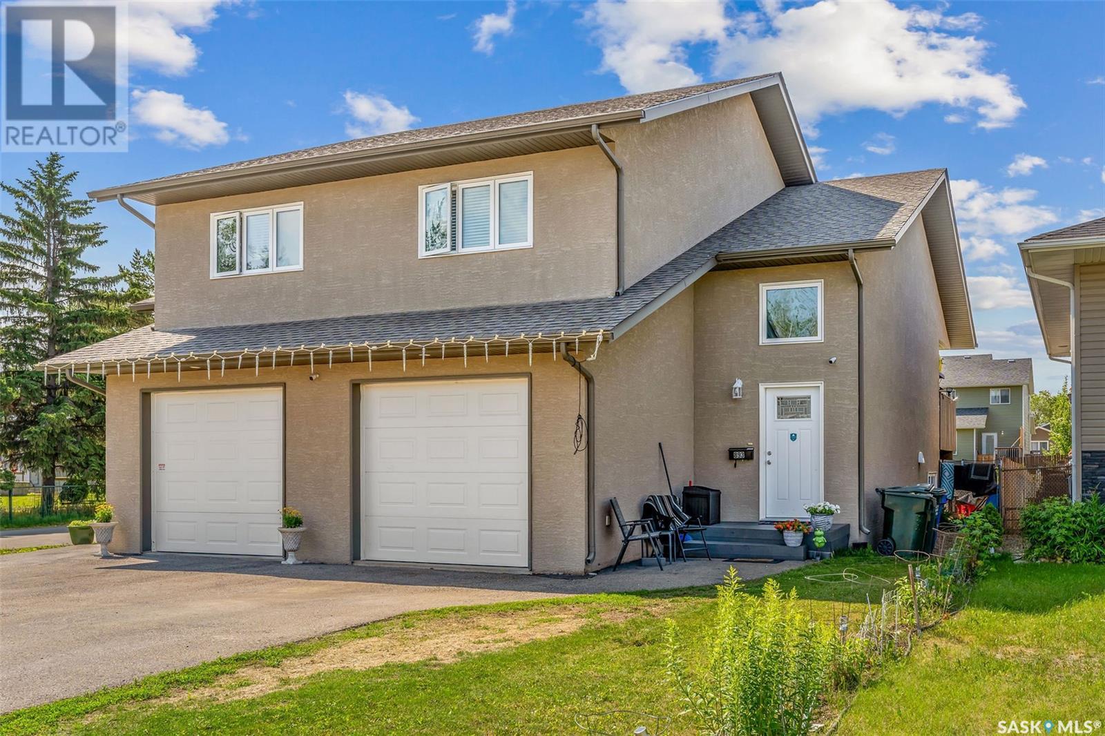 Welcome to this high-quality construction 1/2 duplex located on a quiet East Flat Street! Offering 3 well-sized bedrooms along with 3 bathrooms spanning over 1,600 sq ft of finished space and 9' basement ceilings, along with a 12x24 attached garage. The exterior of the home provides a fully fenced yard and a large back deck to pair. Built in 2015 and move-in ready, this is a perfect home to downsize into, or use as a possible income property! This semi-detached modified bi-level is only a short walk away from the North Saskatchewan River. This property is close to Cornerstone Shopping & Saskatchewan Polytechnic. Schedule your viewing today! (id:43042)