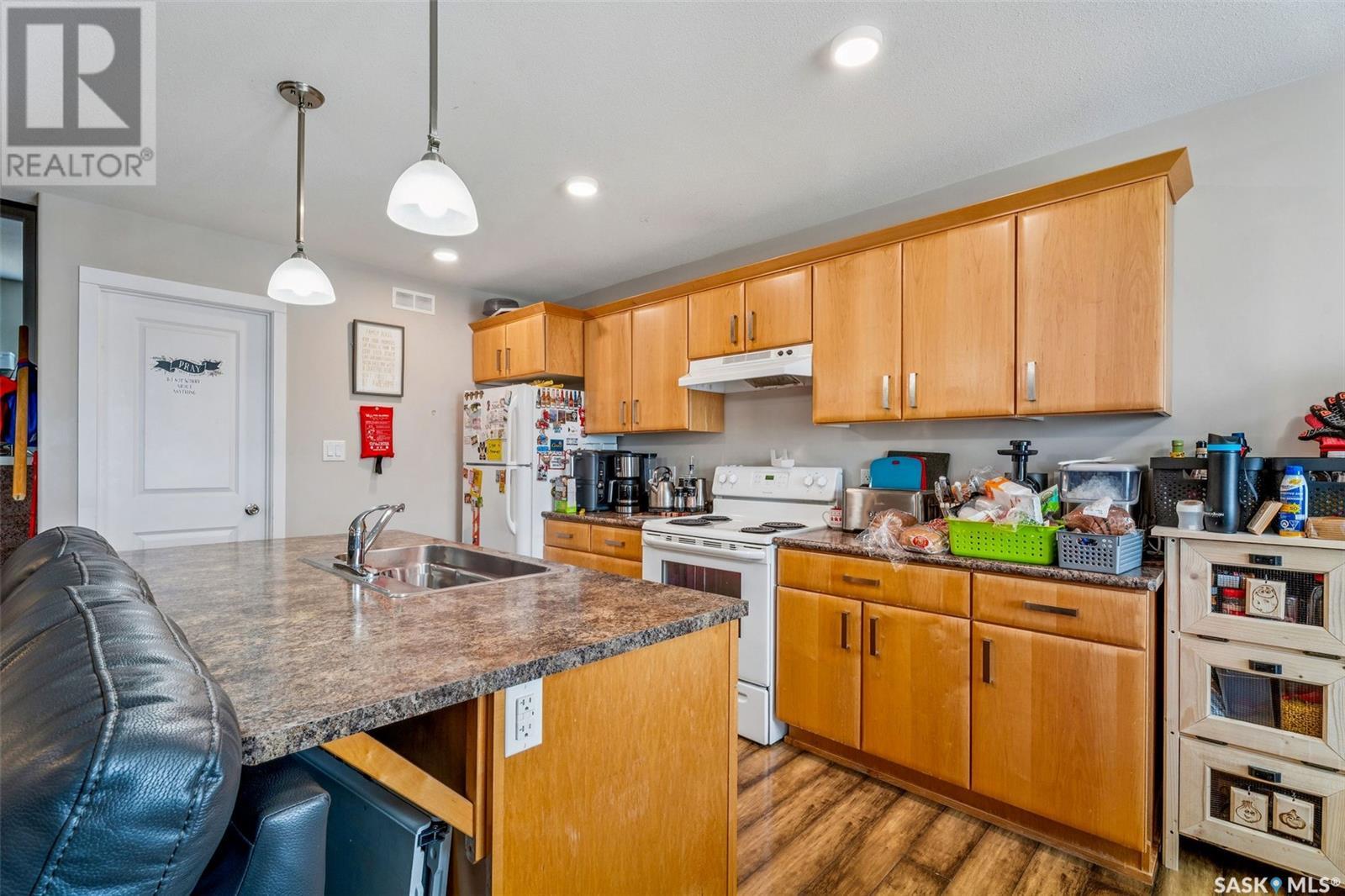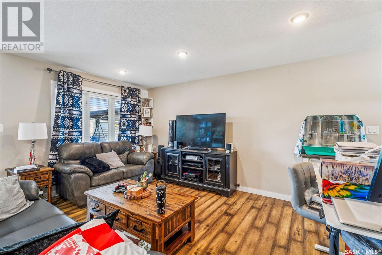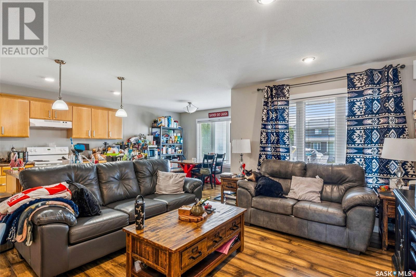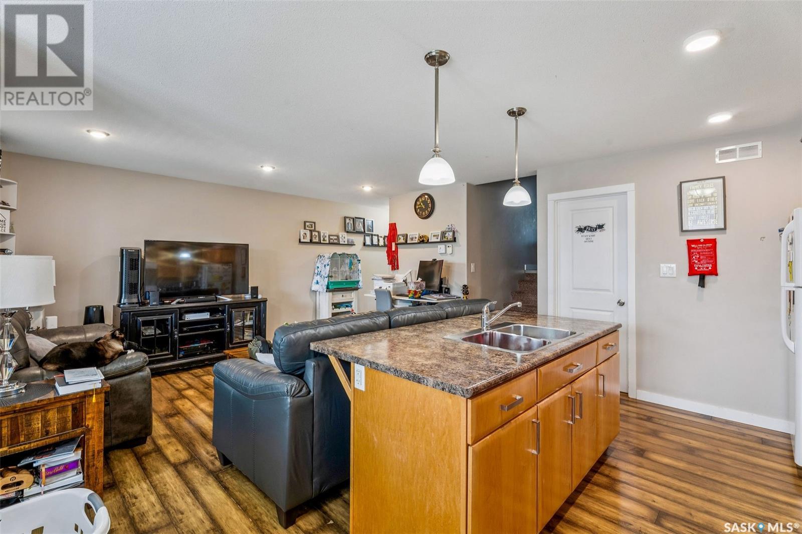 Welcome to this high-quality construction 1/2 duplex located on a quiet East Flat Street! Offering 3 well-sized bedrooms along with 3 bathrooms spanning over 1,600 sq ft of finished space and 9' basement ceilings, along with a 12x24 attached garage. The exterior of the home provides a fully fenced yard and a large back deck to pair. Built in 2015 and move-in ready, this is a perfect home to downsize into, or use as a possible income property! This semi-detached modified bi-level is only a short walk away from the North Saskatchewan River. This property is close to Cornerstone Shopping & Saskatchewan Polytechnic. Schedule your viewing today! (id:43042)