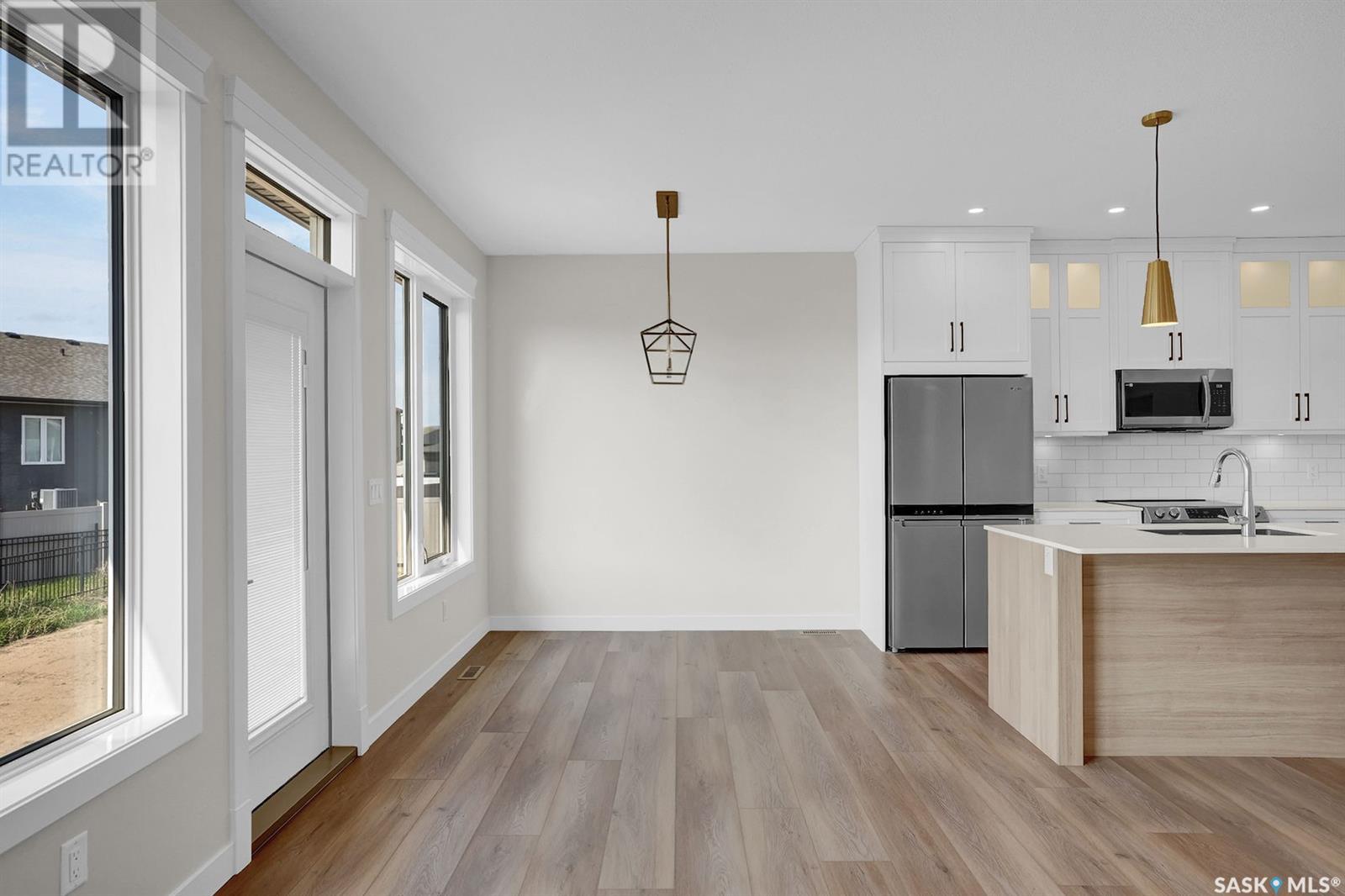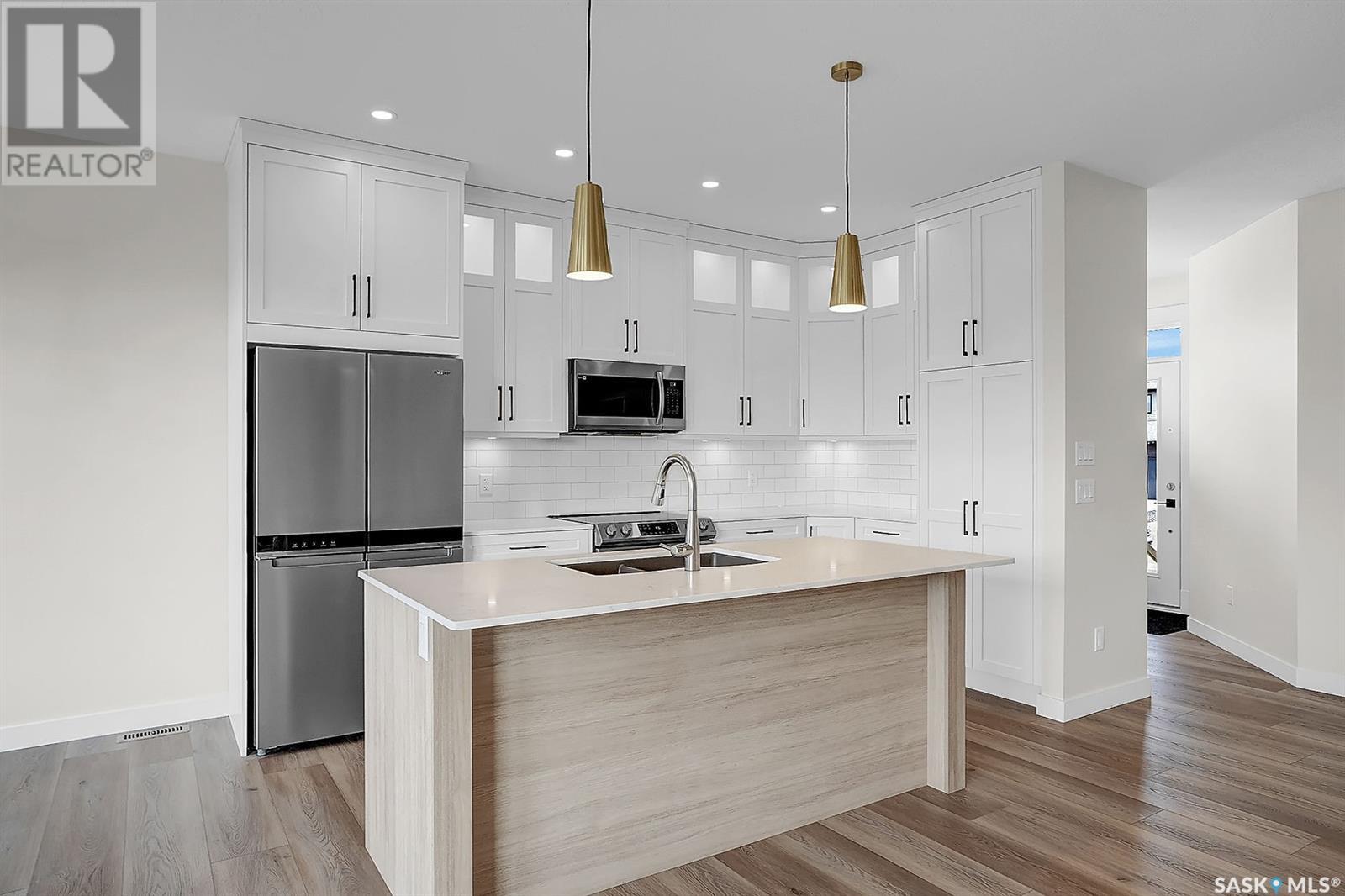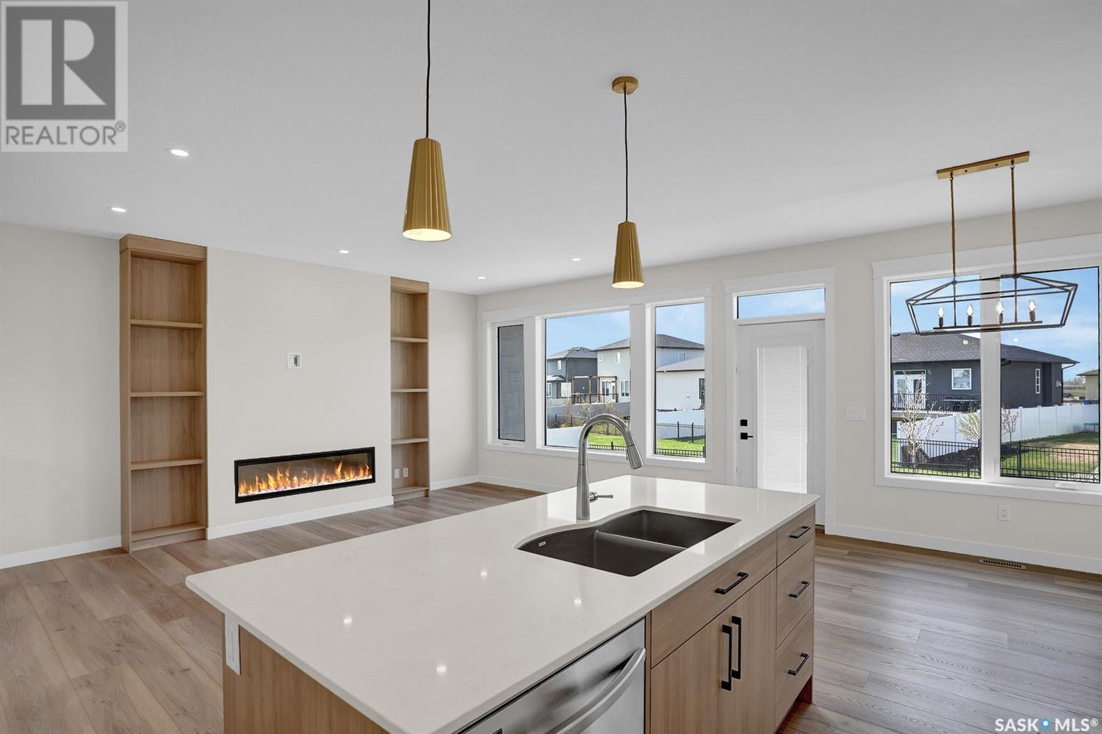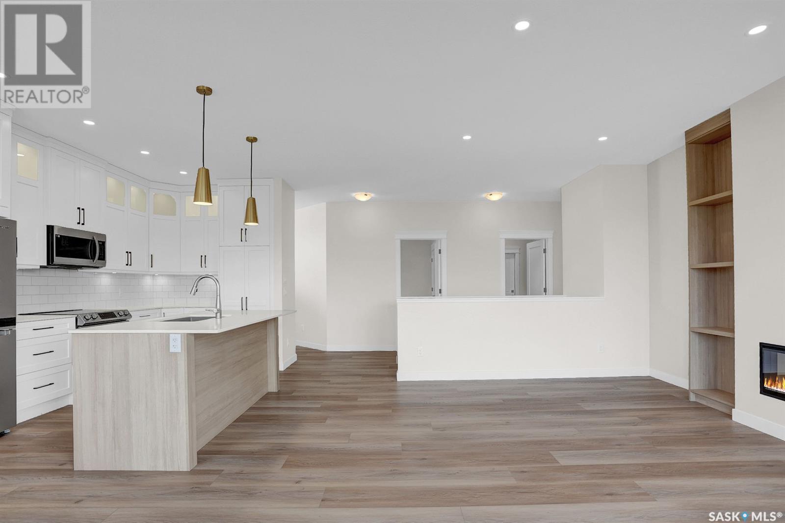 Looking for the perfect home just a short drive from Regina?You’ve found it! This stunning Ripplinger-built bungalow is located in the thriving community of Balgonie & offers a seamless blend of style, function, & high-end craftsmanship. Step inside to an oversized front foyer featuring a built-in bench & handy hooks.Perfect for busy family life. The main floor boasts 9-foot ceilings & an open-concept living area,highlighted by a spacious living room with a sleek electric fireplace flanked by custom built-ins & large windows that flood the space with natural light. The chef’s kitchen is a dream:custom white maple cabinets stretch to the ceiling,finished with crown moulding, under-cabinet lighting, quartz countertops & backsplash, an undermount sink, and a large island. Stainless steel appliances and a built-in pantry complete the space. The adjacent dining area is ideal for family meals or entertaining. Down the hall, two generously sized bedrooms and a full bathroom offer great space for kids, guests, or a home office. The owner’s suite is a true retreat, featuring a spacious bedroom, a luxurious ensuite with double sinks, a walk-in shower with built-in bench, and an impressive walk-in closet. The mudroom/laundry area includes additional built-in storage & another custom bench for added convenience. High-end finishes continue throughout, including luxury vinyl tile in the foyer, bathrooms, & mudroom, & luxury vinyl plank flooring in the main living areas.Outside, the home features a durable acrylic stucco finish, stone accents, a recently completed exposed aggregate driveway, and a massive 32x24 triple garage with a single-compartment collection pit. Located just minutes from Regina’s east end & close to Costco, Landmark Cinemas, and more, Balgonie is an ideal place to call home. The community offers two excellent schools (K–8 and 9–12), a hockey rink just steps away, a brand new outdoor pool, grocery store, restaurants, & a welcoming small-town atmosphere. (id:43042)