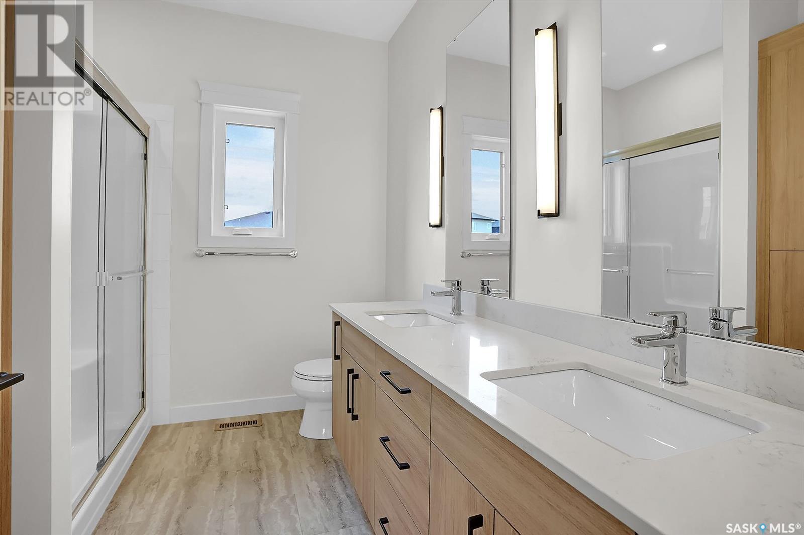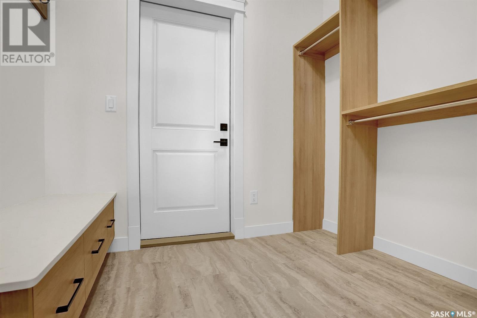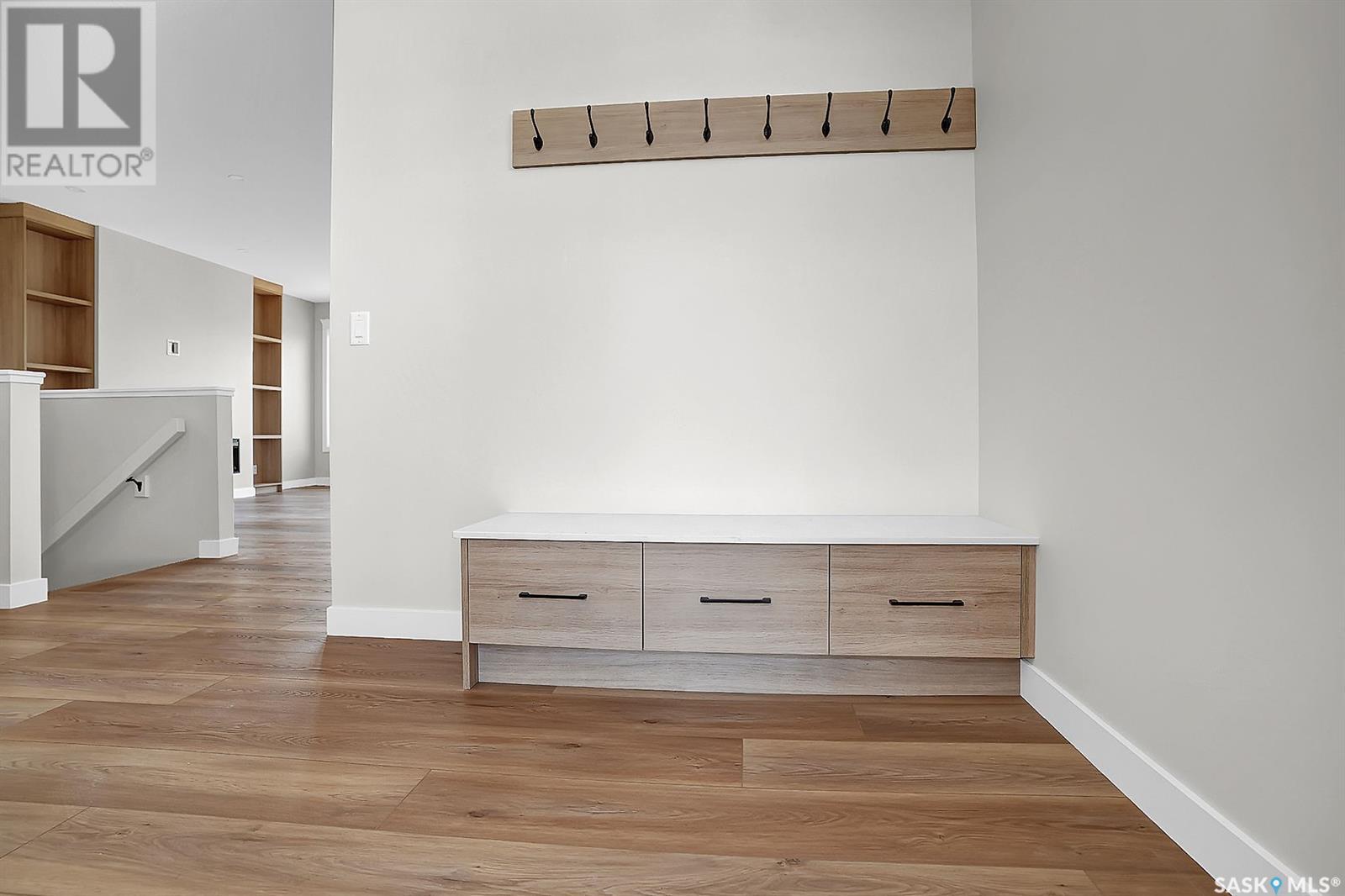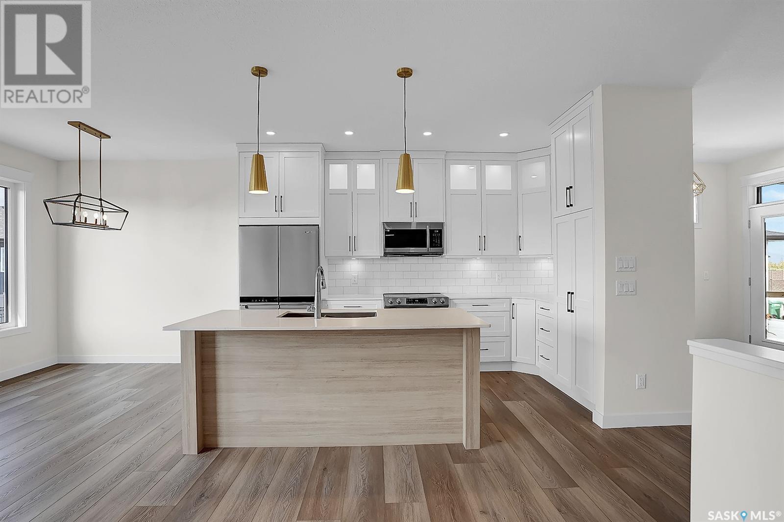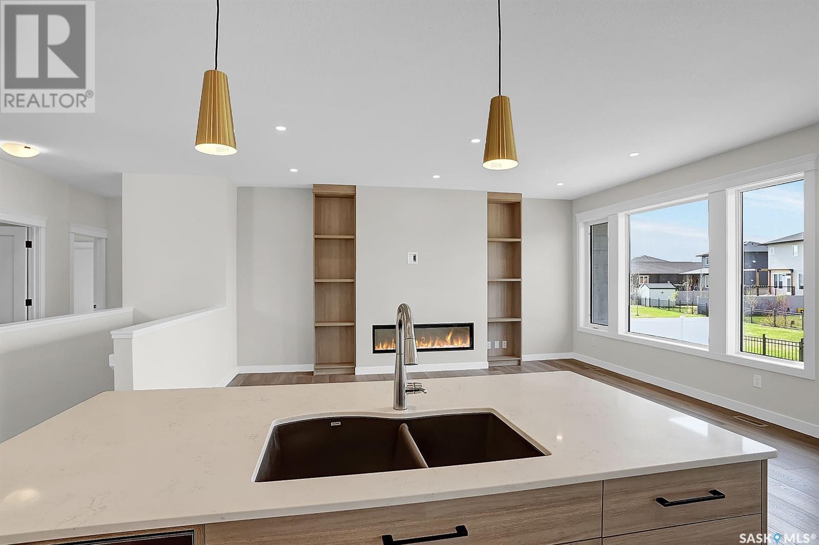 Looking for the perfect home just a short drive from Regina?You’ve found it! This stunning Ripplinger-built bungalow is located in the thriving community of Balgonie & offers a seamless blend of style, function, & high-end craftsmanship. Step inside to an oversized front foyer featuring a built-in bench & handy hooks.Perfect for busy family life. The main floor boasts 9-foot ceilings & an open-concept living area,highlighted by a spacious living room with a sleek electric fireplace flanked by custom built-ins & large windows that flood the space with natural light. The chef’s kitchen is a dream:custom white maple cabinets stretch to the ceiling,finished with crown moulding, under-cabinet lighting, quartz countertops & backsplash, an undermount sink, and a large island. Stainless steel appliances and a built-in pantry complete the space. The adjacent dining area is ideal for family meals or entertaining. Down the hall, two generously sized bedrooms and a full bathroom offer great space for kids, guests, or a home office. The owner’s suite is a true retreat, featuring a spacious bedroom, a luxurious ensuite with double sinks, a walk-in shower with built-in bench, and an impressive walk-in closet. The mudroom/laundry area includes additional built-in storage & another custom bench for added convenience. High-end finishes continue throughout, including luxury vinyl tile in the foyer, bathrooms, & mudroom, & luxury vinyl plank flooring in the main living areas.Outside, the home features a durable acrylic stucco finish, stone accents, a recently completed exposed aggregate driveway, and a massive 32x24 triple garage with a single-compartment collection pit. Located just minutes from Regina’s east end & close to Costco, Landmark Cinemas, and more, Balgonie is an ideal place to call home. The community offers two excellent schools (K–8 and 9–12), a hockey rink just steps away, a brand new outdoor pool, grocery store, restaurants, & a welcoming small-town atmosphere. (id:43042)