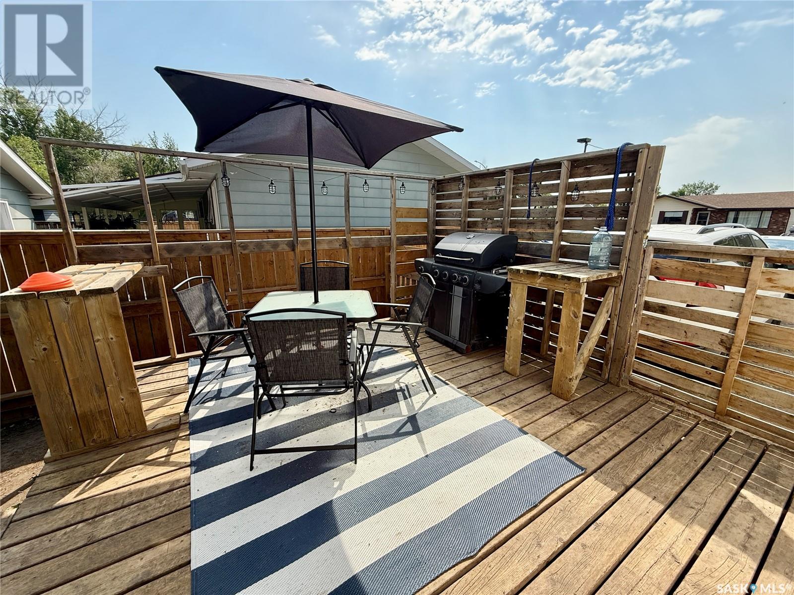 This 1,188 sq. ft. bungalow is located on a quiet street on the west side of North Battleford and features 3 spacious main-floor bedrooms, including a 2-piece ensuite and an updated 4-piece main bathroom. The kitchen offers ample storage and flows into a generous dining area and bright living room, which features a decorative hearth. Recent updates include several newly replaced main-floor windows, a new central air conditioning unit, a new dishwasher, and an updated basement complete with a large rec room, bedroom, storage, and a 4-piece bathroom. The washer and dryer have also been recently replaced, and the shingles were redone in recent years. The fully fenced backyard provides privacy and space for outdoor enjoyment, with a charming deck off the side door—perfect for grilling and entertaining. This home offers comfort, updates, and a great location close to amenities…move in ready and waiting! (id:43042)