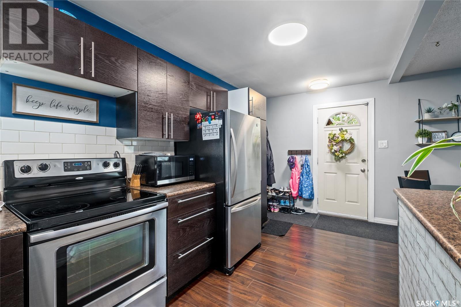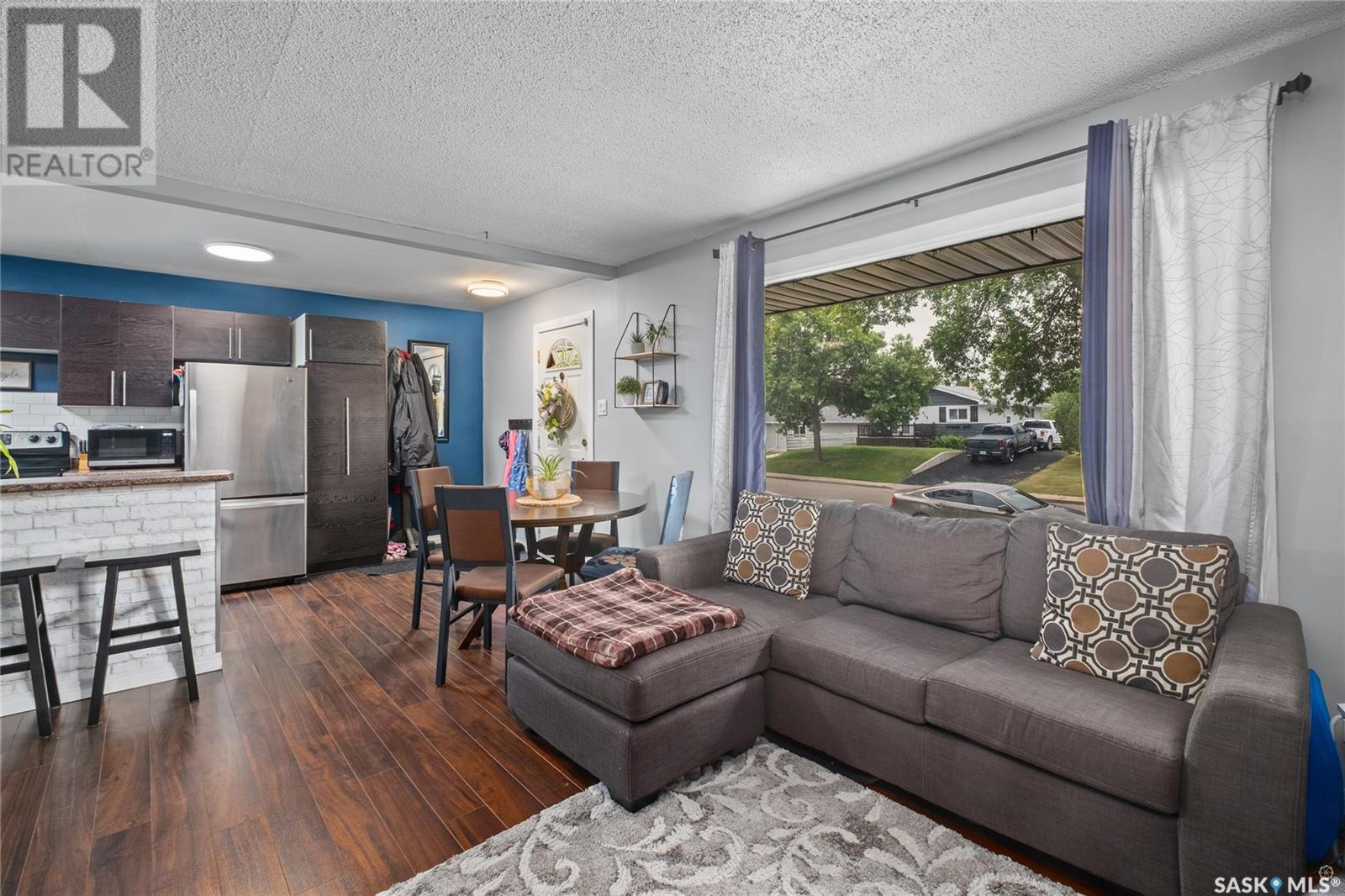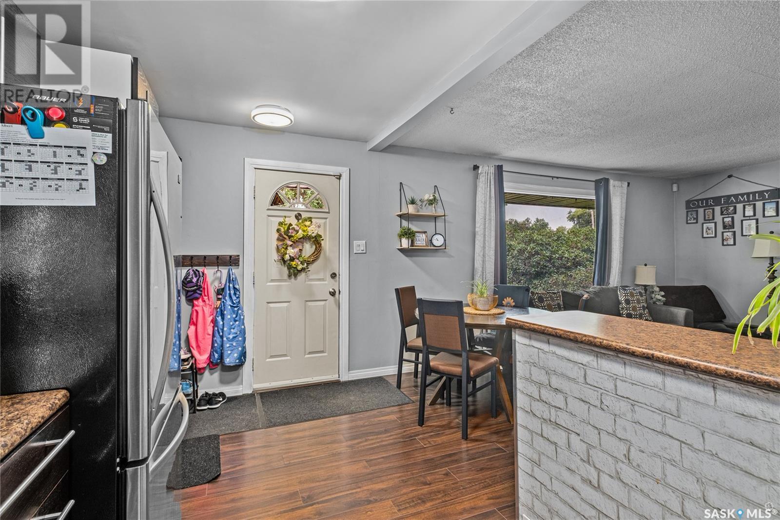 Well maintained 4 bedroom home nestled on a quiet East Flat street, just steps from the scenic Rotary Trail along the river. Step inside to a welcoming open concept main floor that seamlessly blends the living, kitchen and dining areas. Sunshine streams through the oversized picture window creating a bright and inviting living space. The kitchen is both stylish and practical and features rich dark brown cabinetry, a crisp white backsplash and a convenient bar seating area. A comfortable bedroom and a nicely finished 4 piece bathroom complete the main level. Upstairs, you will find two bright and spacious bedrooms, perfect for family, guests or a home office. The basement extends your living options further with a fourth bedroom, a cozy nook ideal for a reading corner or play area and a utility/laundry space. Enjoy a fully fenced backyard with mature trees and shrubs and a gravel firepit area ready for relaxing summer evenings. The deck offers the perfect spot for barbecues with a natural gas bbq hookup and a spacious rear parking area accessible from the back alley that ensures convenience for you and your guests. Additional features include a new furnace replaced in 2024, 2 new portable air conditioning units and a new electrical panel box. Close to schools, parks and the many amenities of the Cornerstone Shopping Centre, this home provides comfort and charm in a great location. Don't miss out, your next chapter starts here! (id:43042)