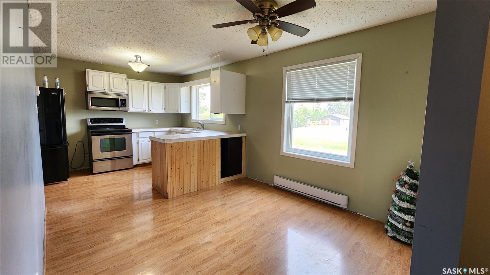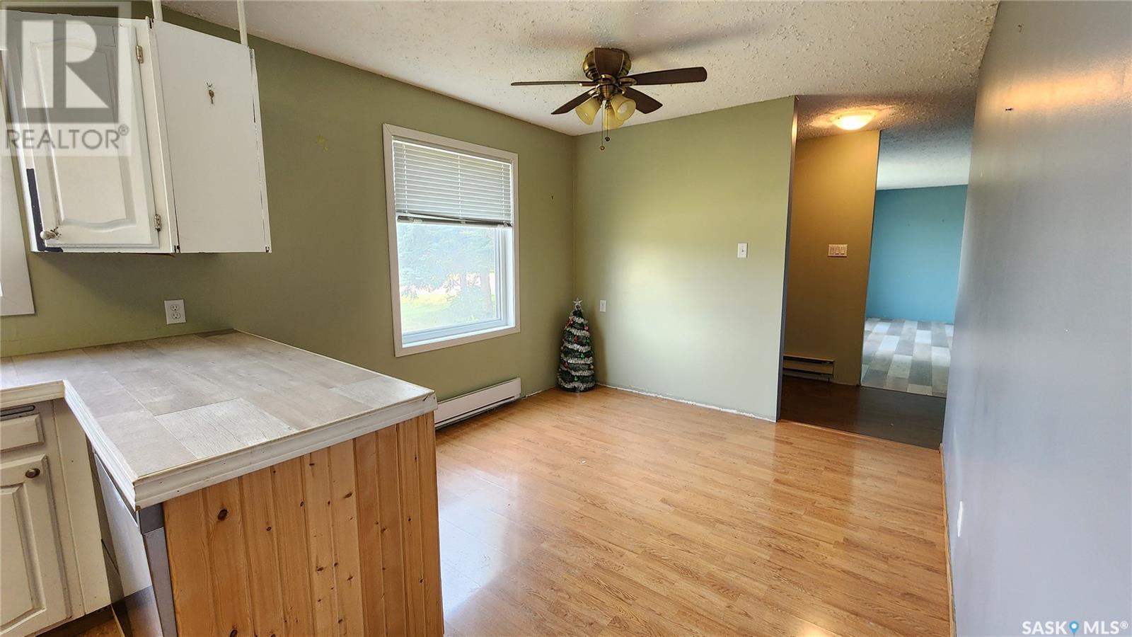 Welcome to this spacious 5 bedroom, 2 bathroom home located in the welcoming Village of Edam. Perfectly positioned across from the school, this property offers both convenience and a family-oriented atmosphere. Featuring a durable metal roof, some new flooring, and updated windows, this home blends solid structure with fresh updates. Stay cozy year-round with electric heat and a charming gas fireplace. Step outside onto the large deck and enjoy the beautiful mature lot, perfect for relaxing or entertaining. The basement offers ample storage space and is ready for further development to suit your needs and vision. This is a great opportunity to enjoy small-town living with room to grow. (id:43042)