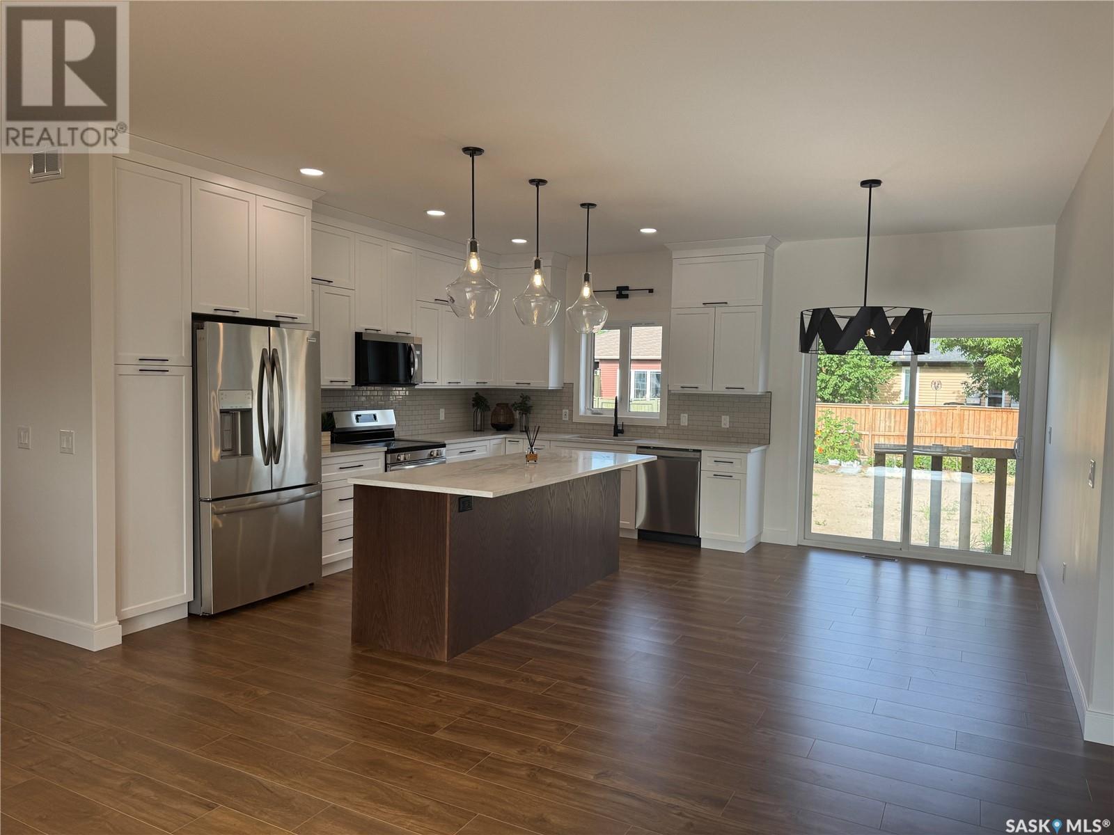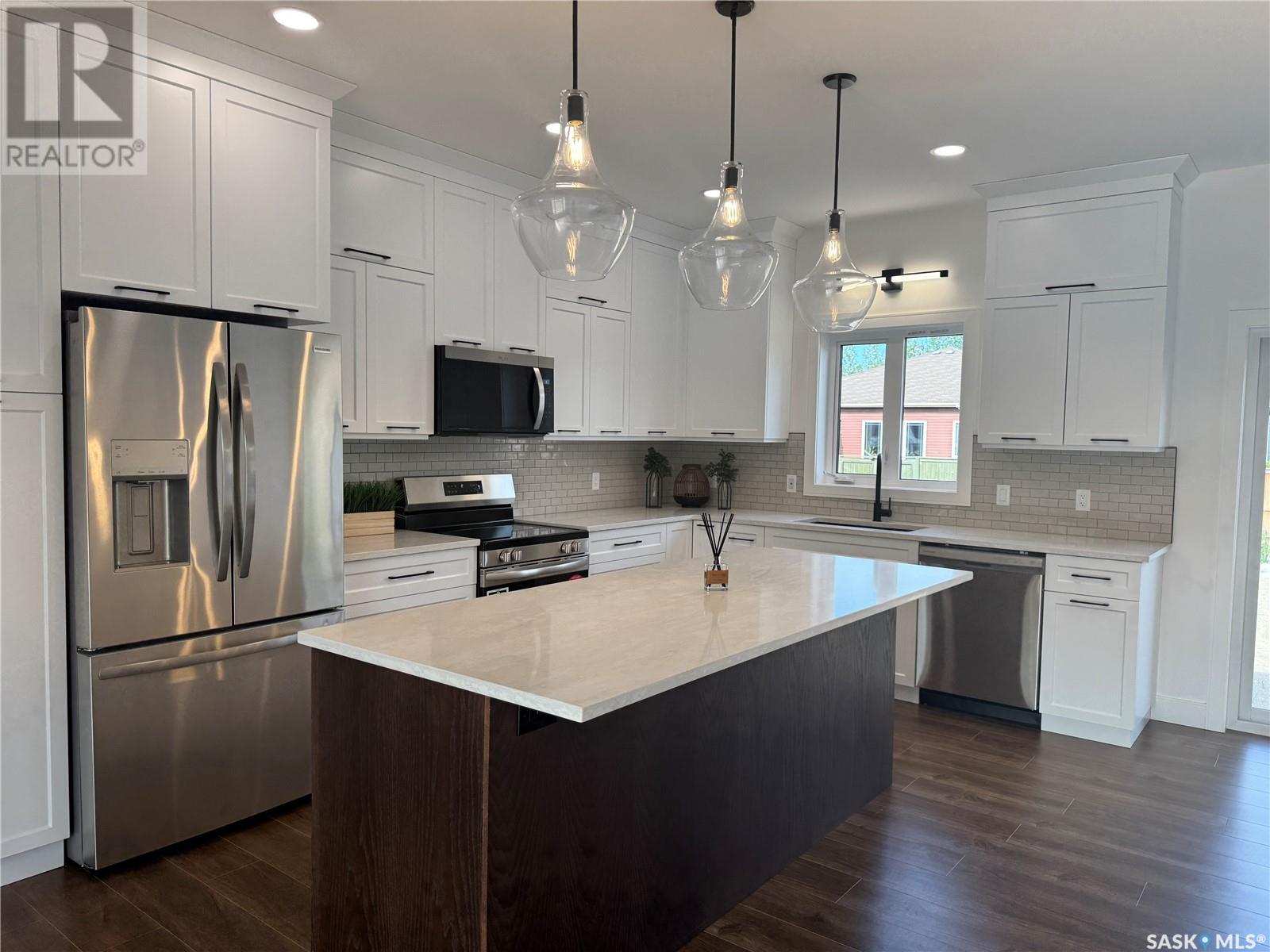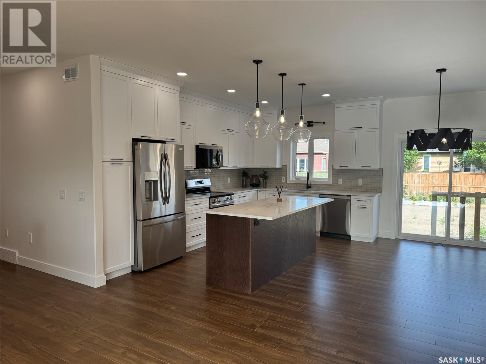 Welcome to your dream home at 92-101st Street, Humboldt, SK! This stunning 1,484 sq. ft. residence is ready for immediate possession!! Enjoy the perfect blend of modern living and serene prairie views, all from your maintenance-free deck that faces east, ideal for morning sunrises. The home features an ICF (Insulated Concrete Form) basement, ensuring energy efficiency and comfort year-round. Step into a spacious front foyer that flows into an open-concept living area. The front living room seamlessly connects to the kitchen, which boasts sleek white cabinetry, elegant quartz countertops and s/s appliances. The dining room includes a sliding patio door that leads to your backyard, perfect for entertaining or enjoying peaceful evenings outdoors. On one side of the home, find two generous bedrooms accompanied by a stylish 4-piece bath. The primary bedroom on the opposite side is a true retreat, featuring a 4-piece ensuite and a spacious walk-in closet. A convenient laundry room and a mudroom with ample storage connect to the 26 x 28 oversized double attached garage. A staircase off the front entry leads to a finished basement that includes a large family room and a designated games area. This level also offers two additional large bedrooms, a 4-piece bath, a utility room, and a storage room. Quality Finishes: The main floor will feature durable laminate flooring, while the basement is finished with plush carpeting. All bathrooms and the laundry area feature stylish quartz countertops. Located near Bill Brecht Park and St. Dominic Elementary School, this home is perfect for families, surrounded by a welcoming community of young families. Home Warranty offered by the seller for peace of mind. 3 Year Land Only Taxes PST and GST INCLUDED. ALL REBATES assigned to seller. Call today to schedule a viewing and get more information! Virtual staging photos for better visual. (id:43042)