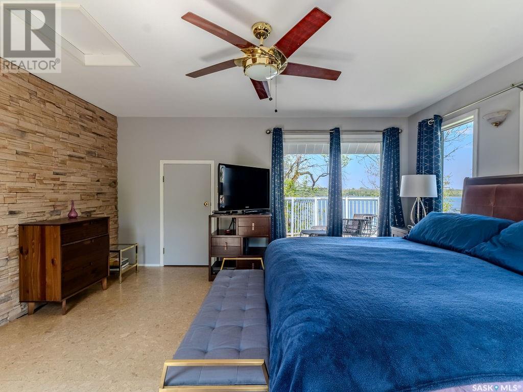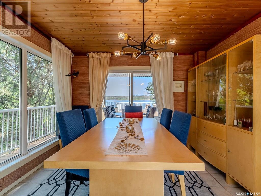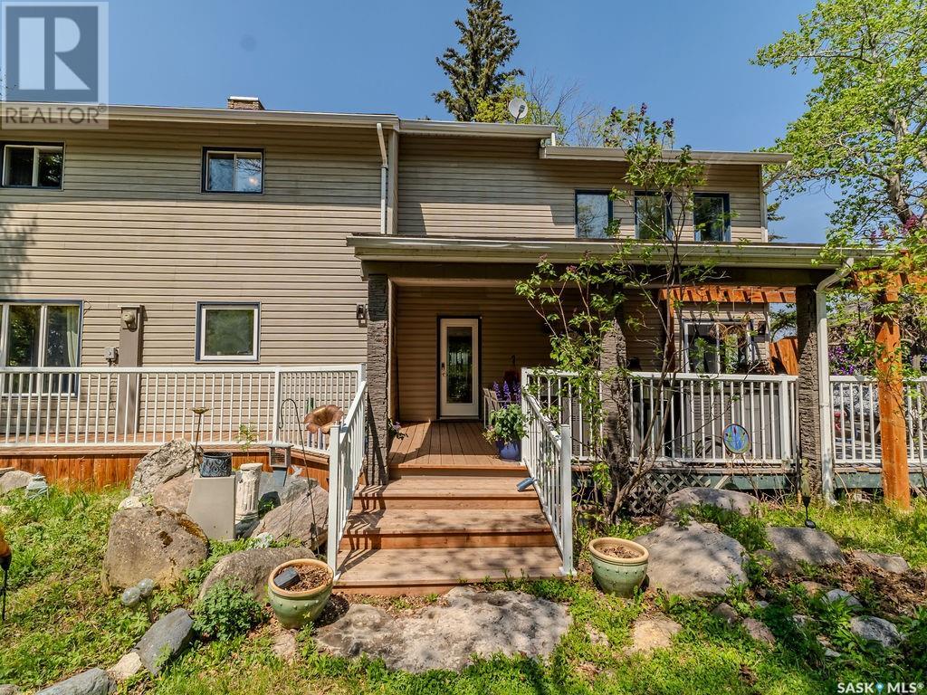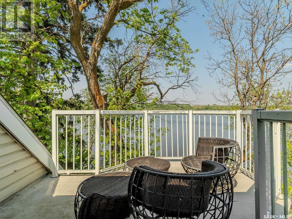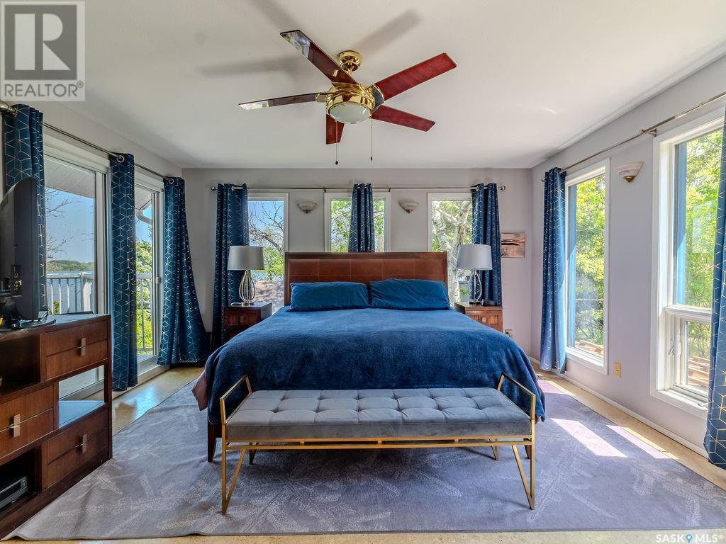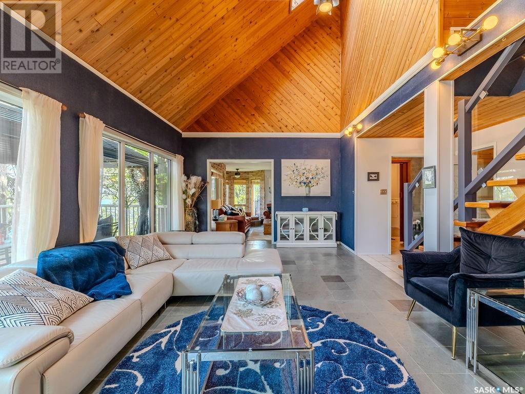 Outstanding, one of a kind, 4 season home on the best lot at Wakaw Lake! Welcome to 93 Crescent Ave at Poplar Beach, an impressive property boasting a 2000+sf home with three bedrooms and two bathrooms featuring an astonishing 130+ feet of lakefront. This completely private lot must be seen to be believed; with 0.6acres of property, you'll enjoy total privacy surrounded by a canopy of trees, offering a tranquil, natural environment to unwind from city life. Inside the home, buyers will love the soaring ceilings, huge windows and warm woodwork throughout the expansive main floor. Featuring heated tiled flooring in the entry and kitchen, Redl kitchen with high end stainless steel appliances including a gas stove, formal dining with wrap around windows, hot tub area, 2pc bath, main floor laundry and cozy gas fireplace, you're sure to be impressed with the unique details and stunning floor to ceiling views of the lake. Upstairs there's two guest bedrooms, one of which features a bright sunroom with more stunning lake views, 3 pc main bathroom and huge primary suite featuring a massive closet/glam room, and a private balcony shaded in tree cover and overlooking the water. Outside, the deck wraps around three sides of the house with separate dining spaces, outdoor kitchen, gazebo and a large area for sunbathing. Buyers will love the triple detached garage, boat/RV/trailer parking, and of course there's plenty of space for a dock. The home has 2500+ gallon holding tanks for the water in the basement and a 1200 gallon septic tank. More notable extras include central air, gas heat and the house can be sold fully furnished. Located steps from the beach and under an hour from the city, this is a once in a lifetime home that you're not going to want to miss. Contact your favourite SK real estate agent to arrange your viewing and don't forget to check out the video. (id:43042)