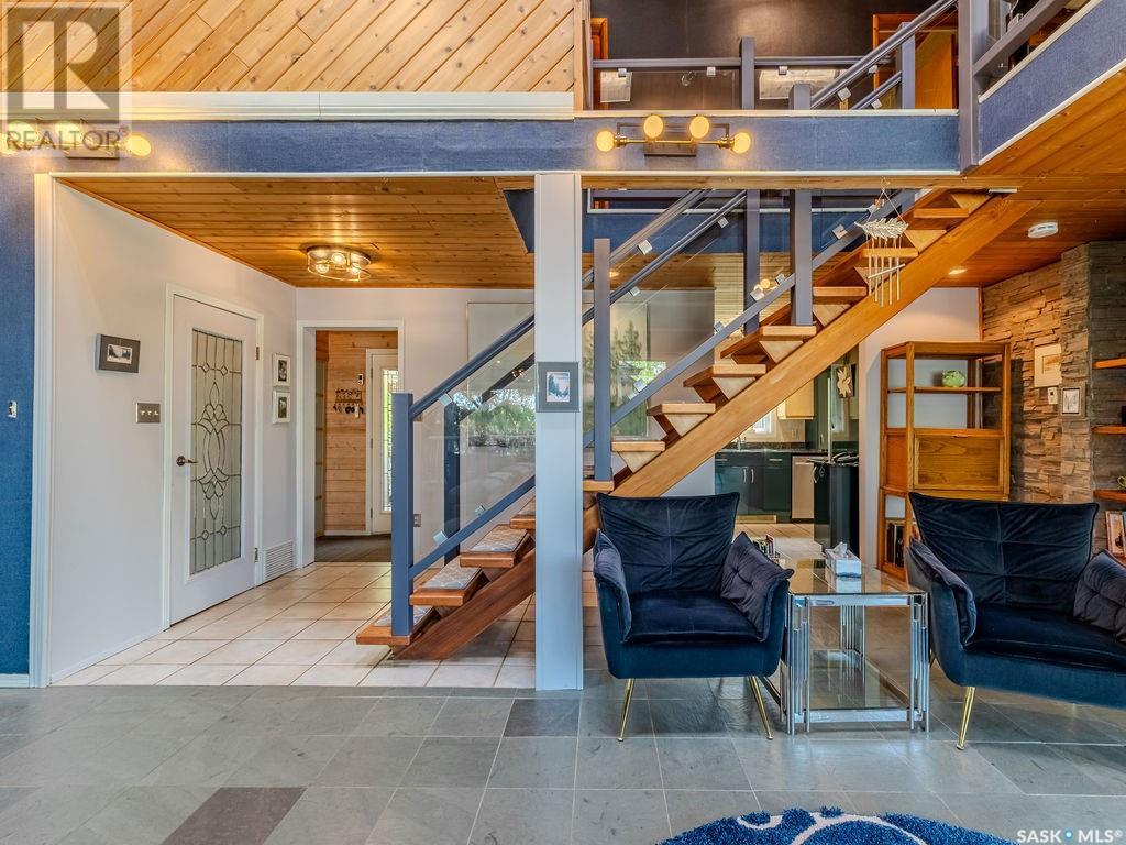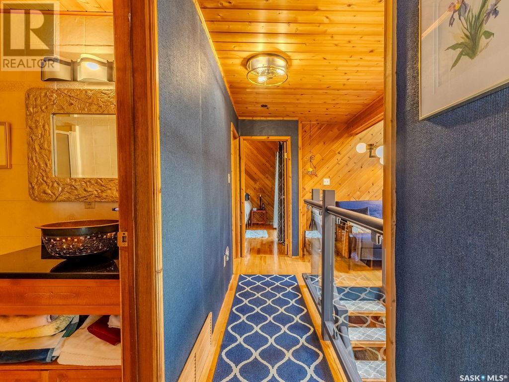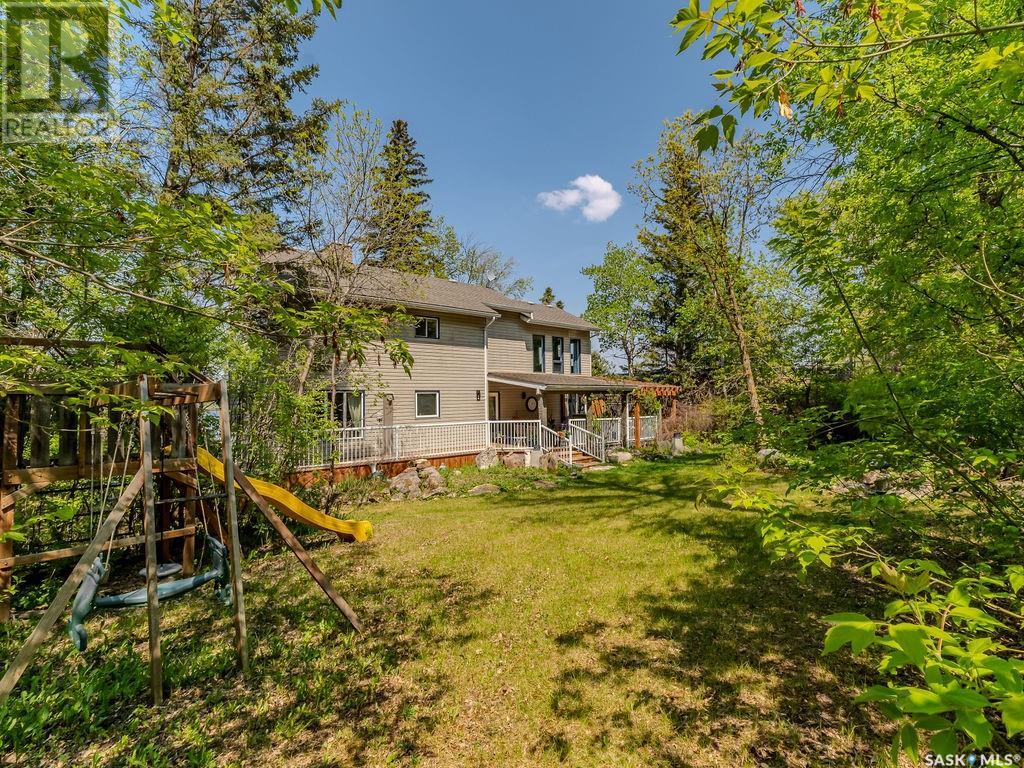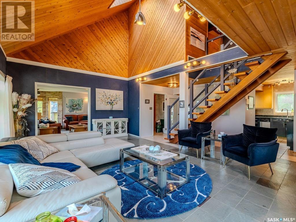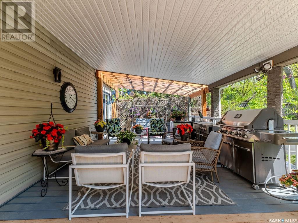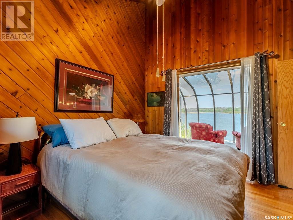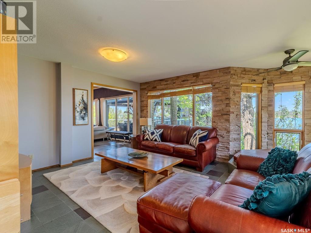 Outstanding, one of a kind, 4 season home on the best lot at Wakaw Lake! Welcome to 93 Crescent Ave at Poplar Beach, an impressive property boasting a 2000+sf home with three bedrooms and two bathrooms featuring an astonishing 130+ feet of lakefront. This completely private lot must be seen to be believed; with 0.6acres of property, you'll enjoy total privacy surrounded by a canopy of trees, offering a tranquil, natural environment to unwind from city life. Inside the home, buyers will love the soaring ceilings, huge windows and warm woodwork throughout the expansive main floor. Featuring heated tiled flooring in the entry and kitchen, Redl kitchen with high end stainless steel appliances including a gas stove, formal dining with wrap around windows, hot tub area, 2pc bath, main floor laundry and cozy gas fireplace, you're sure to be impressed with the unique details and stunning floor to ceiling views of the lake. Upstairs there's two guest bedrooms, one of which features a bright sunroom with more stunning lake views, 3 pc main bathroom and huge primary suite featuring a massive closet/glam room, and a private balcony shaded in tree cover and overlooking the water. Outside, the deck wraps around three sides of the house with separate dining spaces, outdoor kitchen, gazebo and a large area for sunbathing. Buyers will love the triple detached garage, boat/RV/trailer parking, and of course there's plenty of space for a dock. The home has 2500+ gallon holding tanks for the water in the basement and a 1200 gallon septic tank. More notable extras include central air, gas heat and the house can be sold fully furnished. Located steps from the beach and under an hour from the city, this is a once in a lifetime home that you're not going to want to miss. Contact your favourite SK real estate agent to arrange your viewing and don't forget to check out the video. (id:43042)