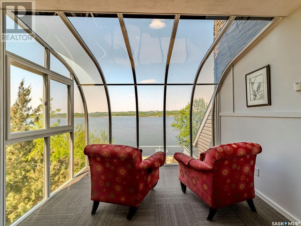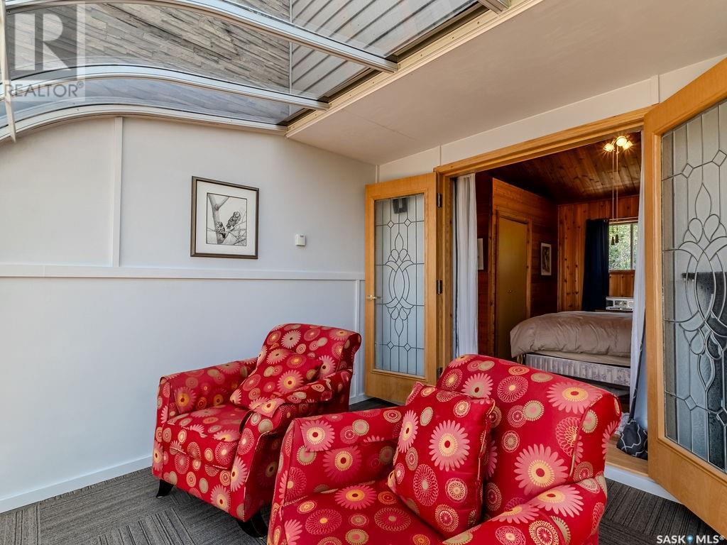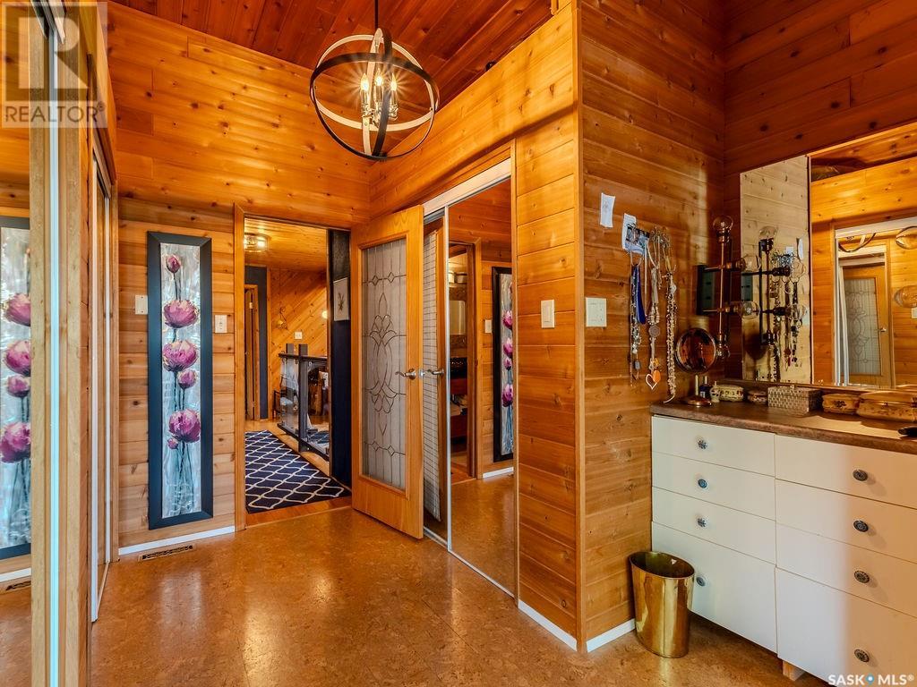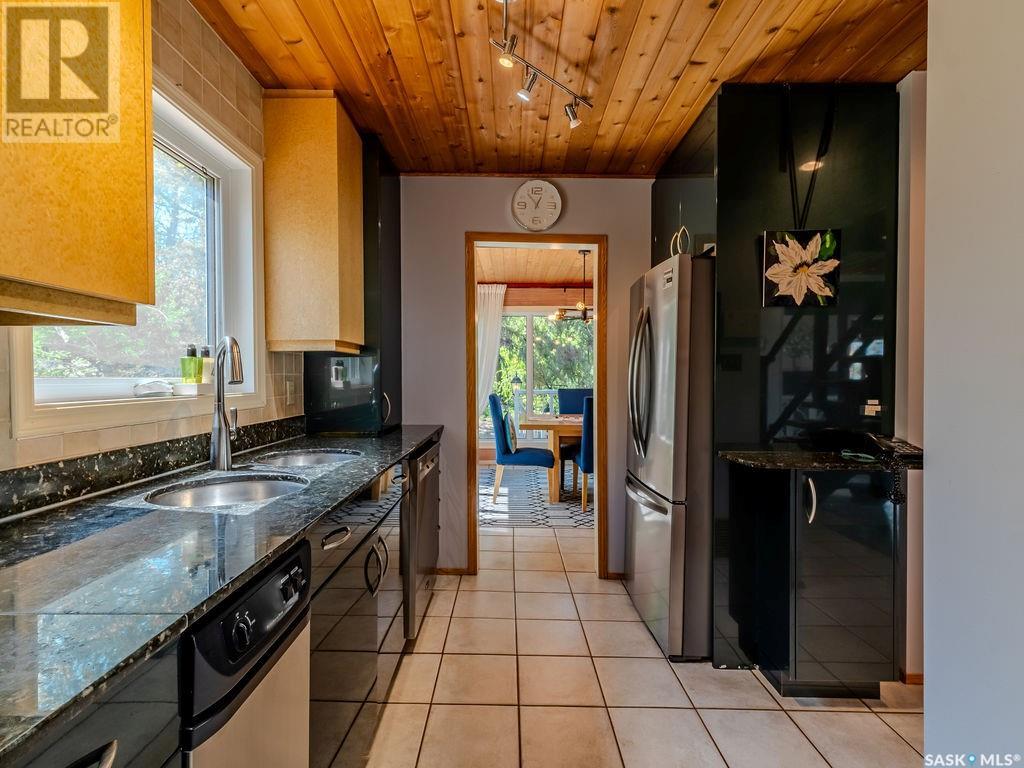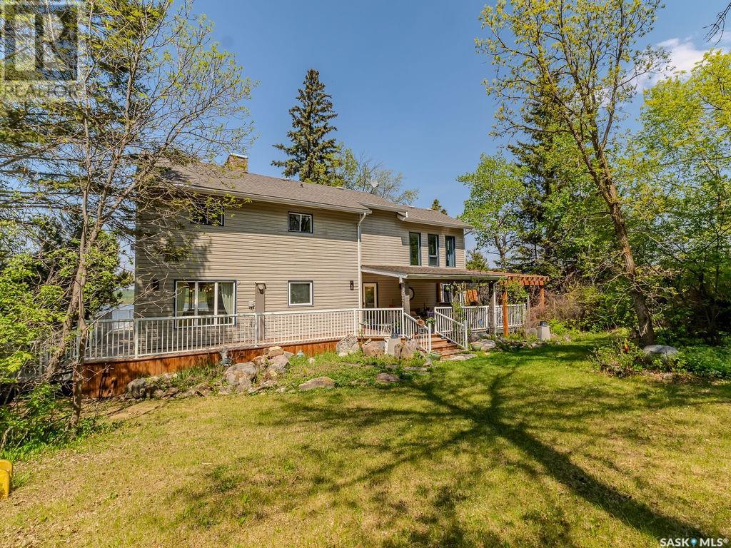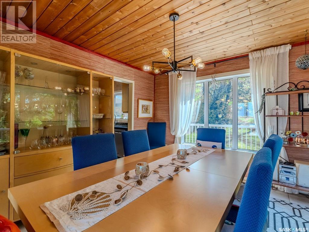 Outstanding, one of a kind, 4 season home on the best lot at Wakaw Lake! Welcome to 93 Crescent Ave at Poplar Beach, an impressive property boasting a 2000+sf home with three bedrooms and two bathrooms featuring an astonishing 130+ feet of lakefront. This completely private lot must be seen to be believed; with 0.6acres of property, you'll enjoy total privacy surrounded by a canopy of trees, offering a tranquil, natural environment to unwind from city life. Inside the home, buyers will love the soaring ceilings, huge windows and warm woodwork throughout the expansive main floor. Featuring heated tiled flooring in the entry and kitchen, Redl kitchen with high end stainless steel appliances including a gas stove, formal dining with wrap around windows, hot tub area, 2pc bath, main floor laundry and cozy gas fireplace, you're sure to be impressed with the unique details and stunning floor to ceiling views of the lake. Upstairs there's two guest bedrooms, one of which features a bright sunroom with more stunning lake views, 3 pc main bathroom and huge primary suite featuring a massive closet/glam room, and a private balcony shaded in tree cover and overlooking the water. Outside, the deck wraps around three sides of the house with separate dining spaces, outdoor kitchen, gazebo and a large area for sunbathing. Buyers will love the triple detached garage, boat/RV/trailer parking, and of course there's plenty of space for a dock. The home has 2500+ gallon holding tanks for the water in the basement and a 1200 gallon septic tank. More notable extras include central air, gas heat and the house can be sold fully furnished. Located steps from the beach and under an hour from the city, this is a once in a lifetime home that you're not going to want to miss. Contact your favourite SK real estate agent to arrange your viewing and don't forget to check out the video. (id:43042)