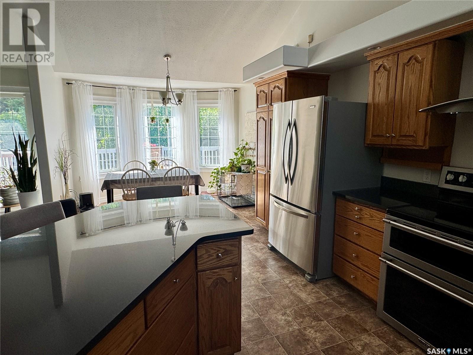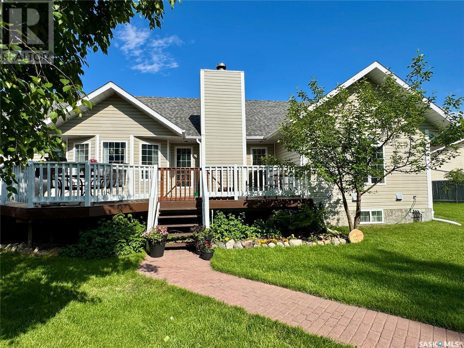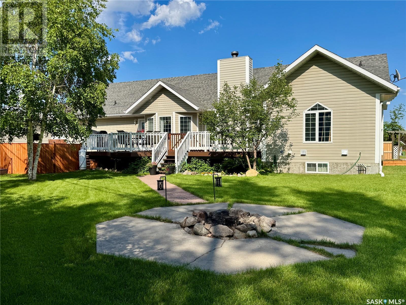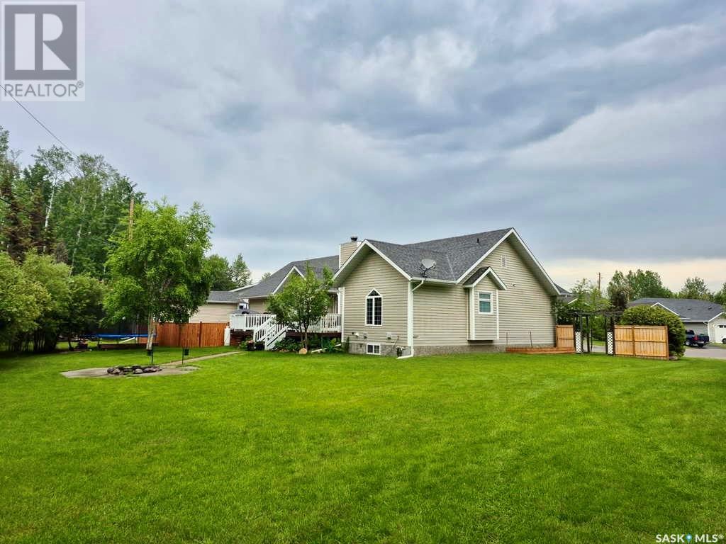 Amazing opportunity to purchase this 6 bedroom & 4 bathroom executive home with 2 garages on one of the best streets in town! Situated on 2 pie-shaped lots on Thompson Cres and backing onto the boreal forest, this beautiful home has absolutely everything a family needs and is within walking distance to the schools and Co-op. The main floor features an open concept kitchen with gorgeous solid wood cabinet doors, granite counters, and stainless steel appliances. The dining area overlooks the back deck and the living room shines with high ceilings, engineered hardwood floors, and a wood burning fireplace. There are 3 bedrooms on the main level including a master suite with a gorgeous bright ensuite bathroom with a separate shower and soaker jet tub. The walk-in closet is connected to the laundry room and allows you to walk through and easily access the kids' rooms on the other side. The large mudroom just inside from the heated attached garage has plenty of storage and handy access to a 2 piece powder room. Above the garage you find a large family room with a built-in kid's playhouse and a great bonus space for the entire family to enjoy. The spacious basement includes 3 more bedrooms, a huge recreation room, another full bathroom with a shower, and a storage/utility room. The house is heated with a natural gas boiler that is tied into the forced air system for the house. Outside is a gardener's dream! There are flower beds, a raised vegetable garden, perennials, and a fenced dog run. In addition to the heated attached double garage, there is a separate heated single detached garage with a workshop and an extra tall door. The large back deck perfect for entertaining all summer long, and the massive back yard and firepit area with lovely views of forest beyond. This is an absolute dream home! (id:43042)