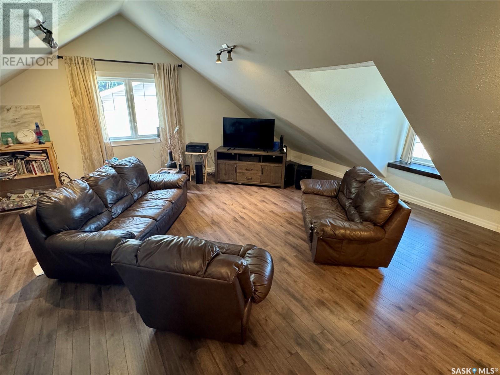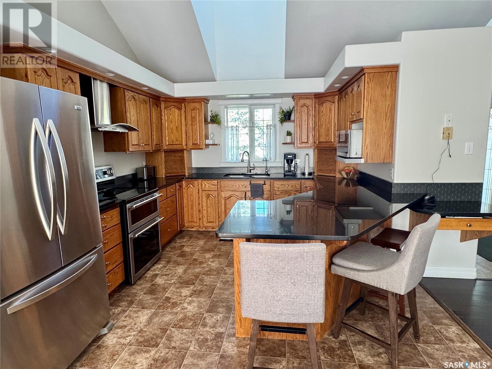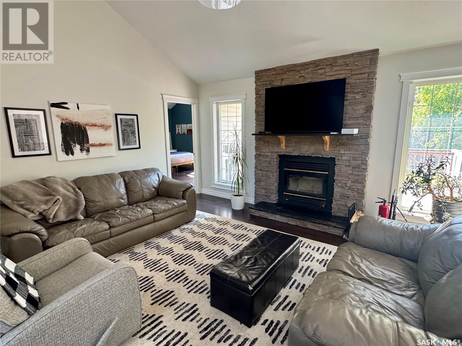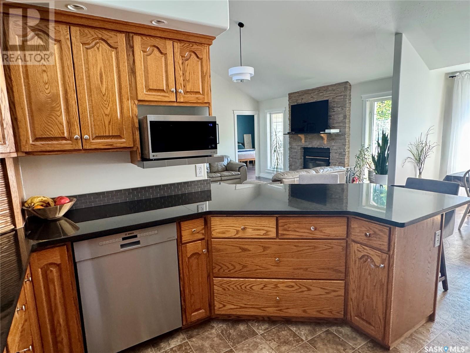 Amazing opportunity to purchase this 6 bedroom & 4 bathroom executive home with 2 garages on one of the best streets in town! Situated on 2 pie-shaped lots on Thompson Cres and backing onto the boreal forest, this beautiful home has absolutely everything a family needs and is within walking distance to the schools and Co-op. The main floor features an open concept kitchen with gorgeous solid wood cabinet doors, granite counters, and stainless steel appliances. The dining area overlooks the back deck and the living room shines with high ceilings, engineered hardwood floors, and a wood burning fireplace. There are 3 bedrooms on the main level including a master suite with a gorgeous bright ensuite bathroom with a separate shower and soaker jet tub. The walk-in closet is connected to the laundry room and allows you to walk through and easily access the kids' rooms on the other side. The large mudroom just inside from the heated attached garage has plenty of storage and handy access to a 2 piece powder room. Above the garage you find a large family room with a built-in kid's playhouse and a great bonus space for the entire family to enjoy. The spacious basement includes 3 more bedrooms, a huge recreation room, another full bathroom with a shower, and a storage/utility room. The house is heated with a natural gas boiler that is tied into the forced air system for the house. Outside is a gardener's dream! There are flower beds, a raised vegetable garden, perennials, and a fenced dog run. In addition to the heated attached double garage, there is a separate heated single detached garage with a workshop and an extra tall door. The large back deck perfect for entertaining all summer long, and the massive back yard and firepit area with lovely views of forest beyond. This is an absolute dream home! (id:43042)