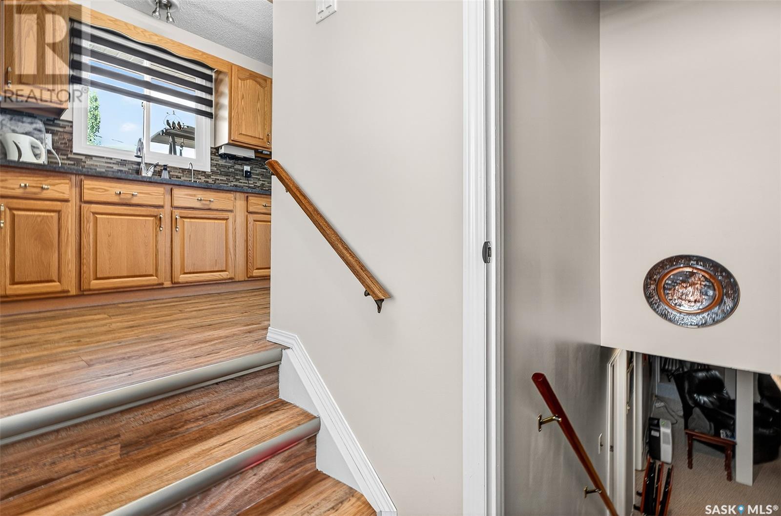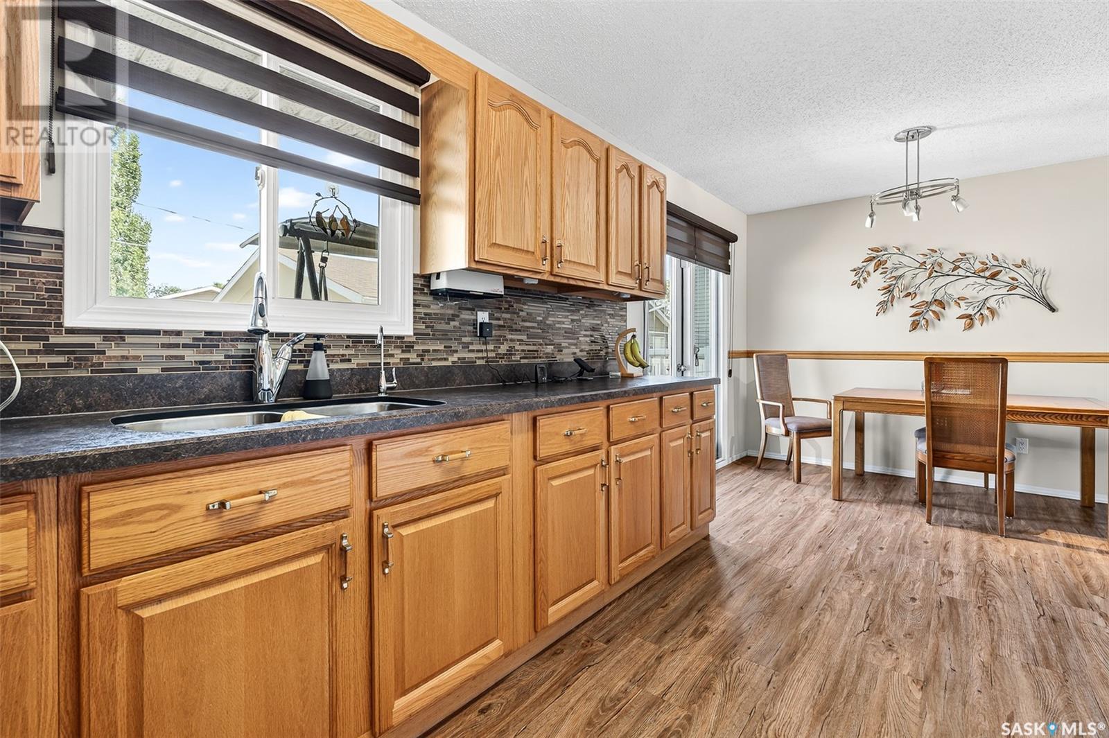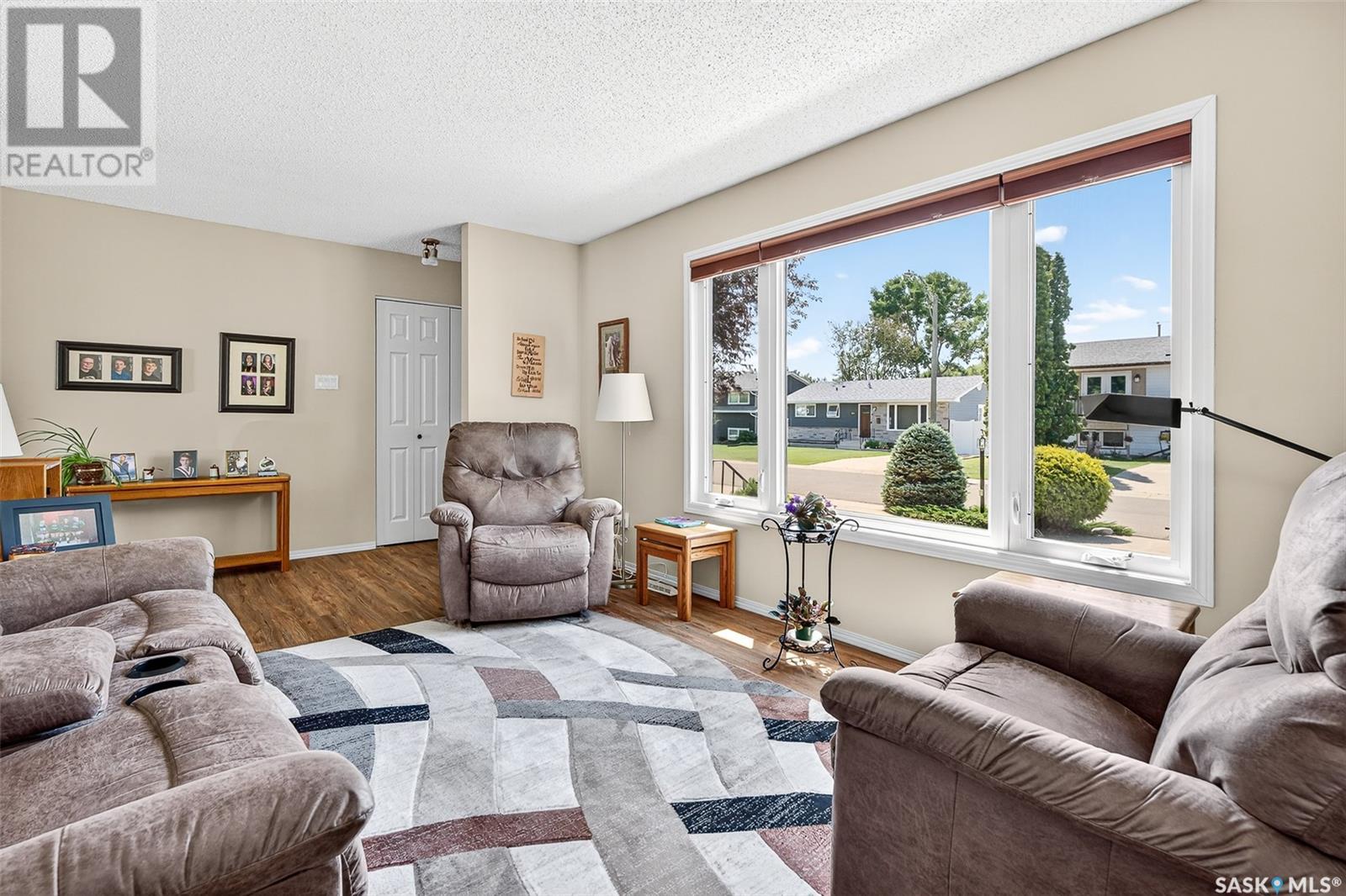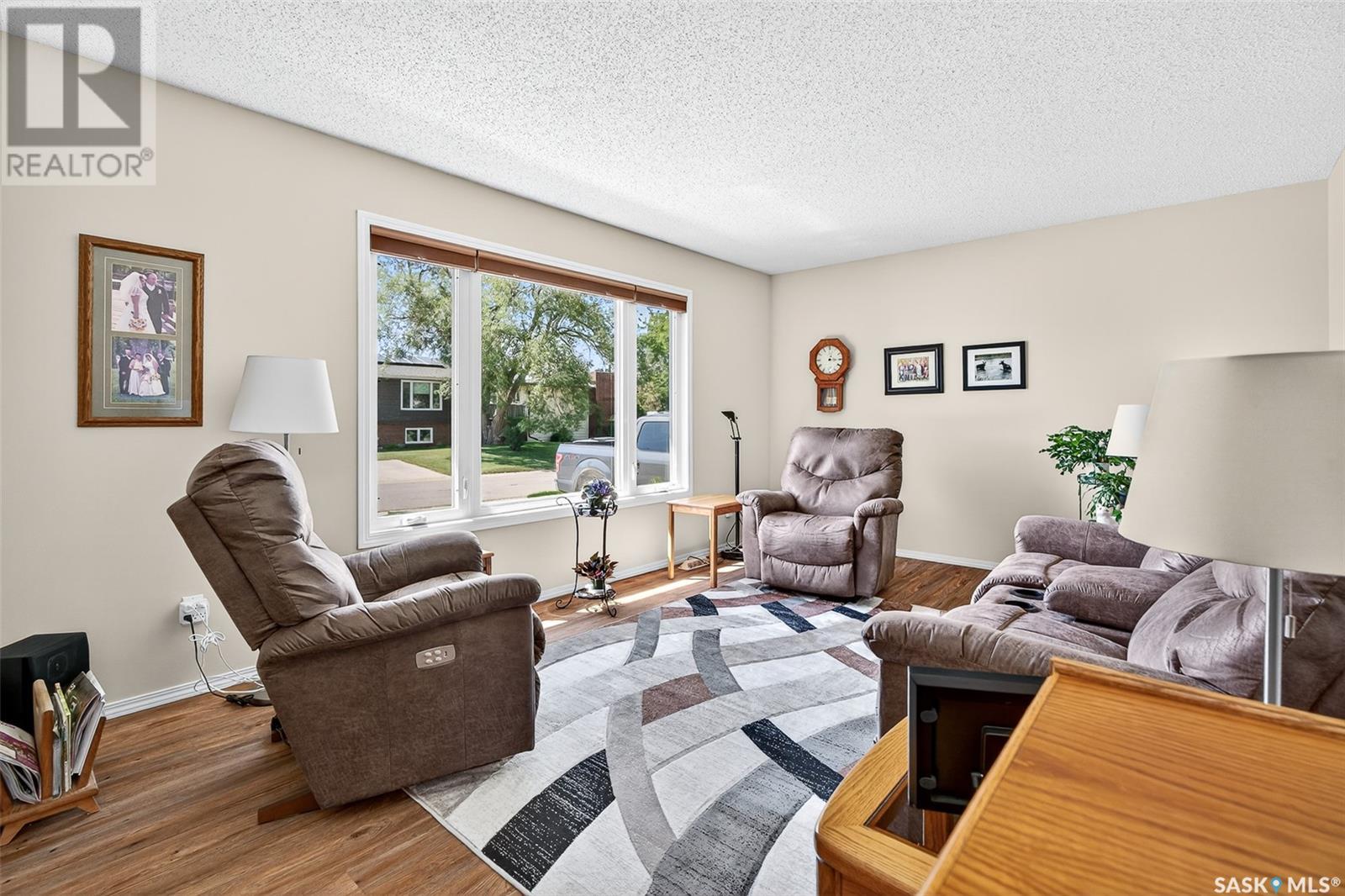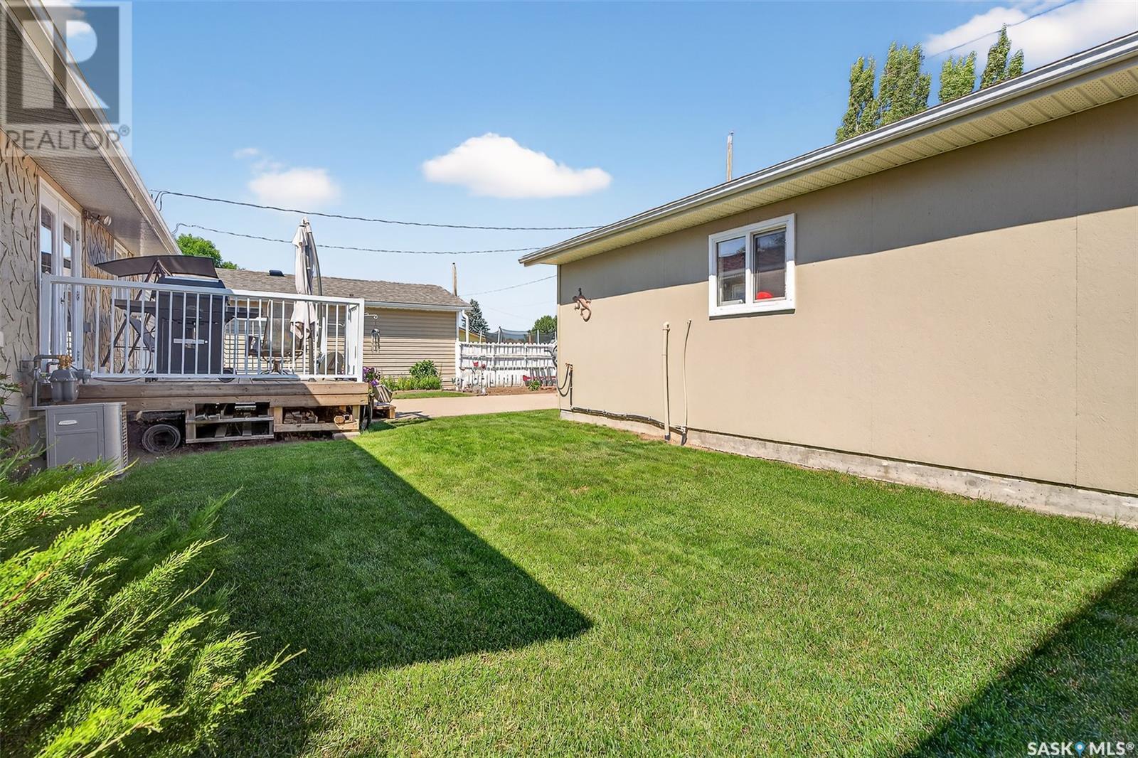 Charming 4-Bedroom Bungalow in Desirable Palliser Heights – Move-In Ready! Welcome to this beautifully updated 1040 sq ft bungalow, perfectly situated on a quiet crescent in the highly sought-after Palliser Heights neighborhood of Moose Jaw. This move-in ready home is ideal for families or anyone seeking comfort, space, and convenience in an established, peaceful neighborhood. The main floor features 3 spacious bedrooms, a bright living room with large window that flood the space with natural light, and a well-appointed kitchen with plenty of cabinetry and dining area that is perfect for family meals and entertaining. Updates over the past few years include, vinyl plank flooring throughout the main level, furnace, water softener, and central air conditioning, offering peace of mind and modern efficiency. The fully finished basement is a standout feature, with 1 additional bedroom, a den that could serve as a flexible space for an office or playroom, a second bathroom, and a large family room perfect for relaxation or gatherings. Outside, you’ll enjoy a beautifully landscaped yard with mature shrubs & trees, a garden area, deck with natural gas BBQ, underground sprinklers and a double detached garage, providing plenty of parking and storage. Located close to schools, parks, and walking trails, this location is everything! Don’t miss out on this fantastic opportunity to own a lovingly maintained bungalow in one of Moose Jaw’s most desirable neighborhoods. Schedule your private showing today (id:43042)