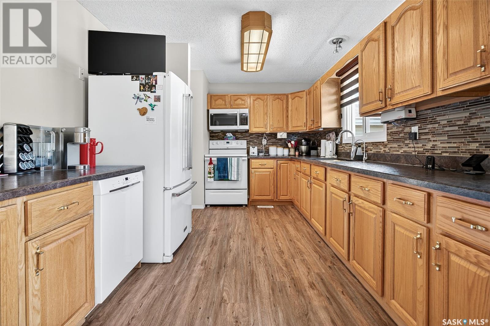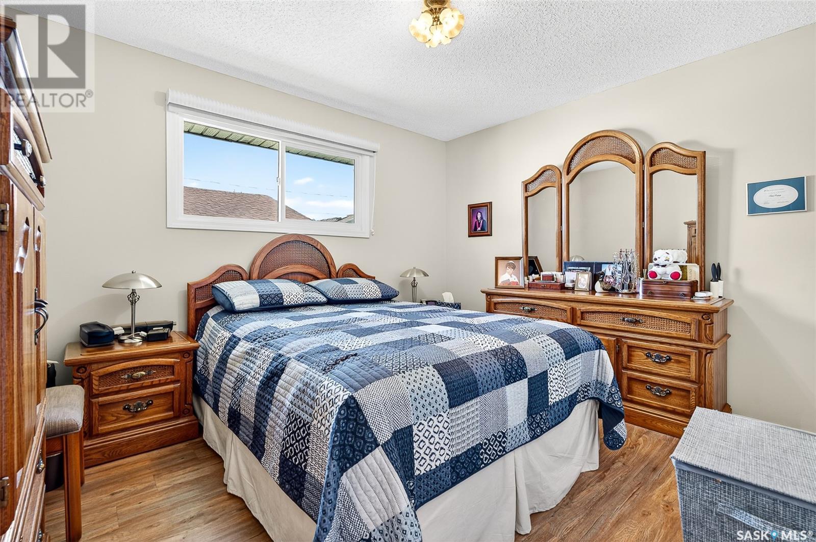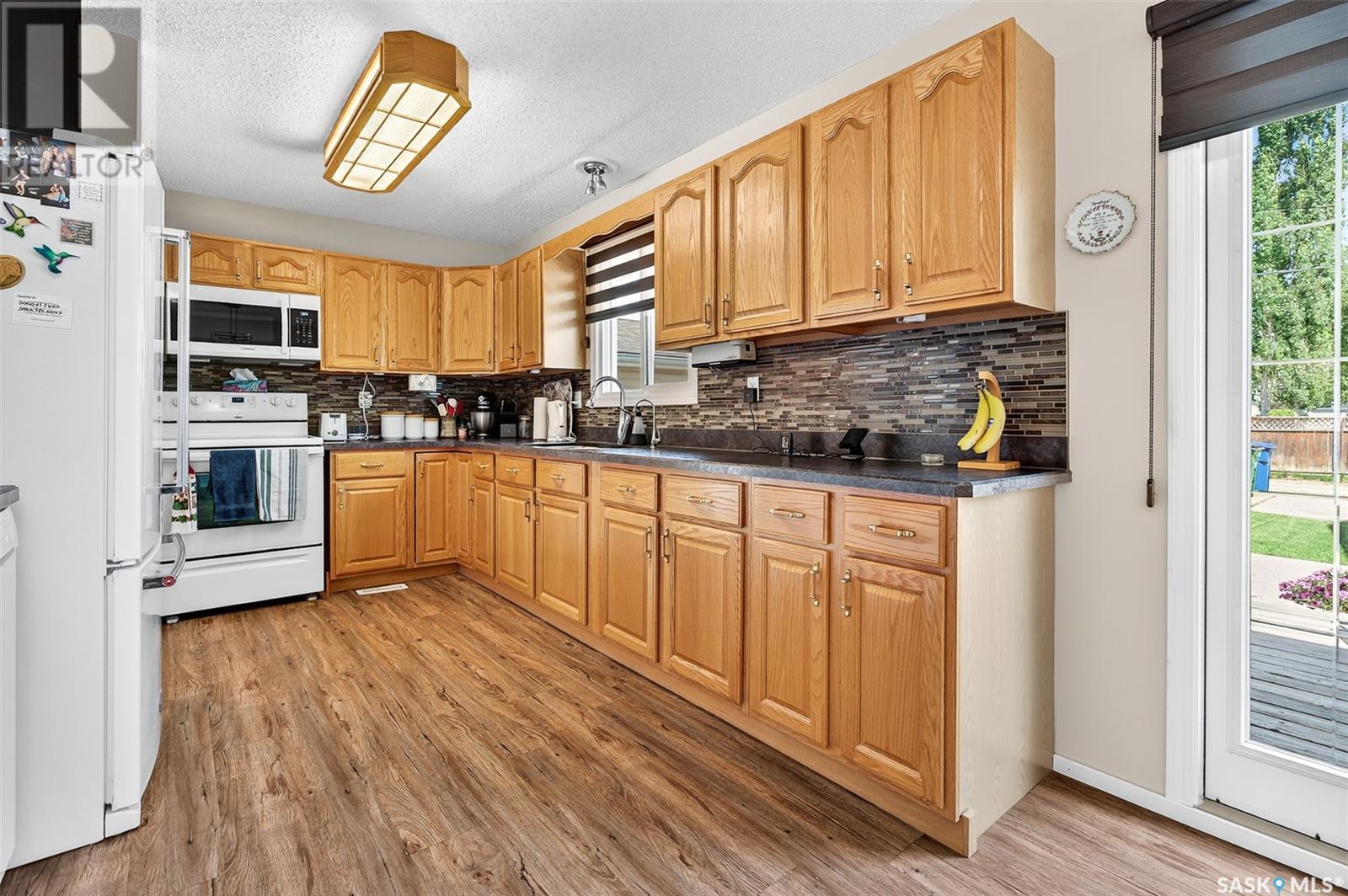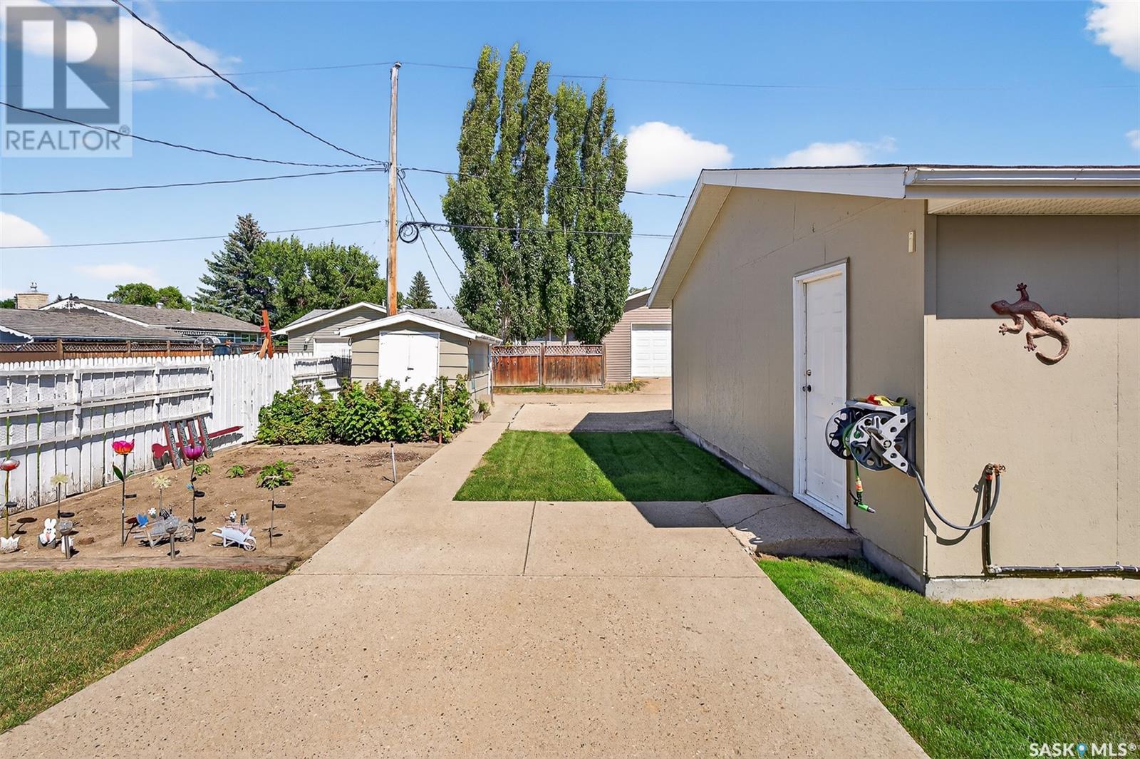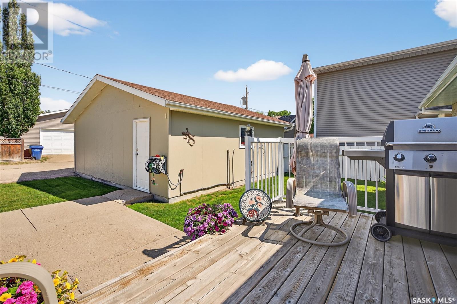 Charming 4-Bedroom Bungalow in Desirable Palliser Heights – Move-In Ready! Welcome to this beautifully updated 1040 sq ft bungalow, perfectly situated on a quiet crescent in the highly sought-after Palliser Heights neighborhood of Moose Jaw. This move-in ready home is ideal for families or anyone seeking comfort, space, and convenience in an established, peaceful neighborhood. The main floor features 3 spacious bedrooms, a bright living room with large window that flood the space with natural light, and a well-appointed kitchen with plenty of cabinetry and dining area that is perfect for family meals and entertaining. Updates over the past few years include, vinyl plank flooring throughout the main level, furnace, water softener, and central air conditioning, offering peace of mind and modern efficiency. The fully finished basement is a standout feature, with 1 additional bedroom, a den that could serve as a flexible space for an office or playroom, a second bathroom, and a large family room perfect for relaxation or gatherings. Outside, you’ll enjoy a beautifully landscaped yard with mature shrubs & trees, a garden area, deck with natural gas BBQ, underground sprinklers and a double detached garage, providing plenty of parking and storage. Located close to schools, parks, and walking trails, this location is everything! Don’t miss out on this fantastic opportunity to own a lovingly maintained bungalow in one of Moose Jaw’s most desirable neighborhoods. Schedule your private showing today (id:43042)