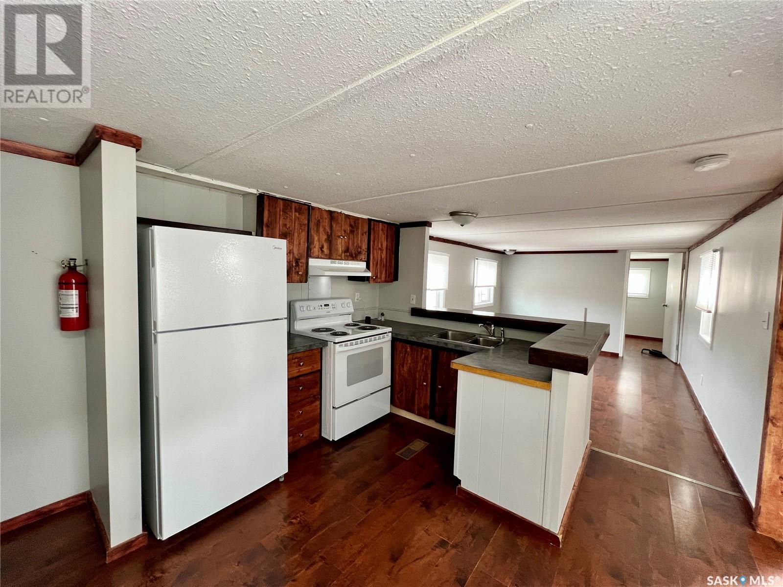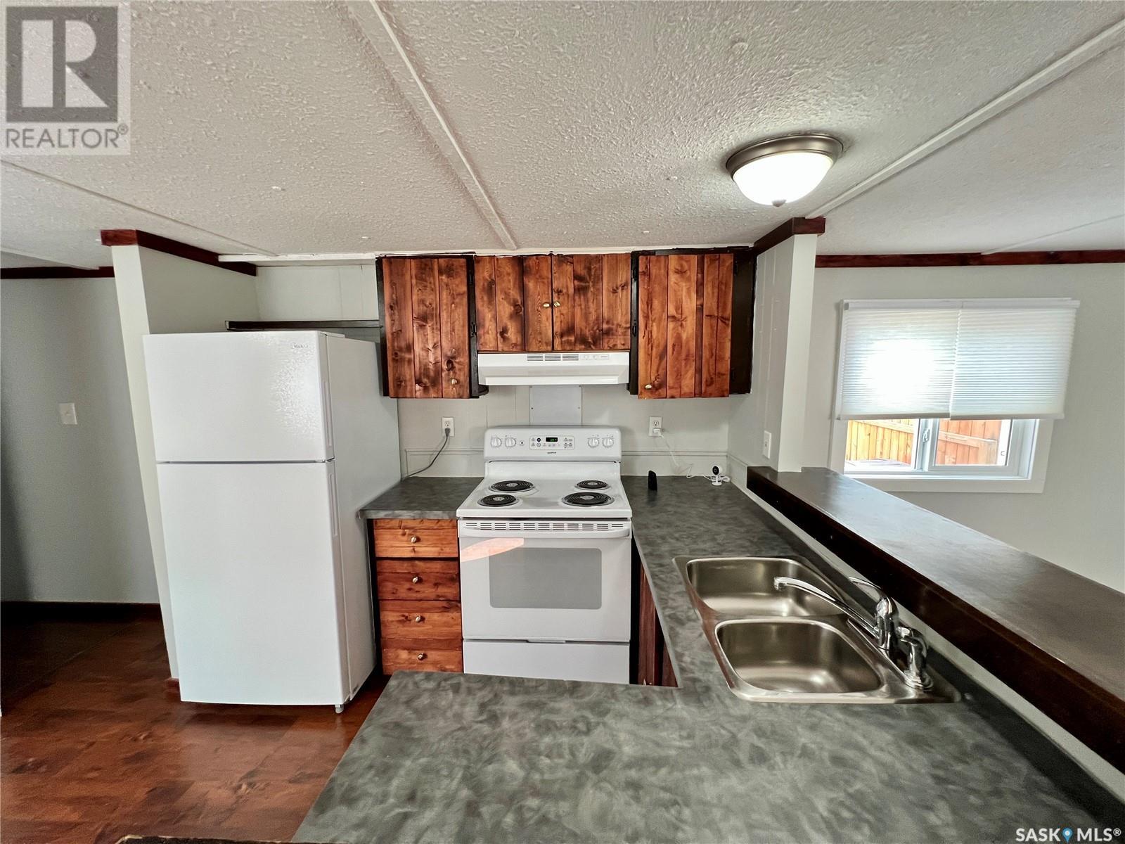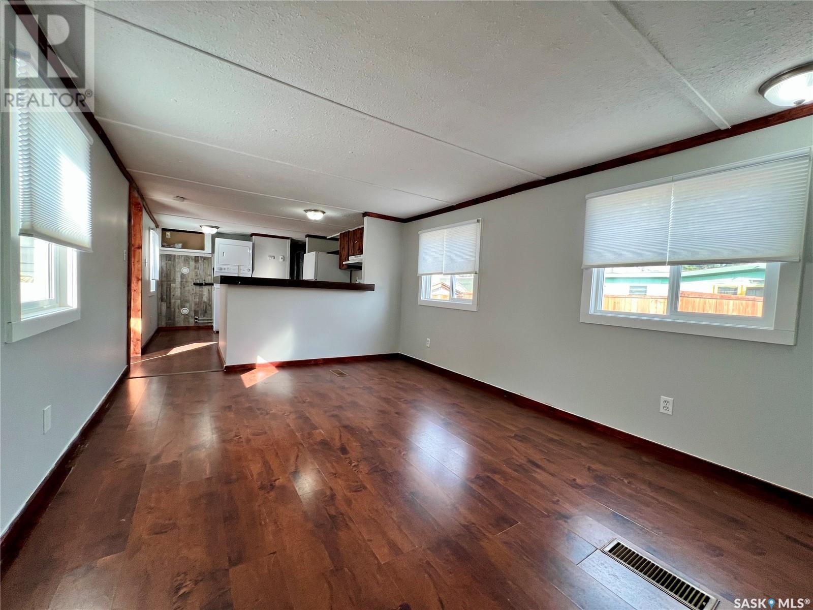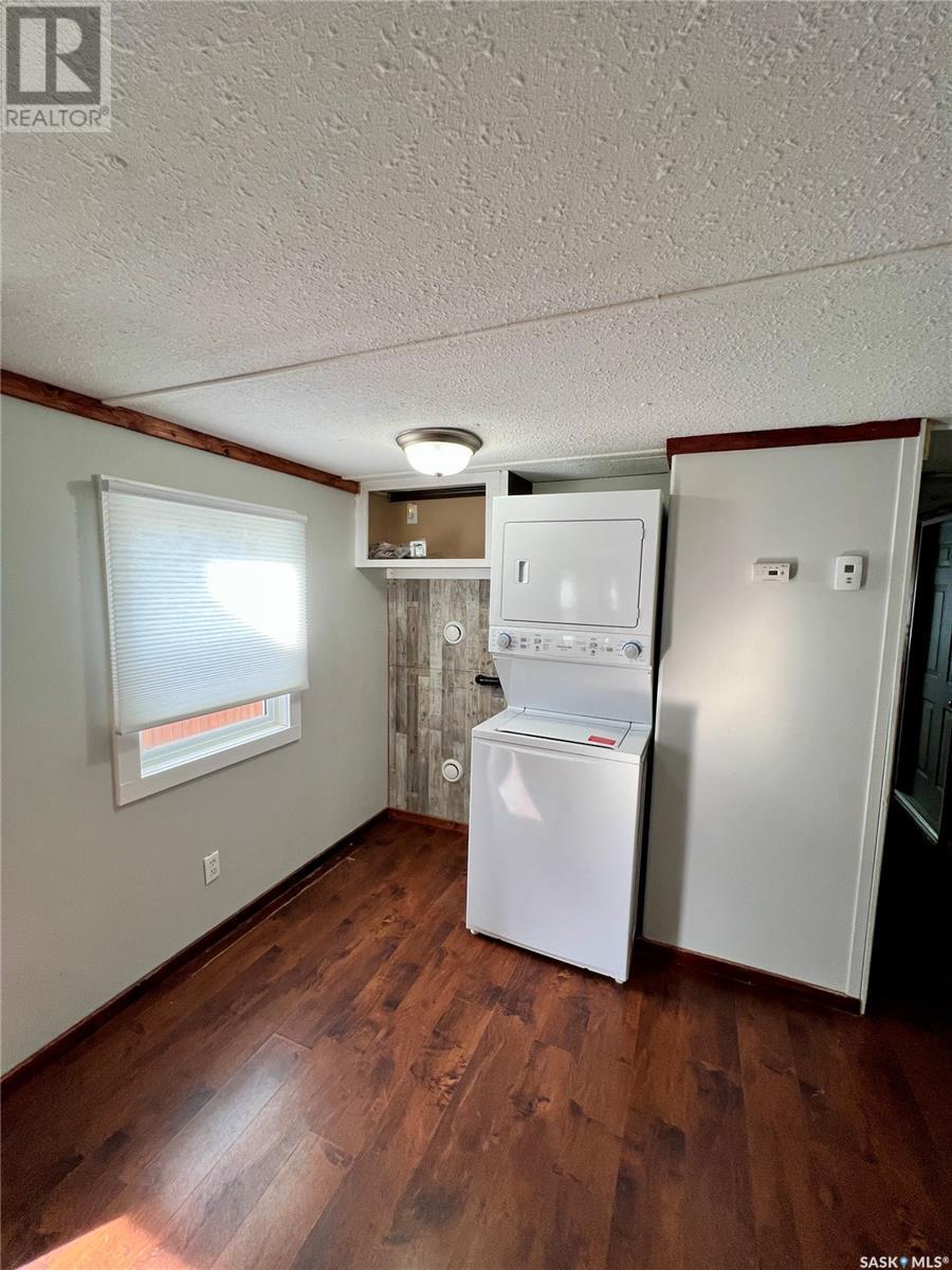 This mobile home features two bedrooms and a 4-piece bathroom. It comes with brand new appliances, including a fridge, stove, exhaust fan, and a stackable washer and dryer, all of which have never been used. The windows have been upgraded to new PVC with new blinds. Additional improvements include new heat tapes, a double-insulated main waterline, and fully insulated skirting, making the home energy-efficient year-round. Conveniently located close to the Pioneer Co-op and Wheatland Mall, this property is priced to move. The lot rent is $430 per month. Call today to arrange your personal tour! (id:43042)