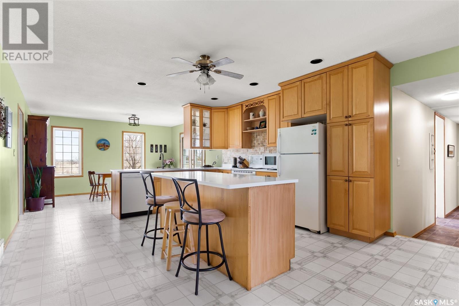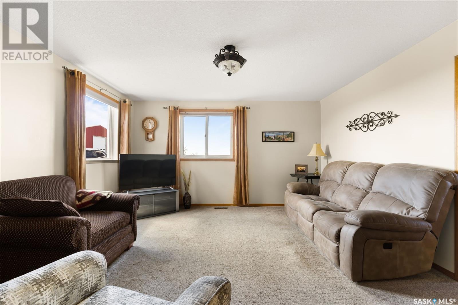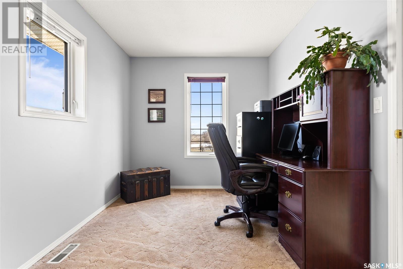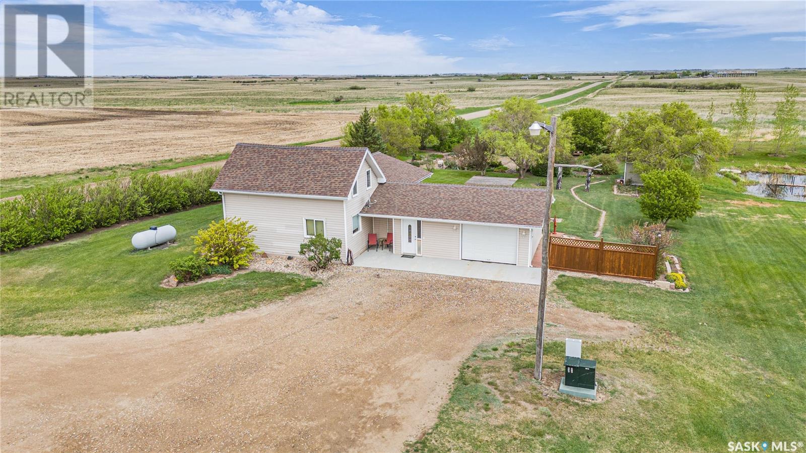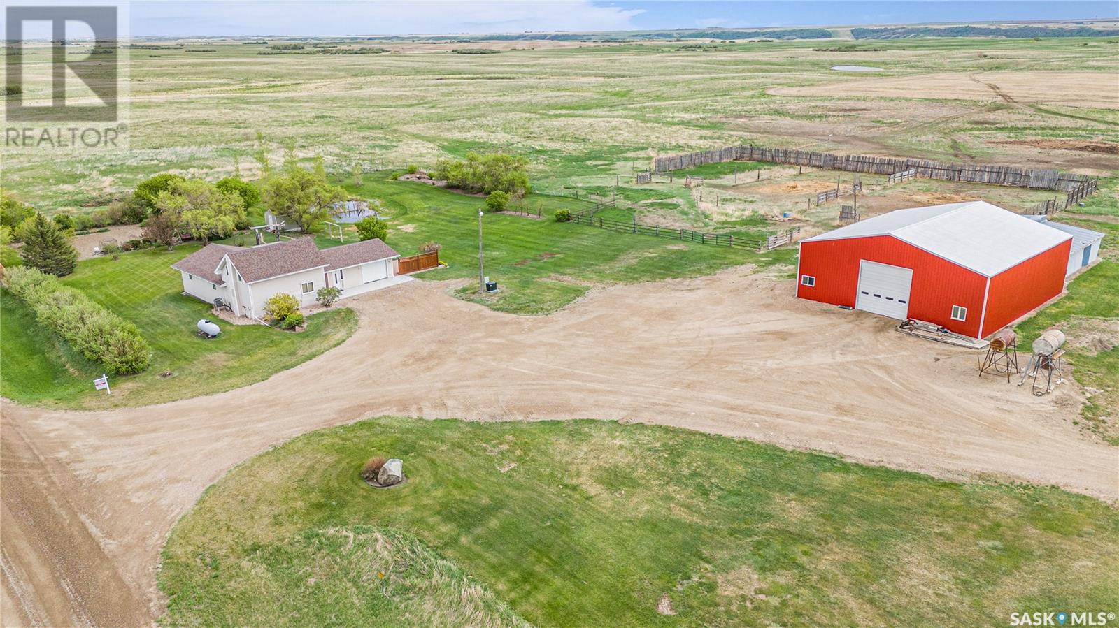 A picturesque rural acreage situated on 10 acres where you can truly get away from it all. Located just north of the Qu’appelle Valley and South of Bethune, off grid 642 with quick access to the K+ S Legacy road and Hwy 11. The property is partially fenced with corrals, water bowls, a 51’x56’ shed, a 30’x60’ storage bay, and water supply from the Dufferin Water Association. A beautiful 2-storey split home sits on the original homestead land, offering 1600 sq/ft of space with an addition that was built in 1998. You will enter the large foyer and kick off those boots before stepping into the main floor living space. The heart of this home is the large, eat-in kitchen with warm wood cabinets, modern appliances and generous counter space, a sit-up island with storage, and updated windows offering lots of natural light. French doors lead to the nicely landscaped yard featuring a sunny deck, pergola, mature trees, and a garden area. The updated 4-piece bath features vinyl tile flooring, a relaxing tub with tile surround, separate shower, and a large vanity. Also on the main floor, you’ll find a bright bedroom with modern laminate flooring, a private office ideal for remote work, and a large laundry room with built-in storage. Upstairs, 2 bedrooms offer ample cozy space and scenic country views. Value added items include all appliances and window coverings, and A/C. If you’ve always pictured a lifestyle surrounded by open space, the freedom to keep a horse or two, or grow a large garden, this is your chance. Call your agent today to schedule a showing. (id:43042)