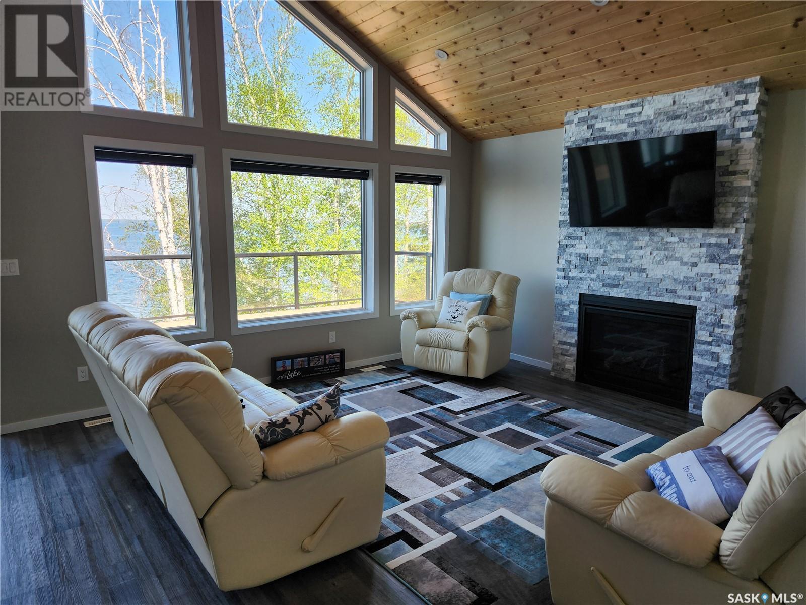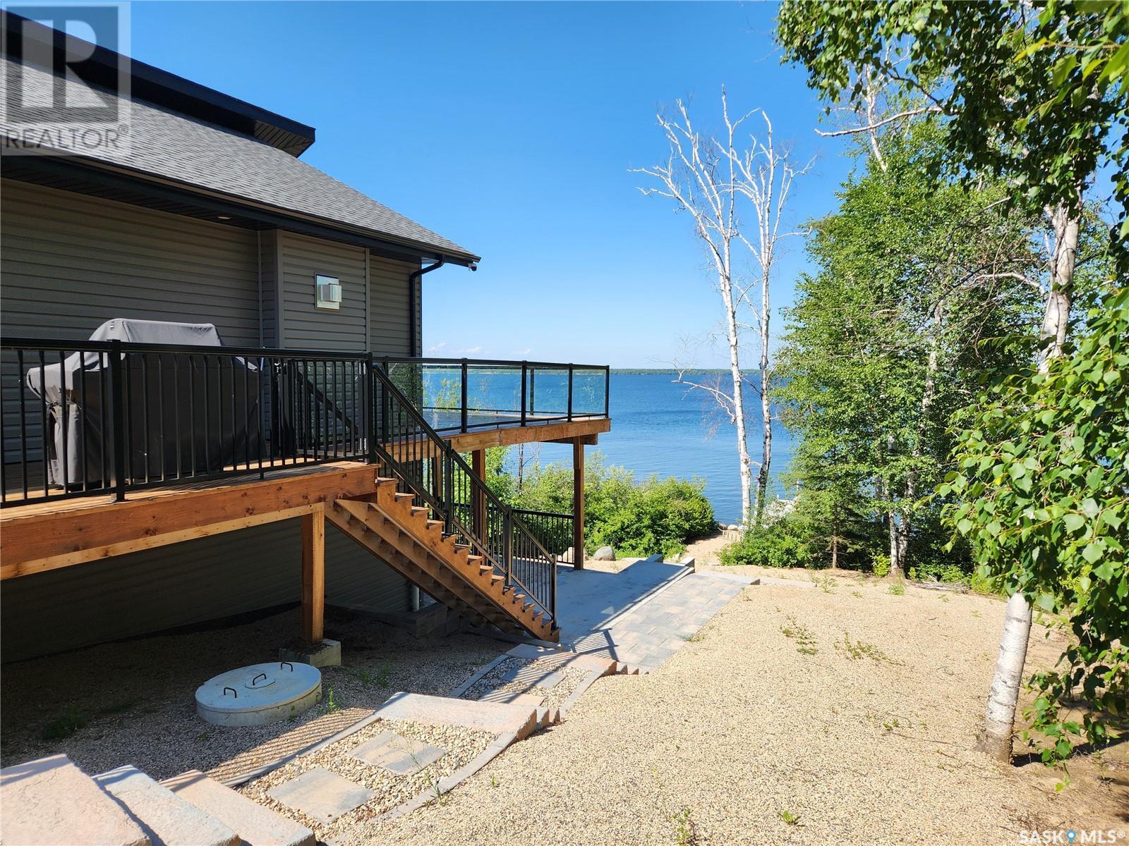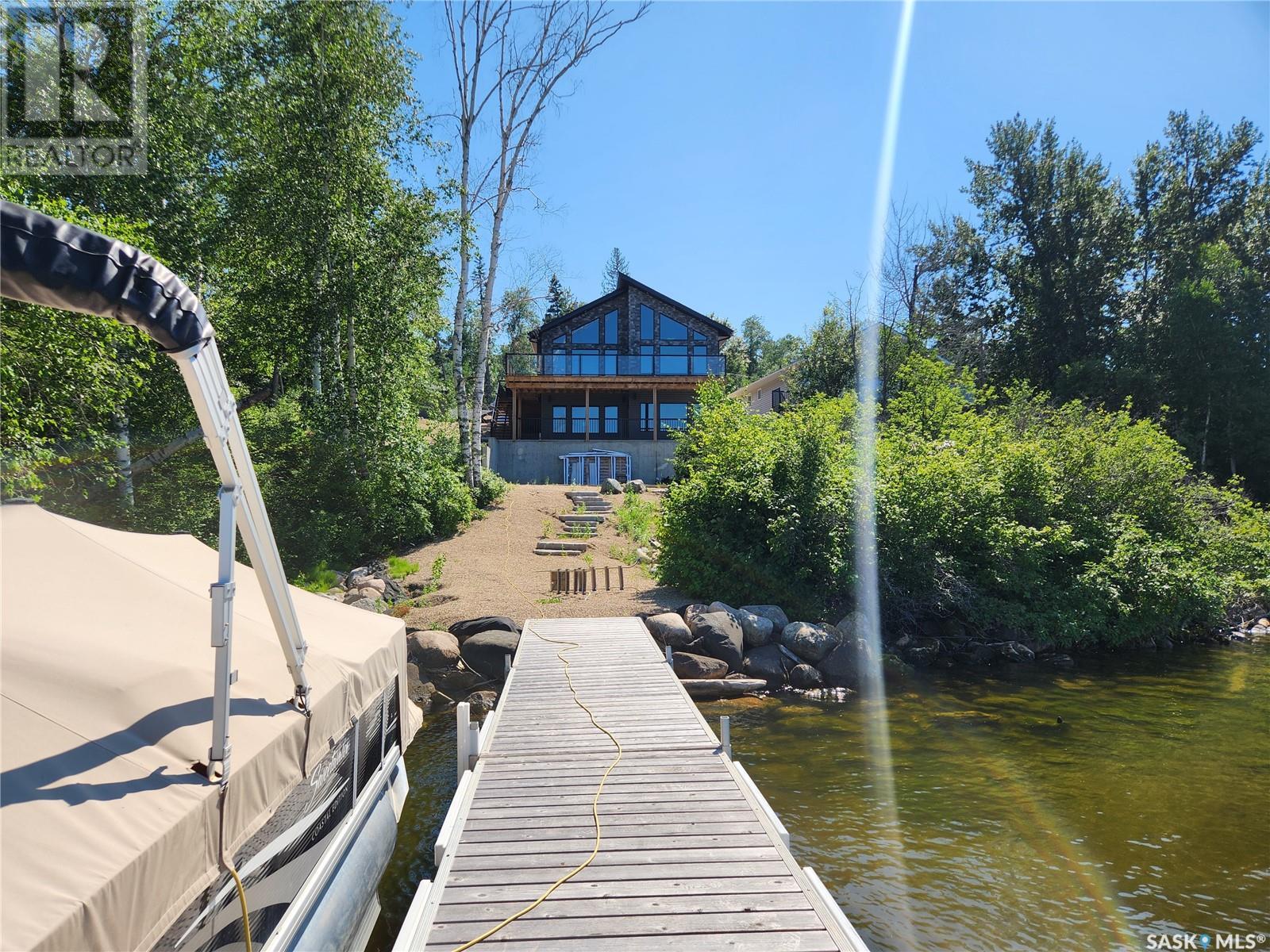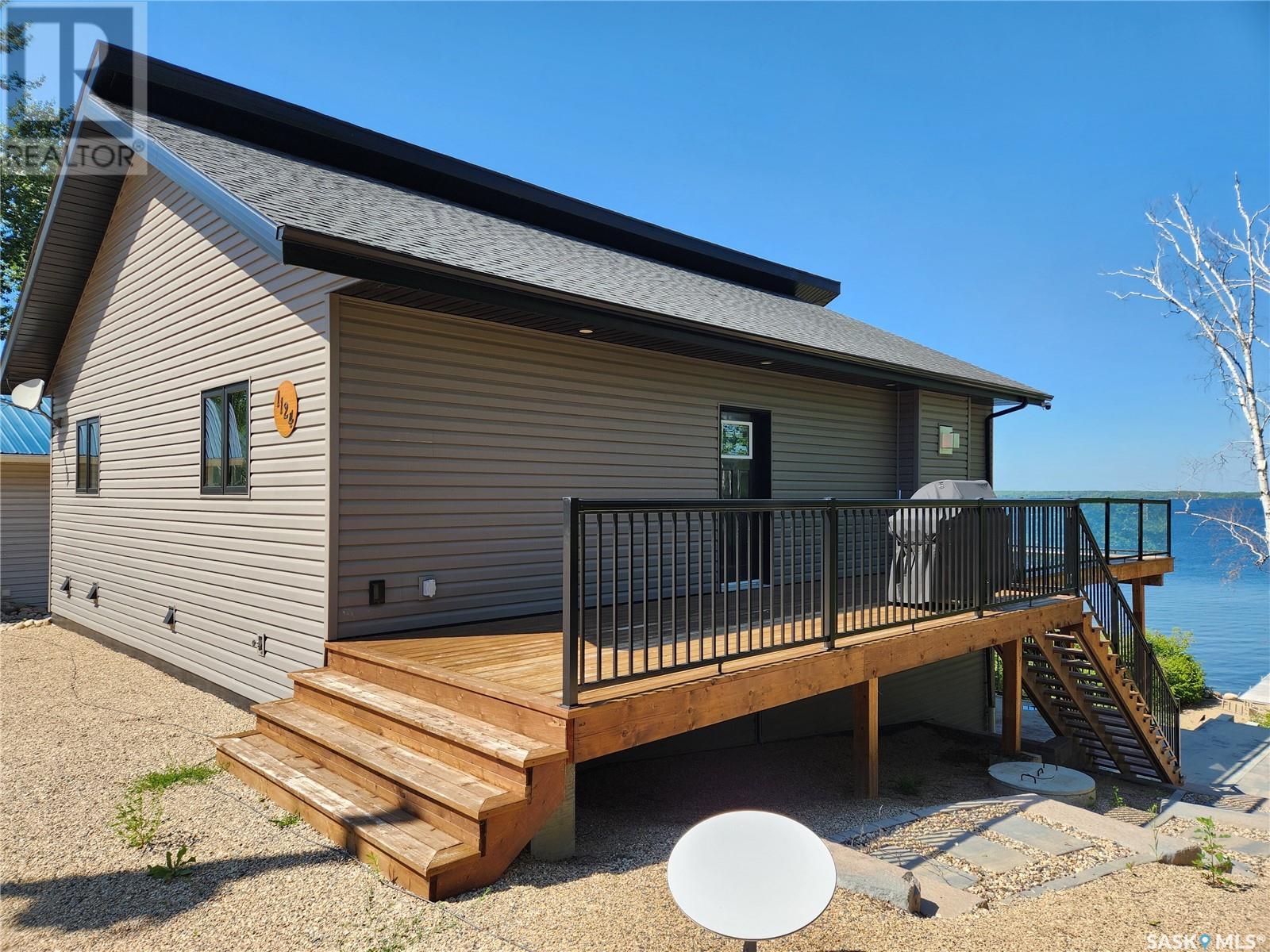 Nestled along the serene shores of Tobin Lake, SK this exceptional lakefront retreat offers the perfect blend of modern comfort and natural beauty. Boasting a total of 2405 sq ft of meticulously designed living space, this 4 bedroom, 2 bathroom home features a walkout basement, ideal for creating your dream home. The heart of the home is the expansive open concept kitchen, dining, and living areas, where soaring high pine ceilings create a bright and airy atmosphere. Custom cabinetry, granite countertops, and a walk in pantry make the kitchen as functional as it is stylish. Enjoy cozy evenings by the natural gas fireplace or cook up a feast in the fully equipped kitchen, complete with a natural gas oven. With vinyl plank flooring and a little lino throughout, this home blends durability with elegance. Triple pane Argon windows ensure optimal insulation and stunning lake views from every angle. For ultimate convenience, the main floor features laundry and a well thought out layout. Central air keeps the space cool during warmer months, while the professional landscaping around the property enhances its appeal. Step outside to your piece of paradise. The property includes a dock, perfect for boating, fishing, or simply soaking in the breathtaking view of the lake. Whether you're lounging on the deck or taking in the tranquility of the water, you'll feel like you are on vacation every day. Call today to view. (id:43042)