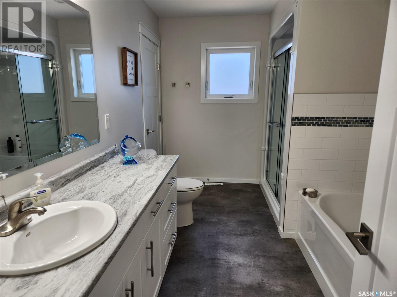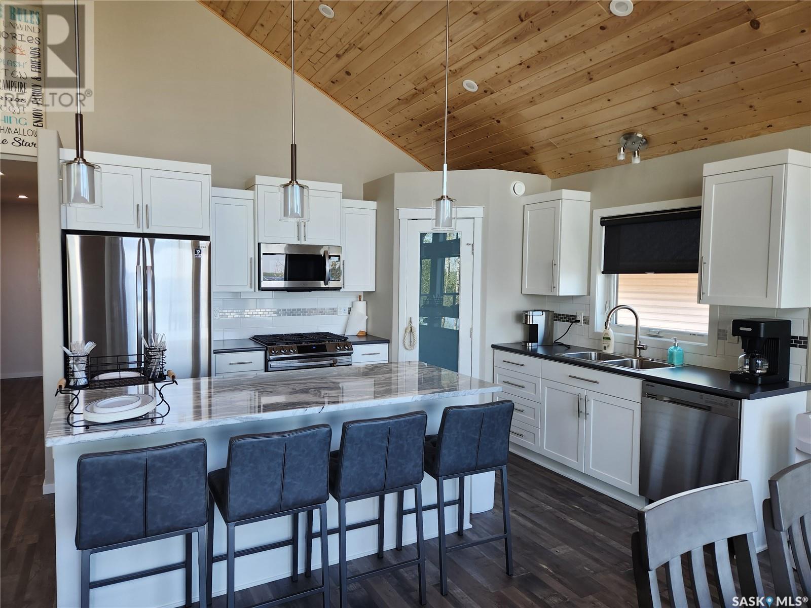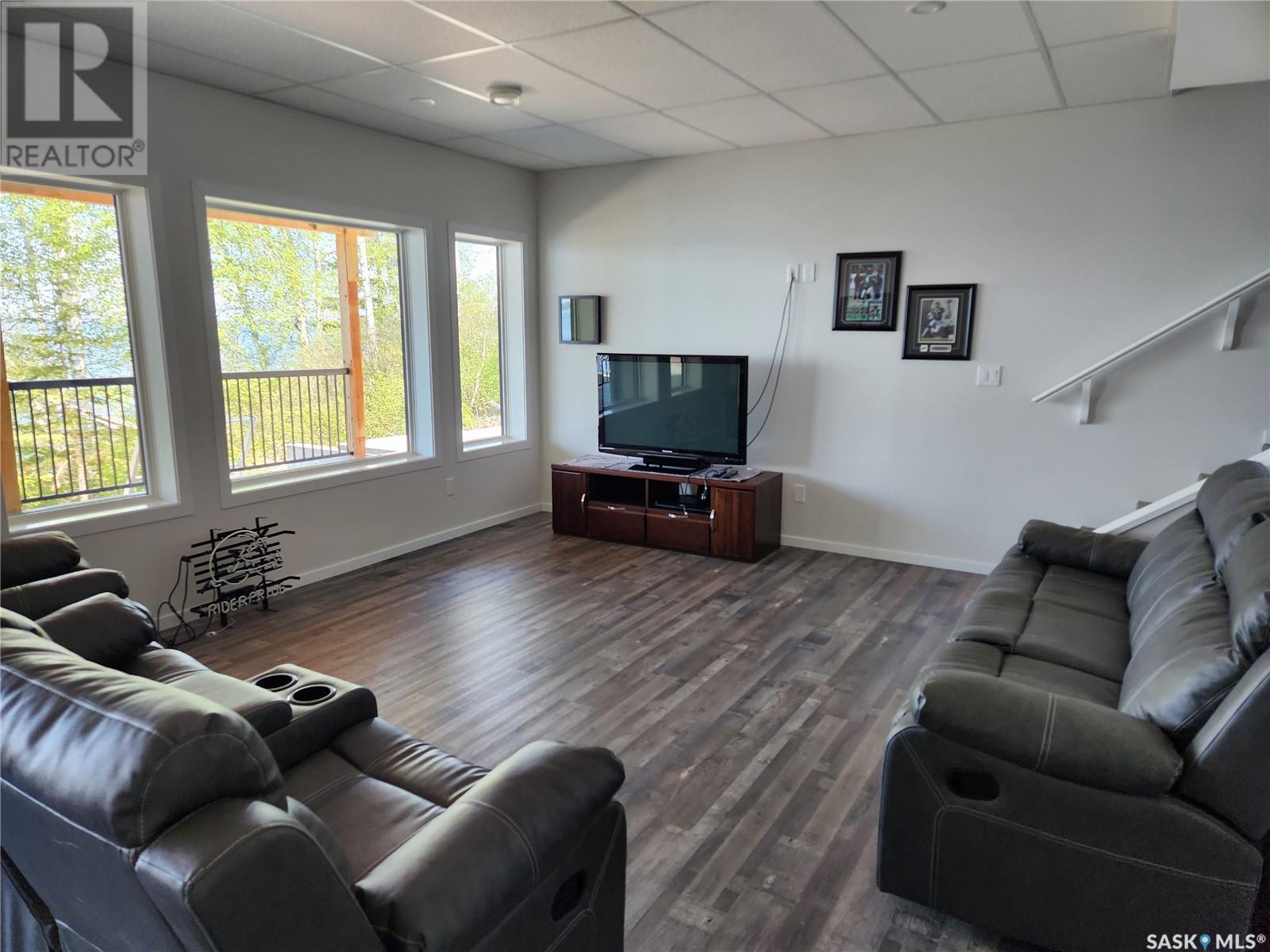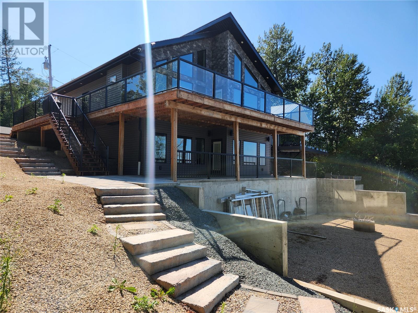 Nestled along the serene shores of Tobin Lake, SK this exceptional lakefront retreat offers the perfect blend of modern comfort and natural beauty. Boasting a total of 2405 sq ft of meticulously designed living space, this 4 bedroom, 2 bathroom home features a walkout basement, ideal for creating your dream home. The heart of the home is the expansive open concept kitchen, dining, and living areas, where soaring high pine ceilings create a bright and airy atmosphere. Custom cabinetry, granite countertops, and a walk in pantry make the kitchen as functional as it is stylish. Enjoy cozy evenings by the natural gas fireplace or cook up a feast in the fully equipped kitchen, complete with a natural gas oven. With vinyl plank flooring and a little lino throughout, this home blends durability with elegance. Triple pane Argon windows ensure optimal insulation and stunning lake views from every angle. For ultimate convenience, the main floor features laundry and a well thought out layout. Central air keeps the space cool during warmer months, while the professional landscaping around the property enhances its appeal. Step outside to your piece of paradise. The property includes a dock, perfect for boating, fishing, or simply soaking in the breathtaking view of the lake. Whether you're lounging on the deck or taking in the tranquility of the water, you'll feel like you are on vacation every day. Call today to view. (id:43042)