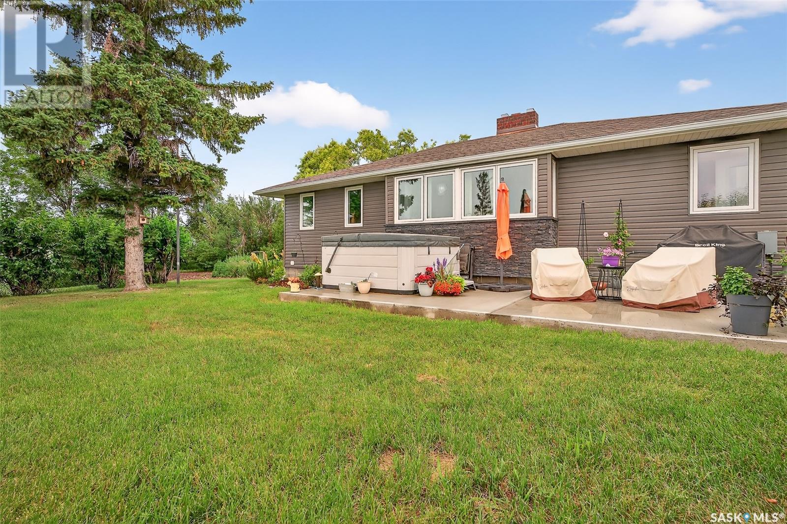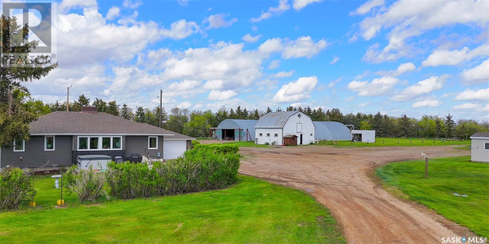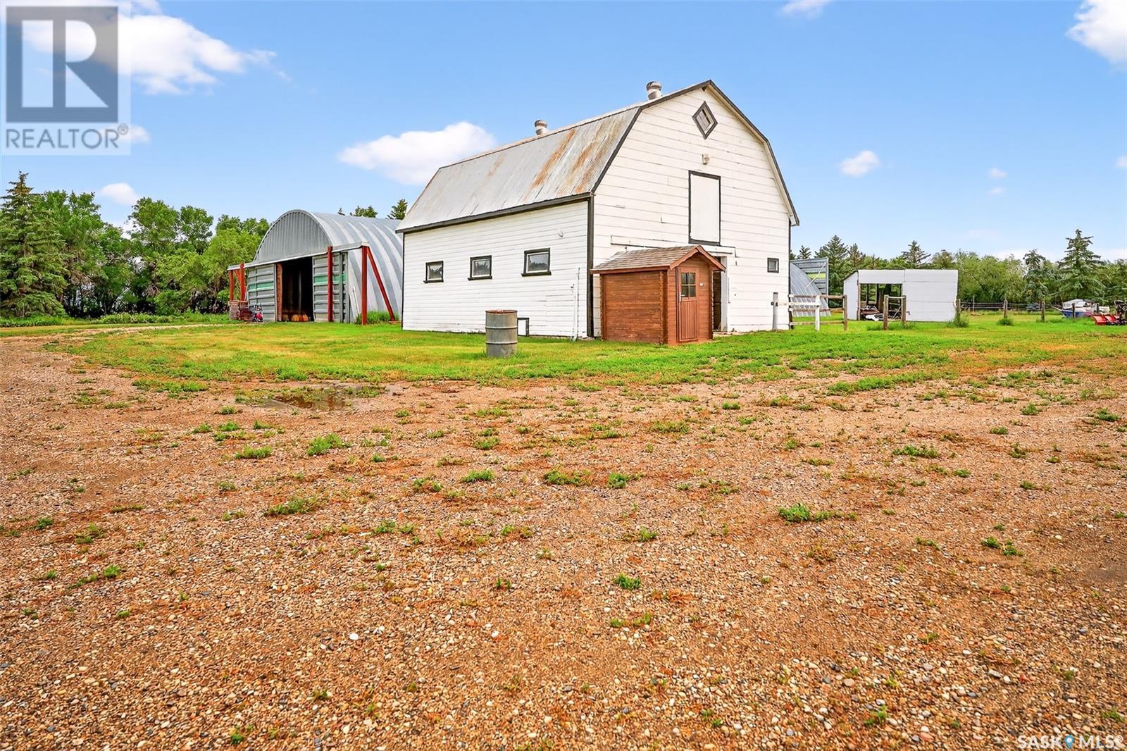 Private 10-Acre Oasis Just 5 Minutes from Moose Jaw! This incredible acreage offers the perfect blend of privacy, convenience, and functionality — all just a short drive from town. Tucked behind a mature shelterbelt, the beautifully landscaped yard creates a serene, secluded setting ideal for country living. The property features: 60' x 100' metal Quonset plus a second smaller Quonset for extra storage A charming barn with water and power, complete with a converted hayloft ready for use A private camping area with RV plug and water, hot tub, gazebo, garden space, and fenced paddocks for animals or hobbies The 3-bedroom, 2-bathroom bungalow offers a bright, welcoming layout with a brand-new renovated kitchen, fully finished basement, and updated mechanicals. The home is serviced by city water, natural gas, and power, with a new septic tank and system installed just a few years ago — all the big-ticket items are done. Whether you’re looking for space to grow, room for animals, or just peace and quiet close to town, this is a must-see opportunity. Move-in ready. Acreage living at its best! (id:43042)
