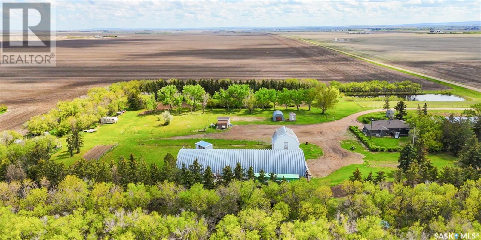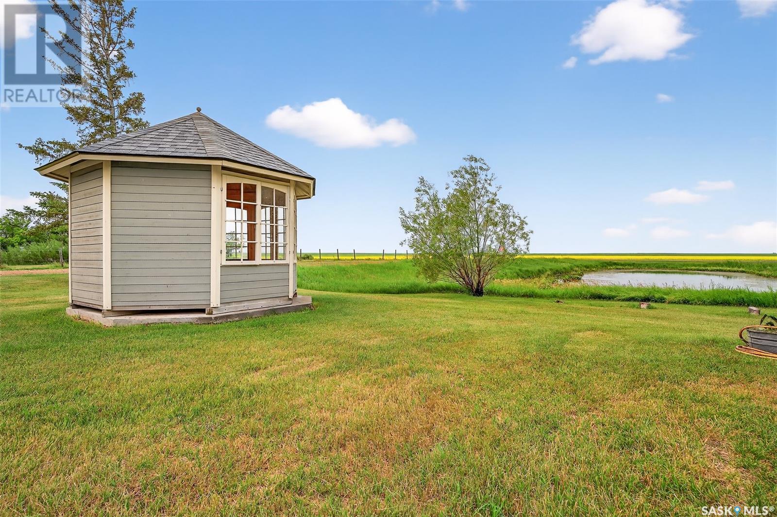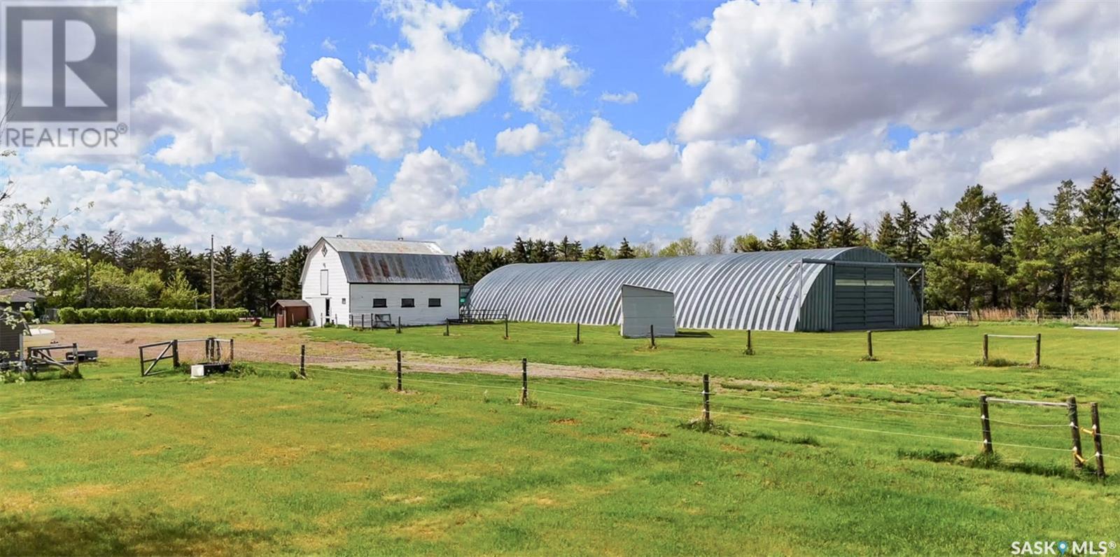 Private 10-Acre Oasis Just 5 Minutes from Moose Jaw! This incredible acreage offers the perfect blend of privacy, convenience, and functionality — all just a short drive from town. Tucked behind a mature shelterbelt, the beautifully landscaped yard creates a serene, secluded setting ideal for country living. The property features: 60' x 100' metal Quonset plus a second smaller Quonset for extra storage A charming barn with water and power, complete with a converted hayloft ready for use A private camping area with RV plug and water, hot tub, gazebo, garden space, and fenced paddocks for animals or hobbies The 3-bedroom, 2-bathroom bungalow offers a bright, welcoming layout with a brand-new renovated kitchen, fully finished basement, and updated mechanicals. The home is serviced by city water, natural gas, and power, with a new septic tank and system installed just a few years ago — all the big-ticket items are done. Whether you’re looking for space to grow, room for animals, or just peace and quiet close to town, this is a must-see opportunity. Move-in ready. Acreage living at its best! (id:43042)