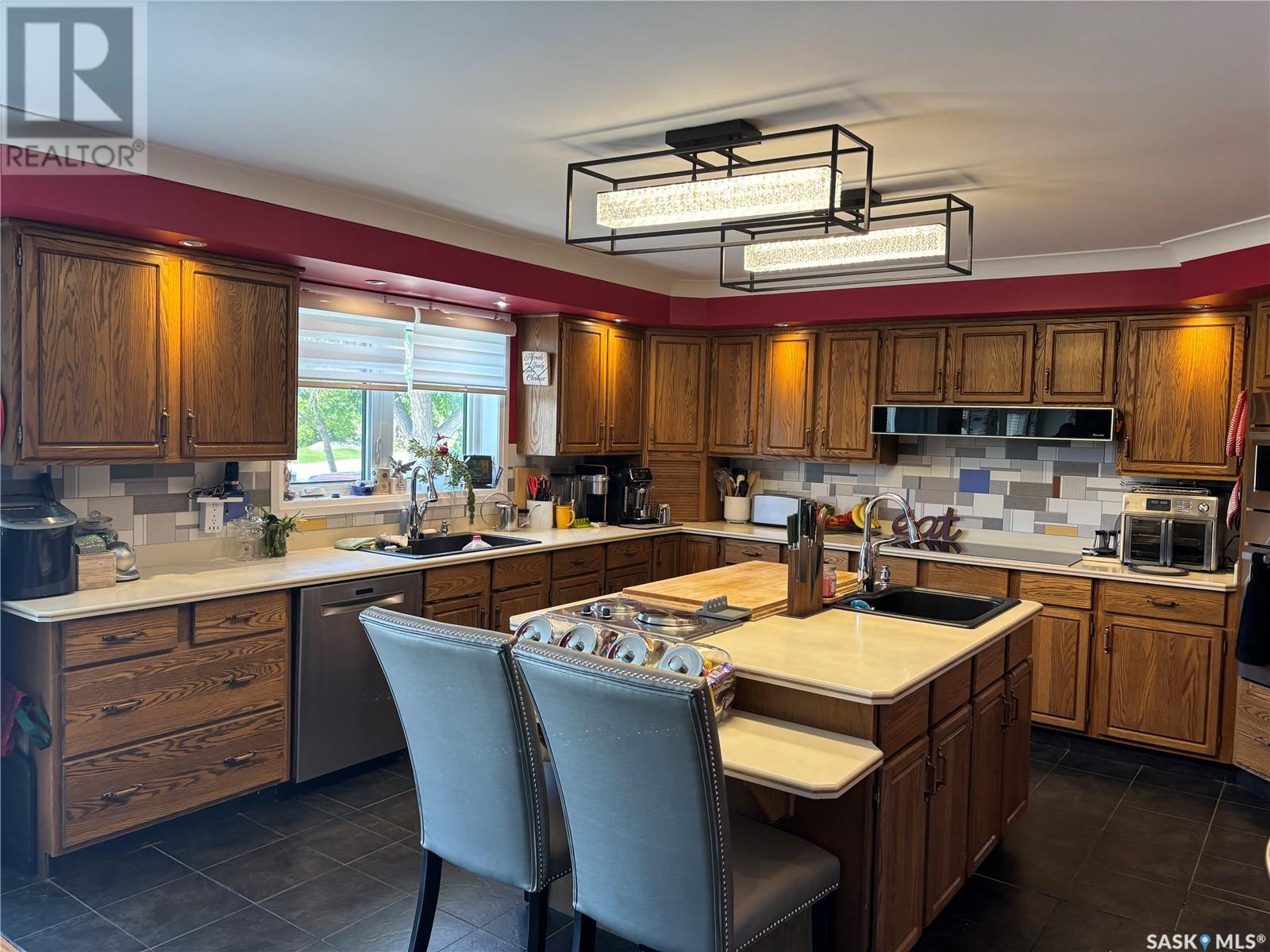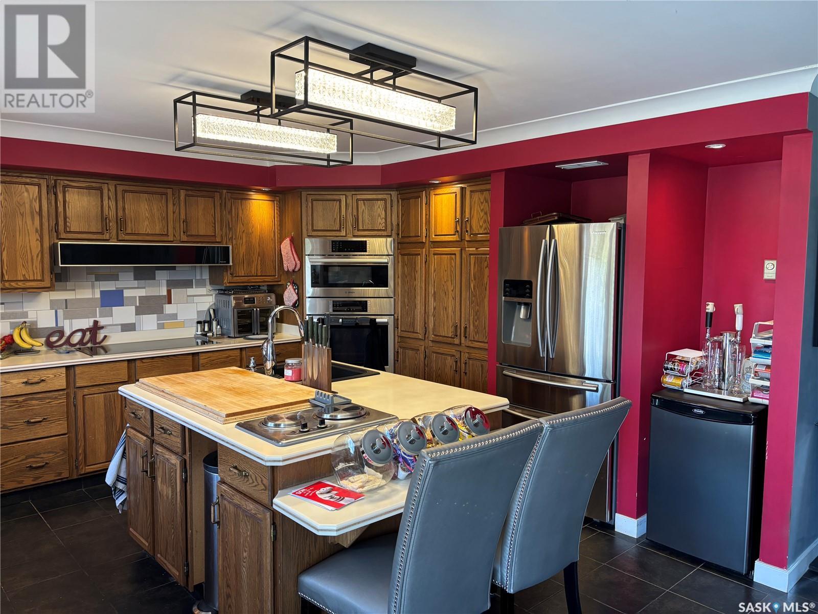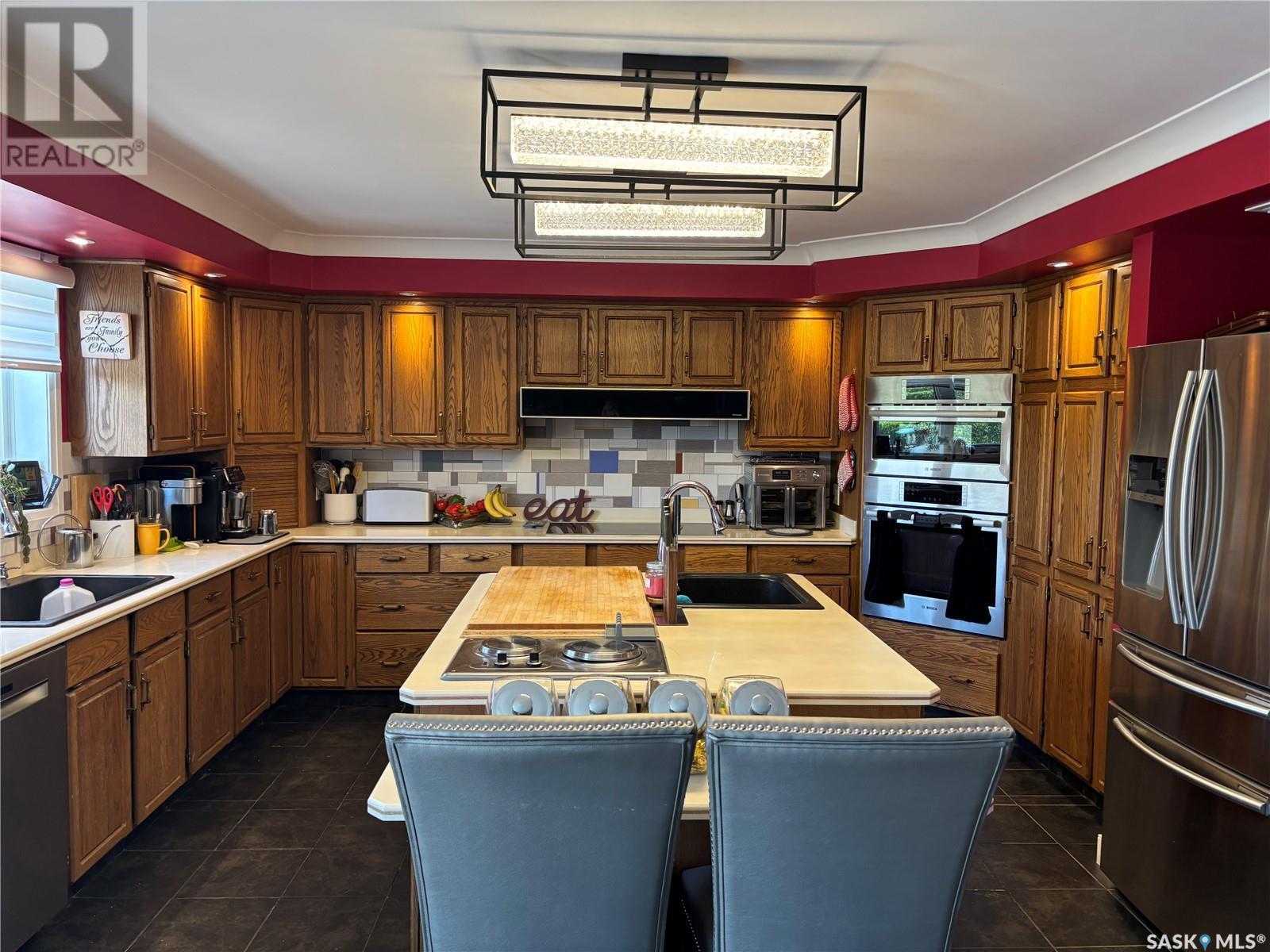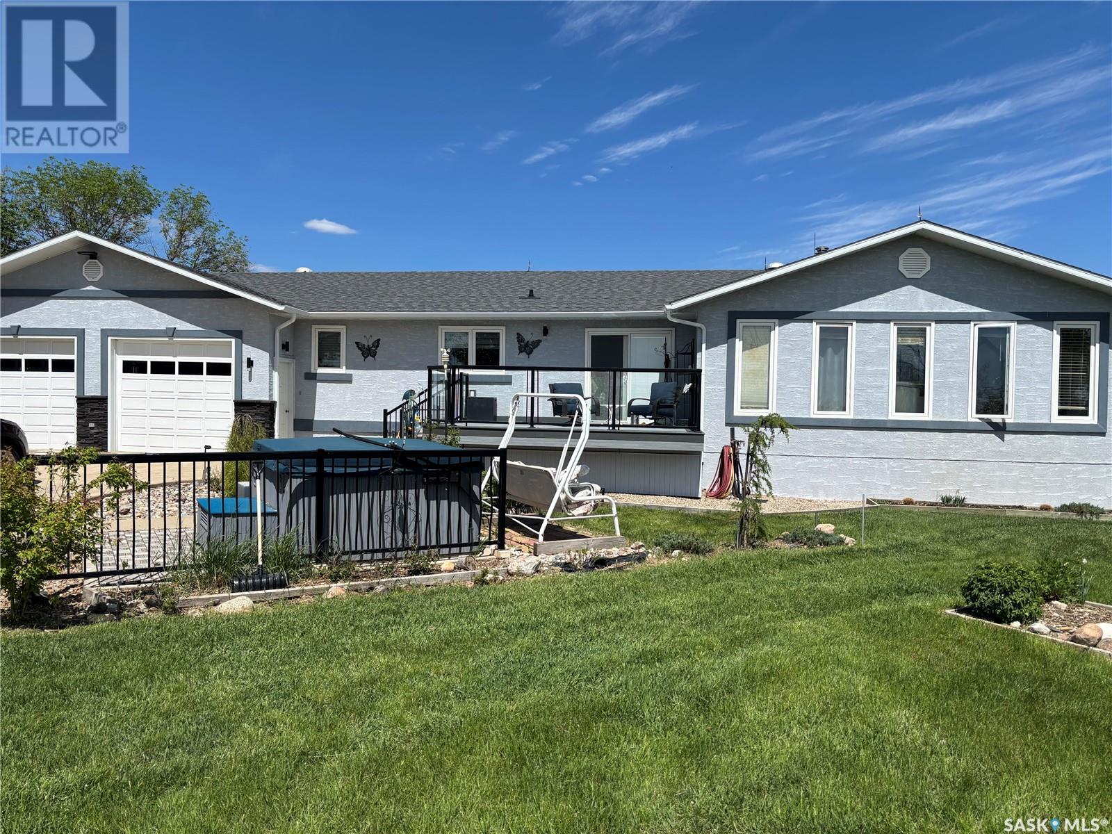 Welcome to acreage living at its best. This large executive property boosts so many amazing features. Its located just minutes from Cabri on highway 37 south. This is a very well cared for, exceptionally built, over 2000 square foot bungalow with a gorgeous oak kitchen, featuring high end stainless steel appliances, a large island, ample cupboard space and really is any homemakers dream. There is a large living room adjacent to the kitchen, that allows excellent opportunities for entertaining. The dining room is luxurious and inviting making for the perfect place to host diner parties. On the main floor you will also find an enormous primary bedroom with a brand new ensuite bath with a walk in shower. There are 2 other bedrooms on the main level as well as a half bath and a 5 piece bath. Main floor laundry is also a huge bonus. In the lower level you will enjoy a spacious recreation room, wood burning stove, 2 more large bedrooms and another 5 piece bath. This home is situated on 4.44 acres of land that is beautifully landscaped with an established shelter belt, garden boxes, flower beds, a greenhouse, chicken coop, Heated 25 x 40 Shop, hot tub and fire pit area, a 2 car attached garage, new no maintenance deck with tempered glass aluminum railings, underground sprinkler system and a large dugout used as your main water supply. This property is a must see to appreciate. Call today for more information or to book your own viewing. (id:43042)