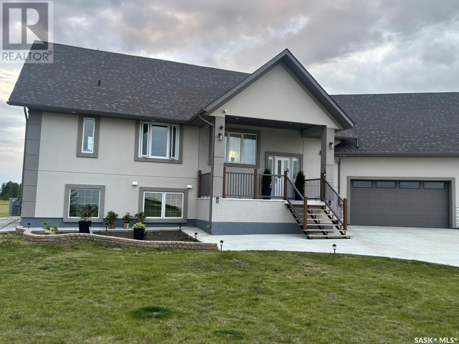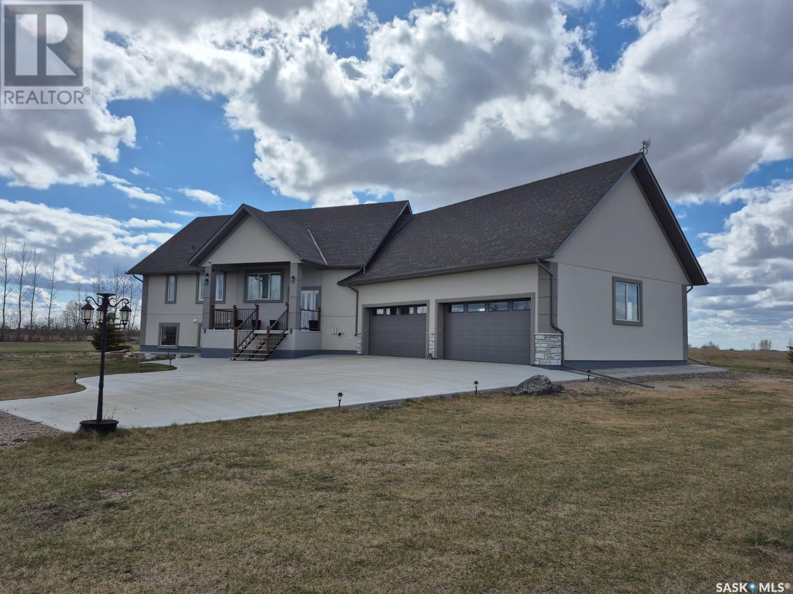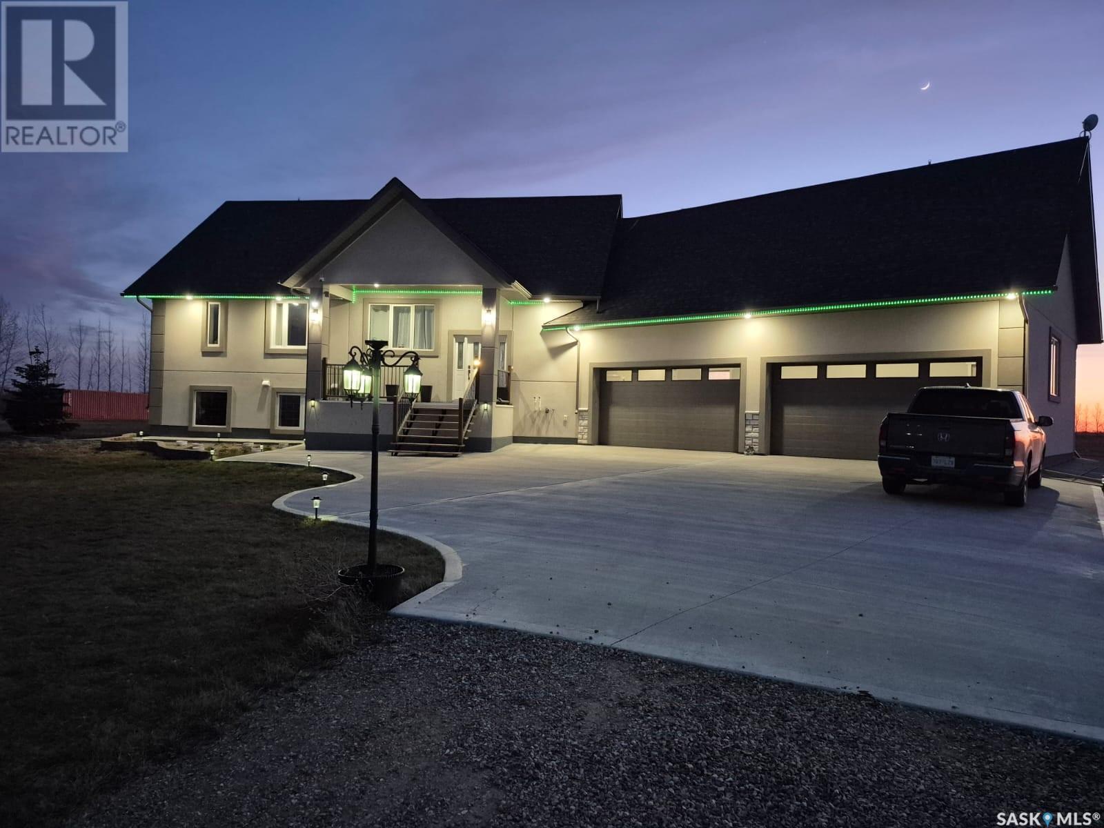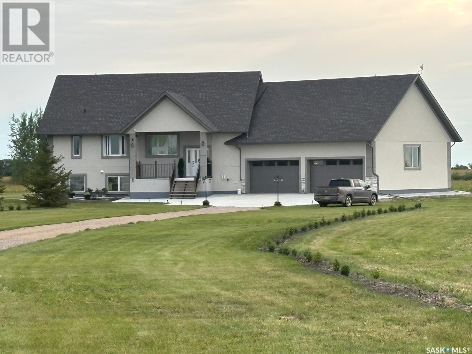 Your Dream Acreage Awaits – 40 Acres of Opportunity & Tranquility. Welcome to your private retreat just outside the city — where nature, space, and lifestyle come together in perfect harmony. Nestled on a divisible 40-acre parcel, this exceptional property offers the rare blend of wide-open land and a warm, inviting home that’s ready to accommodate your dreams — whether it's a hobby farm, multigenerational living, or simply room to breathe. Step into a charming 1,535 sq. ft. bi-level home featuring 4 spacious bedrooms and 3 full bathrooms, with a bright and functional layout designed for comfortable family living. The fully developed lower level mirrors the upper floor in size, offering additional living space perfect for extended family, entertainment, or a home office setup. Large windows flood both levels with natural light, creating a welcoming ambiance throughout. And for the hobbyist, tradesperson, or anyone needing serious space – you’ll love the massive 32’ x 38’ garage, ideal for storing vehicles, toys, equipment, or transforming into the ultimate workshop. Family-friendly bonus: The school bus stops right at your driveway, making pick-up and drop-off a breeze for kids attending Clavet School — giving you peace of mind and added convenience. This is more than just a property — it's a lifestyle opportunity. Bring your vision and make it your own VIDEO TOUR LINK https://youtu.be/rv6M4Ao48kA (id:43042)