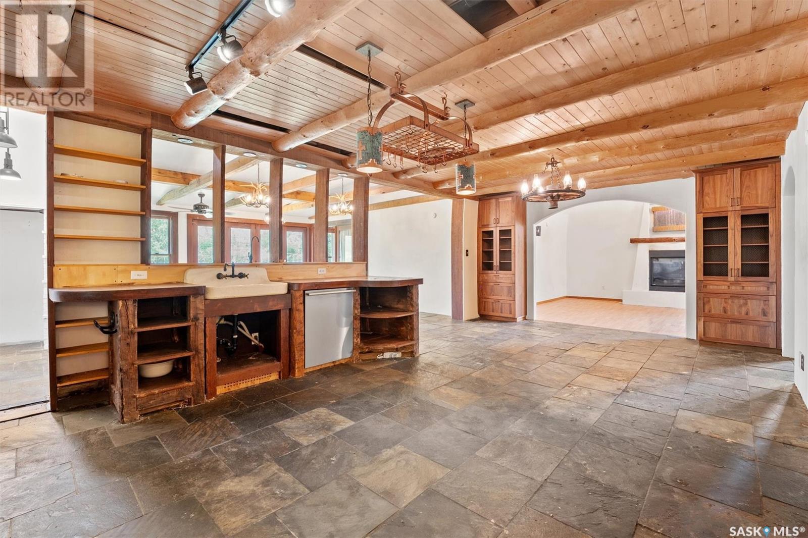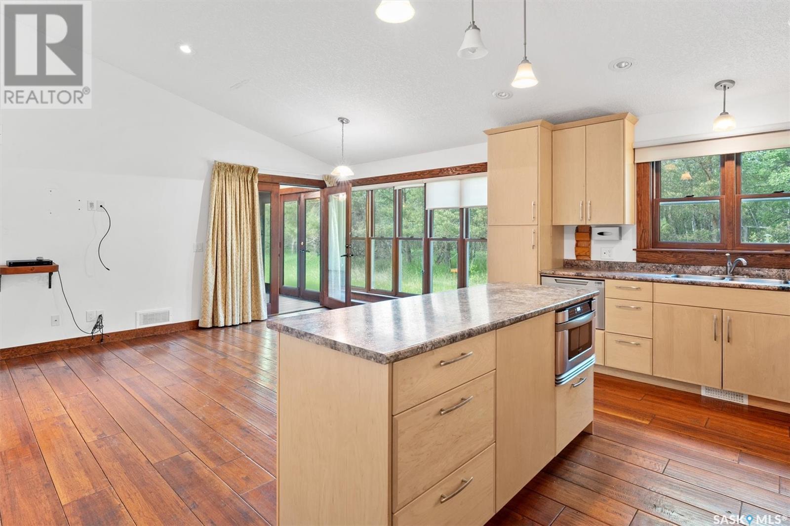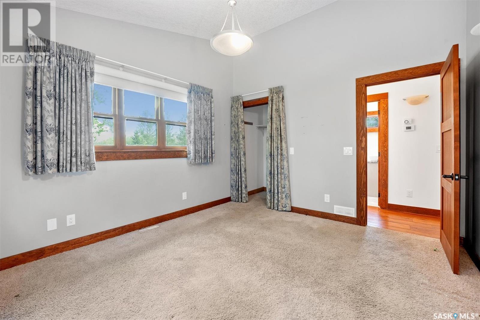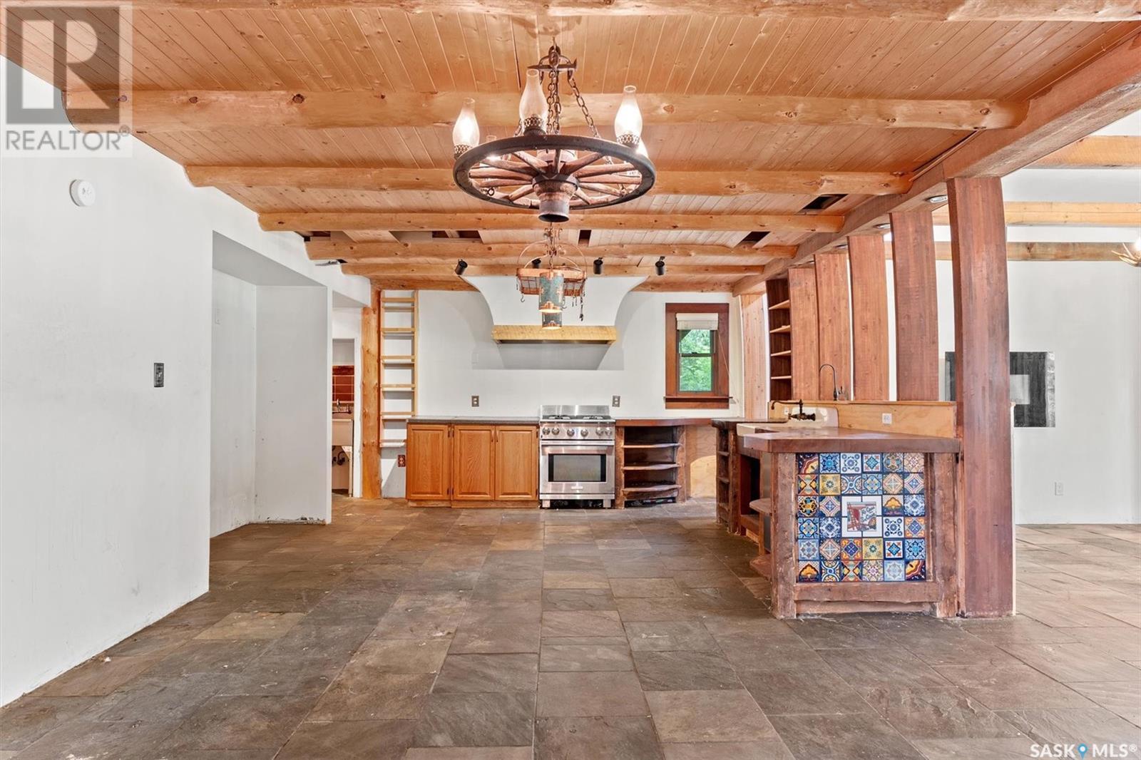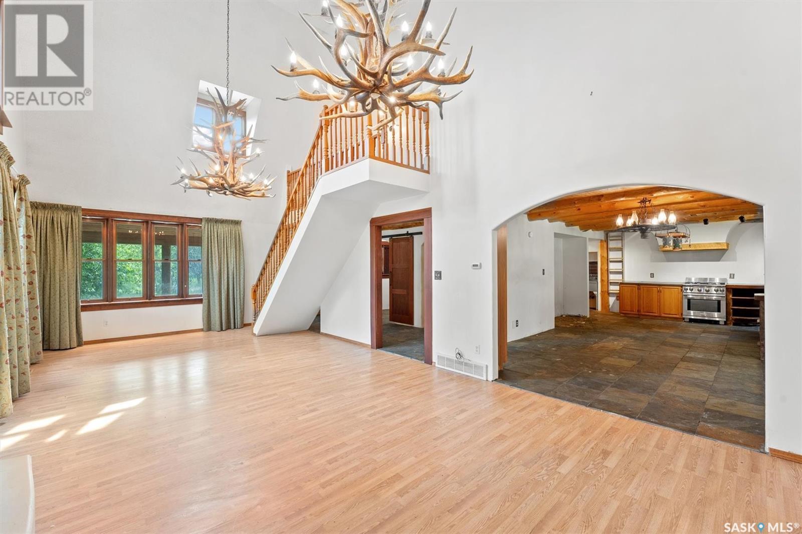 Check out this 21.96 ACRE parcel complete with a ONE-OF-A-KIND archrib style home with attached mother in-law suite; 32 x 36 insulated stable built in 2000; paddocks with shelters; a shelter for feed or equipment storage; and kennels and abundant planted and natural trees. Approx. 14 kilometers SE of Saskatoon. NOTE: the property has been vacant for some time and is being sold 'as is, where is'. The construction quality appears to be excellent in this custom built property. it features Adobe style finishing utilizing many natural products including exposed Douglas fir, cedar accents, rough cut & hand scraped pine, imported tiles from Mexico, custom cabinetry and African Babinga wood. THIS IS TRULY A DISTINCTIVE PROPERTY with Open dining area; two story great room with gas fireplace and very unique light fixtures; primary bedroom with TWO ensuite baths (5 pc bath with bidet & claw foot tub and a 3 pc bath with oversized shower), a gas fireplace, and raised walk-in closet; 2nd bedroom features a 3pc ensuite with a soaker tub and abundant closet space. The bonus room over the garage provides a very generous space for you to let your imagination take over. The attached one bedroom mother-in-law suite with separate entrance plus joining doors is fully equipped. The metal roof was installed in 2011(needs to be completed over the front side of the garage). The water supply was a connection to a high pressure, treated water line ( not drip system ). Out buildings include the 32’ by 36’ insulated stable, 3 stalls, tack and feed room, pine ceiling, 12’x 18’ barn, other animal shelters, a 25’ x 30’ open face feed or equipment storage building plus kennels, garden sheds & paddocks. This property offers many opportunities for the horse enthusiast. Call your real estate professional to view it today! (id:43042)