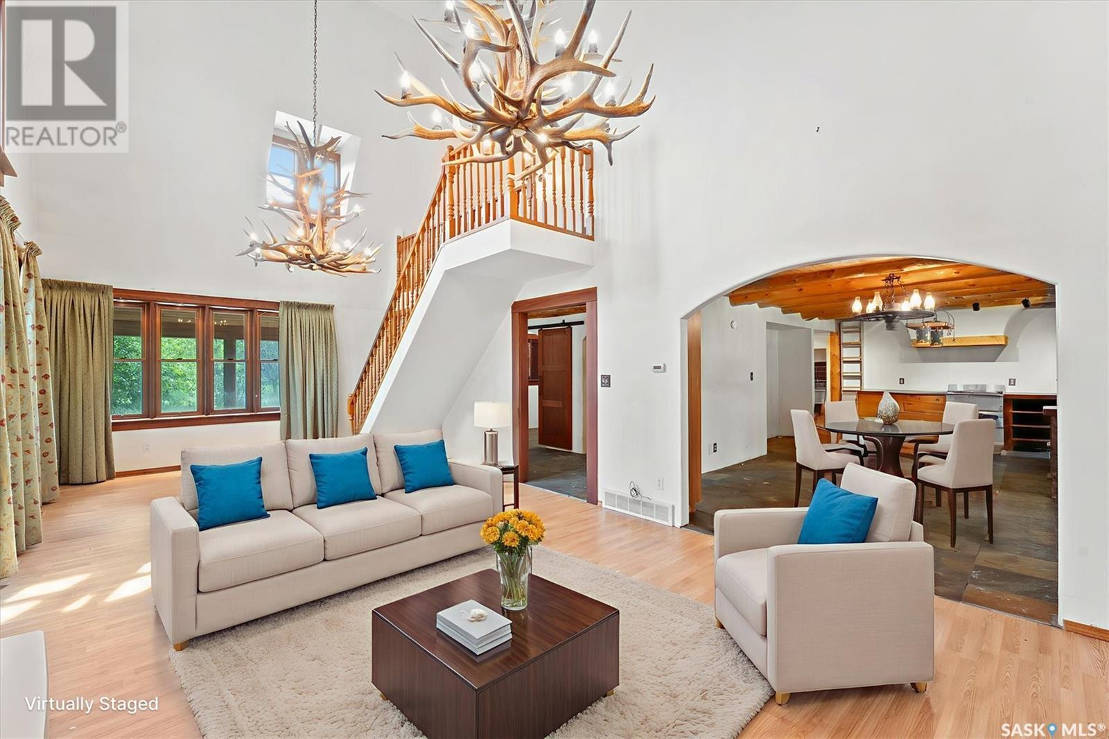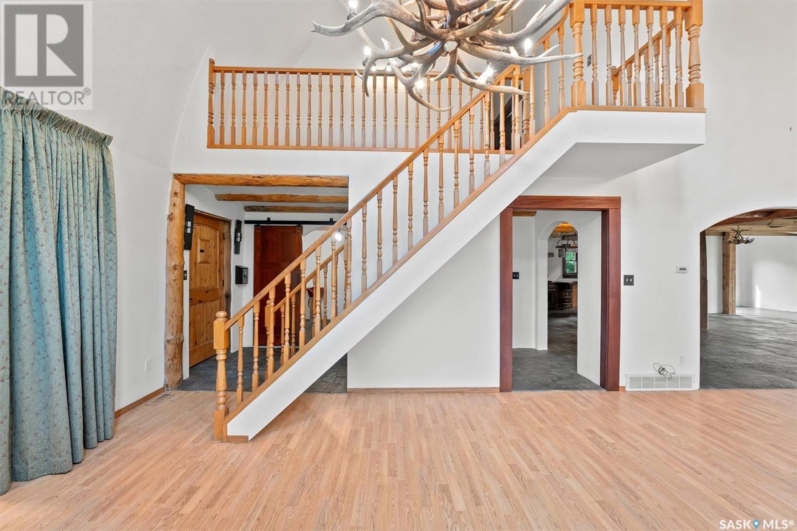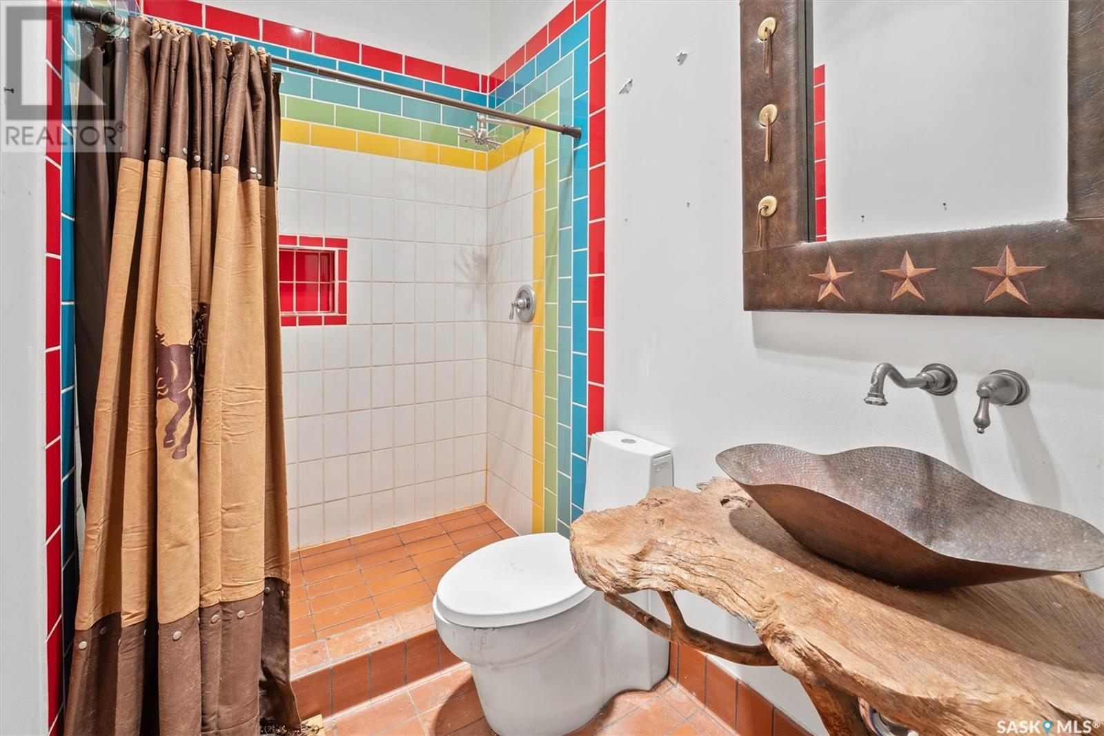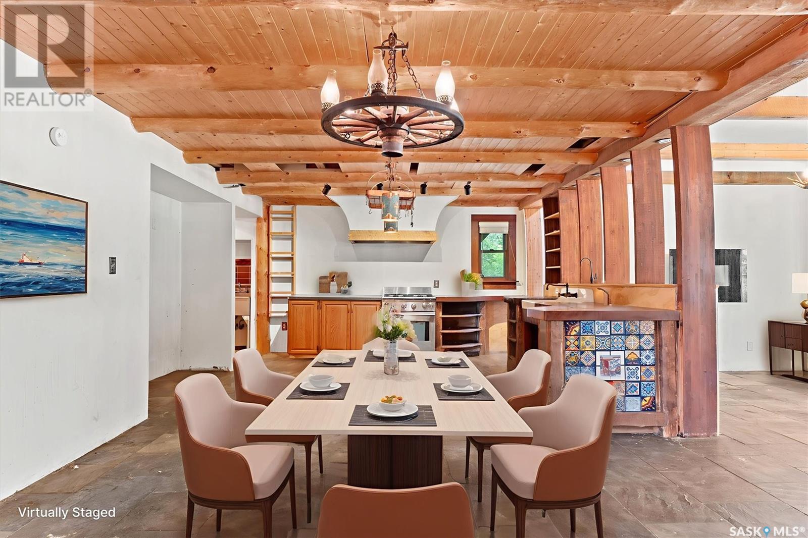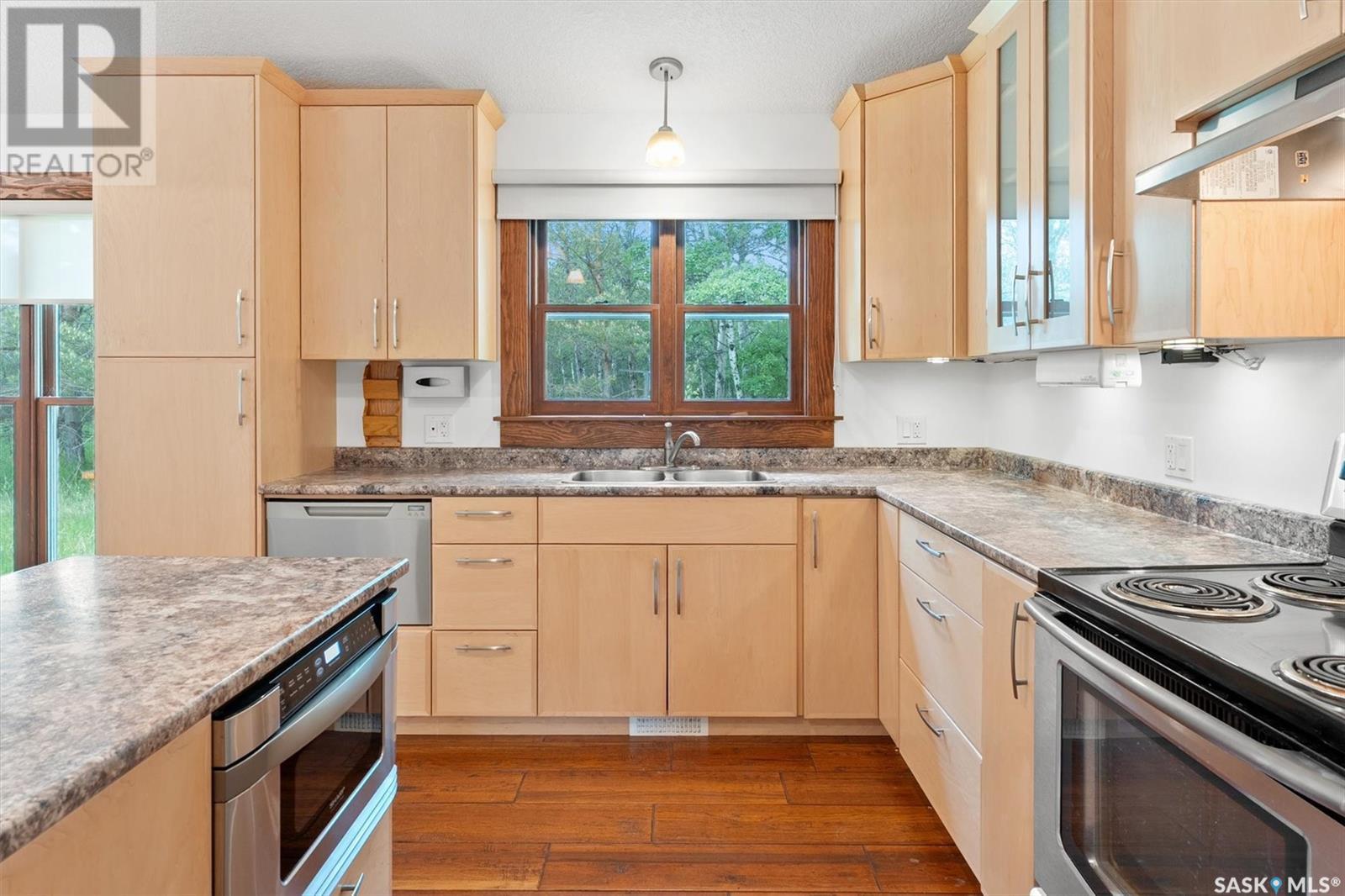 Check out this 21.96 ACRE parcel complete with a ONE-OF-A-KIND archrib style home with attached mother in-law suite; 32 x 36 insulated stable built in 2000; paddocks with shelters; a shelter for feed or equipment storage; and kennels and abundant planted and natural trees. Approx. 14 kilometers SE of Saskatoon. NOTE: the property has been vacant for some time and is being sold 'as is, where is'. The construction quality appears to be excellent in this custom built property. it features Adobe style finishing utilizing many natural products including exposed Douglas fir, cedar accents, rough cut & hand scraped pine, imported tiles from Mexico, custom cabinetry and African Babinga wood. THIS IS TRULY A DISTINCTIVE PROPERTY with Open dining area; two story great room with gas fireplace and very unique light fixtures; primary bedroom with TWO ensuite baths (5 pc bath with bidet & claw foot tub and a 3 pc bath with oversized shower), a gas fireplace, and raised walk-in closet; 2nd bedroom features a 3pc ensuite with a soaker tub and abundant closet space. The bonus room over the garage provides a very generous space for you to let your imagination take over. The attached one bedroom mother-in-law suite with separate entrance plus joining doors is fully equipped. The metal roof was installed in 2011(needs to be completed over the front side of the garage). The water supply was a connection to a high pressure, treated water line ( not drip system ). Out buildings include the 32’ by 36’ insulated stable, 3 stalls, tack and feed room, pine ceiling, 12’x 18’ barn, other animal shelters, a 25’ x 30’ open face feed or equipment storage building plus kennels, garden sheds & paddocks. This property offers many opportunities for the horse enthusiast. Call your real estate professional to view it today! (id:43042)