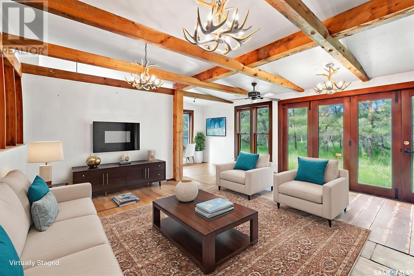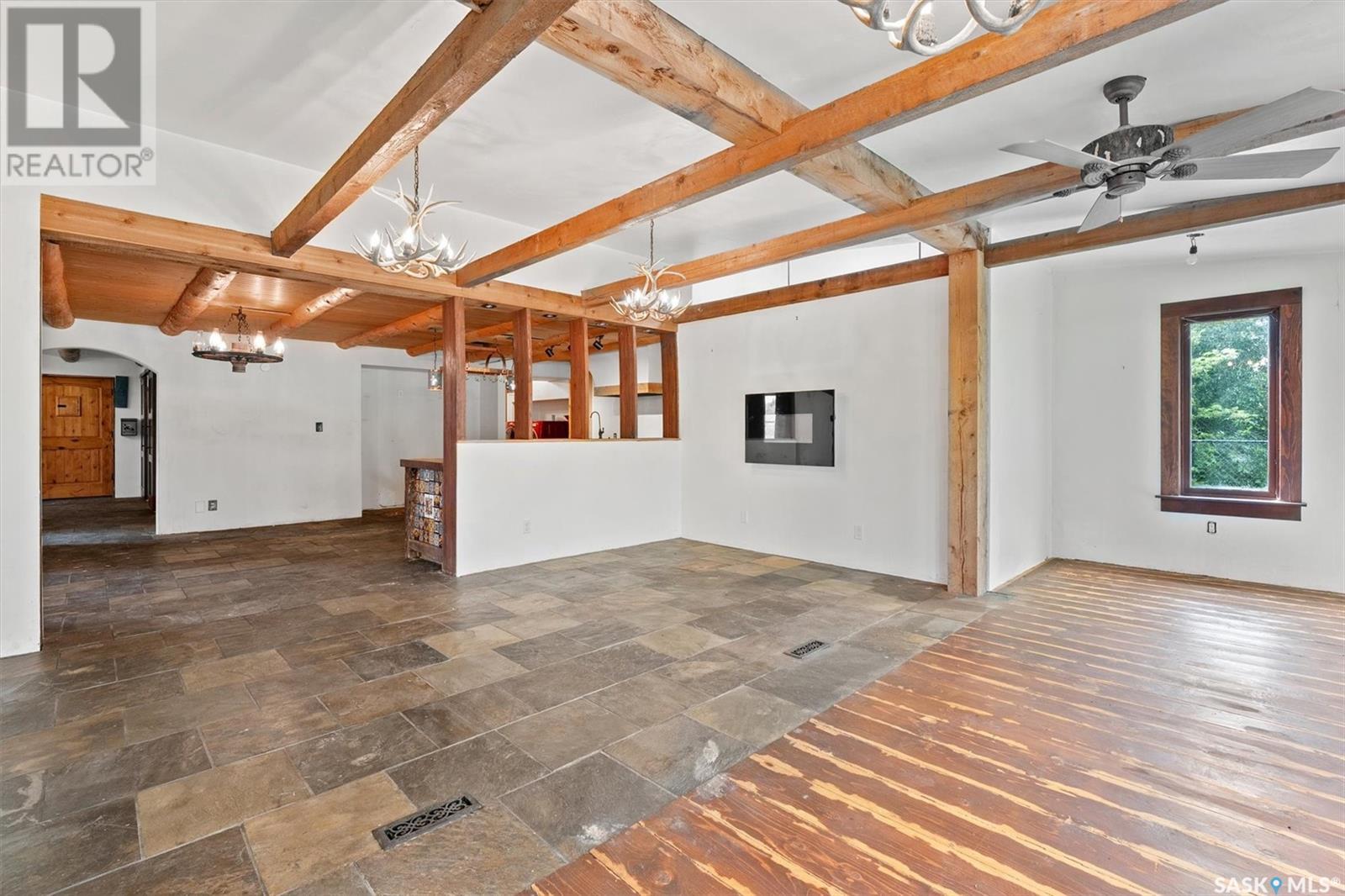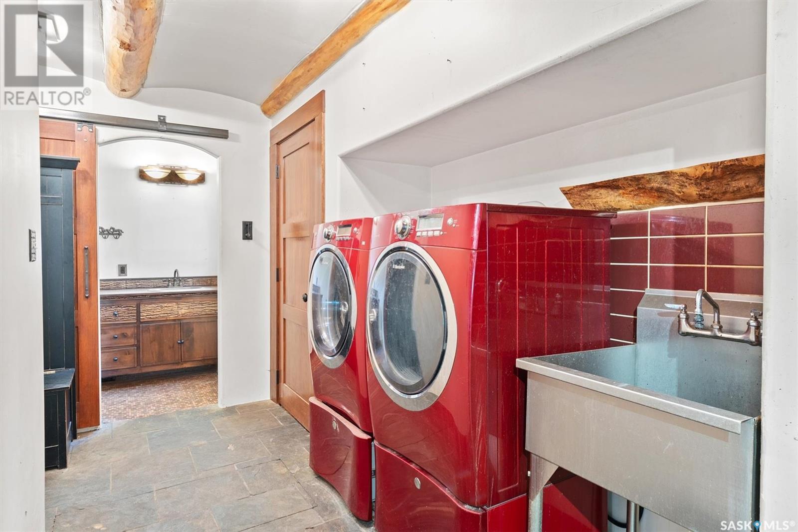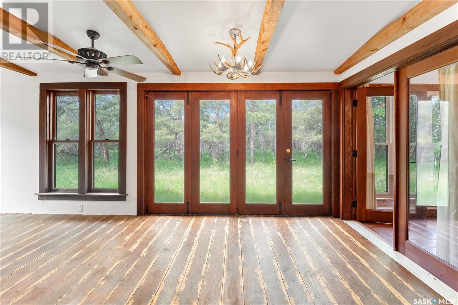 Check out this 21.96 ACRE parcel complete with a ONE-OF-A-KIND archrib style home with attached mother in-law suite; 32 x 36 insulated stable built in 2000; paddocks with shelters; a shelter for feed or equipment storage; and kennels and abundant planted and natural trees. Approx. 14 kilometers SE of Saskatoon. NOTE: the property has been vacant for some time and is being sold 'as is, where is'. The construction quality appears to be excellent in this custom built property. it features Adobe style finishing utilizing many natural products including exposed Douglas fir, cedar accents, rough cut & hand scraped pine, imported tiles from Mexico, custom cabinetry and African Babinga wood. THIS IS TRULY A DISTINCTIVE PROPERTY with Open dining area; two story great room with gas fireplace and very unique light fixtures; primary bedroom with TWO ensuite baths (5 pc bath with bidet & claw foot tub and a 3 pc bath with oversized shower), a gas fireplace, and raised walk-in closet; 2nd bedroom features a 3pc ensuite with a soaker tub and abundant closet space. The bonus room over the garage provides a very generous space for you to let your imagination take over. The attached one bedroom mother-in-law suite with separate entrance plus joining doors is fully equipped. The metal roof was installed in 2011(needs to be completed over the front side of the garage). The water supply was a connection to a high pressure, treated water line ( not drip system ). Out buildings include the 32’ by 36’ insulated stable, 3 stalls, tack and feed room, pine ceiling, 12’x 18’ barn, other animal shelters, a 25’ x 30’ open face feed or equipment storage building plus kennels, garden sheds & paddocks. This property offers many opportunities for the horse enthusiast. Call your real estate professional to view it today! (id:43042)