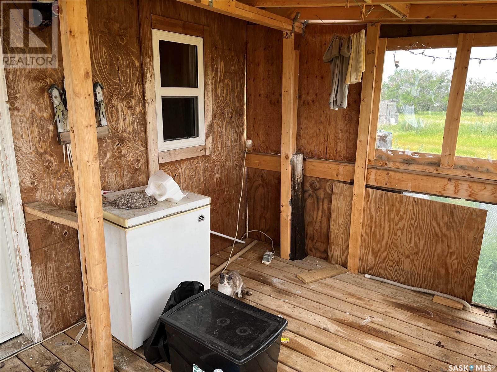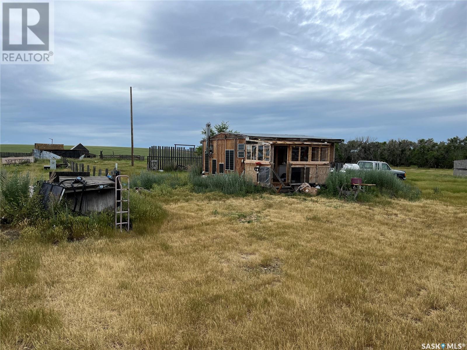 LOOKING TO LIVE OFF THE GRID!! This property situated in the RM of Wood River has 15 acres, an insulated bunkhouse that consist of an on demand water heater, wood fireplace, 100 amp service, sink and shower if you hauled water to use at the property, 12v inverter solar system, propane stove and a couch which folds out to a bed.There are propane tanks included with the property that can be used for heating the bunkhouse, for the on demand water heater and for the stove and as a back up there is power to the house if you would rather use electricity. The property use to be a feedlot and still has some of the fencing and pens still up, there are numerous outbuildings which could be used for storage, water tank to haul water, the is a 40 foot sea container included, and a Craftsman tractor with a snowblower, lawnmower and mulcher attachments. Situated approximately 28 kms southeast of Lafleche, where you can get groceries, fuel, supplies or services such as Health Center, library, pharmacy, banking needs, churches, K-12 school, rinks and much more. Book your private viewing today!! (id:43042)