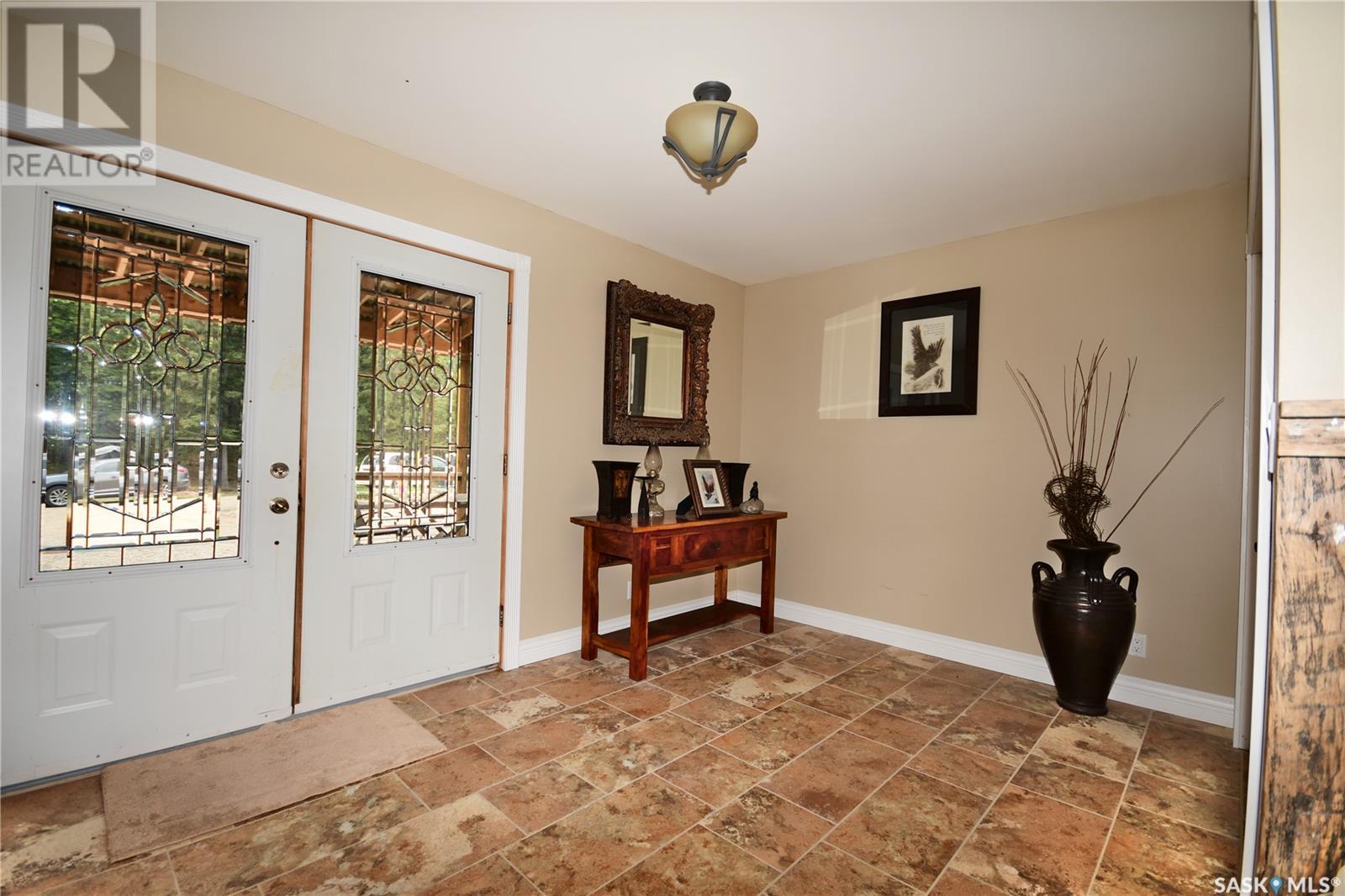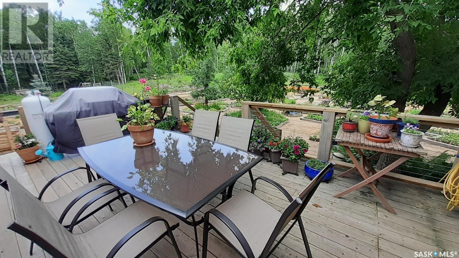 Expansive bungalow boasting over 4500 sq ft on the main level, featuring 5 bedrooms, each with its own ensuite bathroom, plus 2 additional bathrooms. This charming home includes a luxurious Chef’s kitchen, an inviting In-Law Suite, and Owner’s Quarters of equal elegance. The original home was built in 1989, with seamless additions of 2000 sq ft added in 2010, and another 1100 sq ft added in 2022. Nestled amidst serene forest surroundings, this retreat sits just 1.8 km from pavement on 154 acres, close to lakes, recreational attractions, and the vibrant Resort Town of Big River. A stone fireplace warms up to 2000 sq ft, complemented by wood and propane furnaces, with Generex power backup in place. Whether for a large family, business endeavor, or personal sanctuary, this home fulfills every need. The open basement awaits minimal finishing touches to create a separate suite with private access. The 800 sq ft in-law suite offers double vanity sinks, an age-friendly shower and toilet, laundry facilities, a kitchenette, and a scenic backyard view. Covered decks at the front and back enhance entertaining possibilities, while a water filtration system ensures pristine drinking water. The Chef’s Dream kitchen boasts double ovens, ample fridge and freezer space, expansive countertops, and abundant storage, complemented by outdoor perennials, fruit trees, and vegetable gardens. Details regarding the sturdy construction and excellent insulation, as well as outbuildings like a chicken coop and work shed, are available upon request for serious, pre-qualified buyers. Viewings require reasonable advance notice and promise to impress! (id:43042)