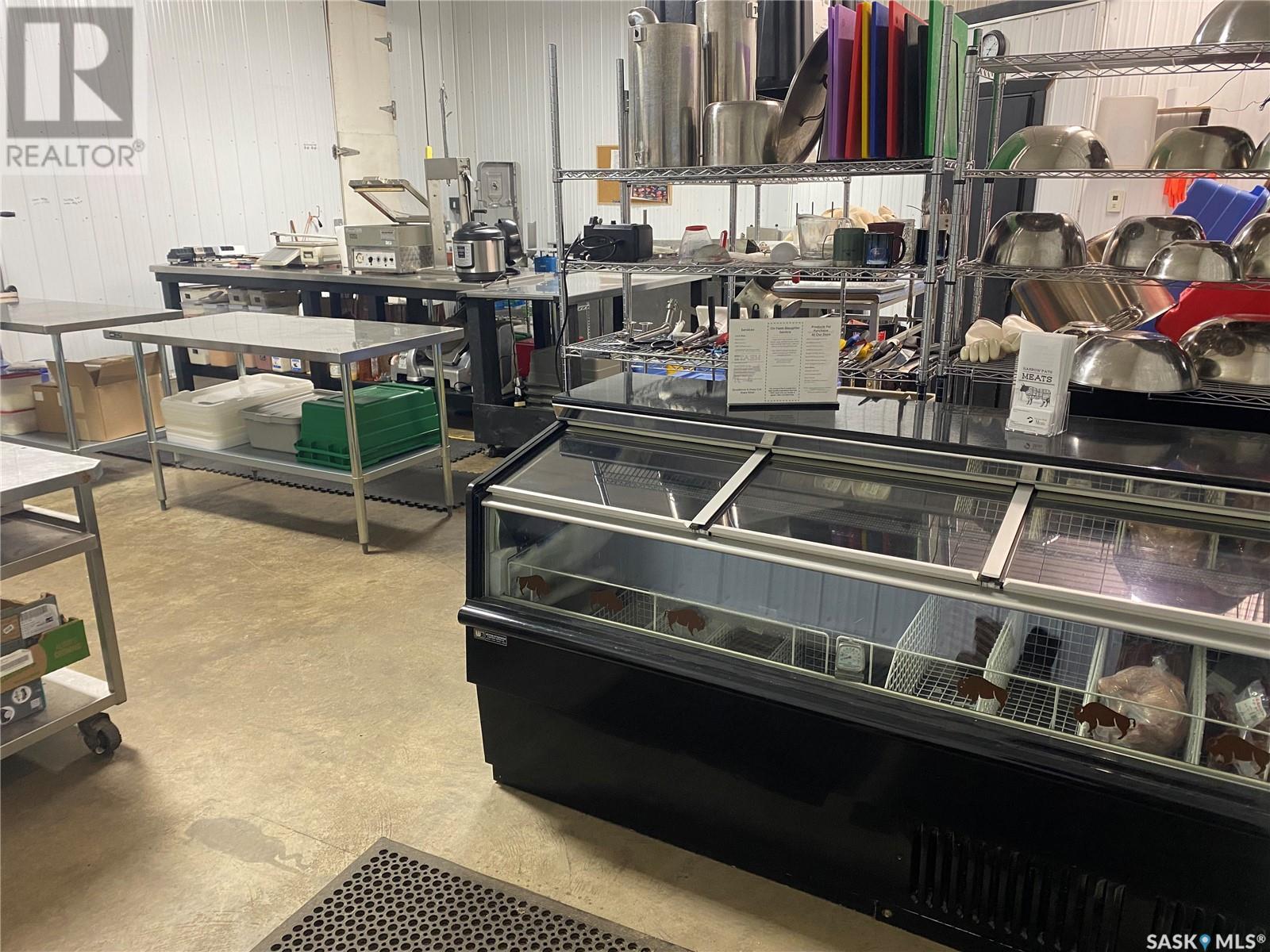 Located just 1 hour from North Battleford and 15 minutes from Glaslyn, this exceptional commercial property offers an incredible opportunity to step into a fully operational and well-established butcher shop. With everything you need to hit the ground running, this property is truly a turn-key investment! The butcher shop itself is a spacious 1,920 sq. ft. (32' x 60') building situated on a solid 6" concrete pad with in-floor heating, ensuring consistent warmth and comfort. Built to last, the structure features 2x6 studs every 16 inches, doubled-up rafters also spaced 16 inches apart, and a 3/4 inch plywood-sheathed tin roof for maximum durability. Spray foam insulation ensures excellent energy efficiency. The butcher shop is equipped with a 14' x 9' walk-in freezer and a 34-foot-long L-shaped cooler capable of holding approximately 20 animals. A $12,000 rail system is in place, complete with a switch track, inline digital scale, two winches, unloading dock, and a dedicated cutting room. The property also comes with a comprehensive equipment package available upon request. Beyond the butcher shop, the property includes a spacious 48' x 48' heated mechanic shop with a mezzanine, ideal for additional revenue streams or personal use. A comfortable four-level split home is also located on the property, making it an ideal residence for owners or on-site staff. Ample cold storage is available as well, ensuring sufficient space for inventory or supplies. This property offers unmatched versatility with income potential from multiple revenue streams. Whether you’re a butcher by trade or an entrepreneur seeking a profitable investment, this property is fully equipped to support your success. Don’t miss out on this fantastic opportunity to own a proven business with room for expansion. Contact us today for a private tour! (id:43042)