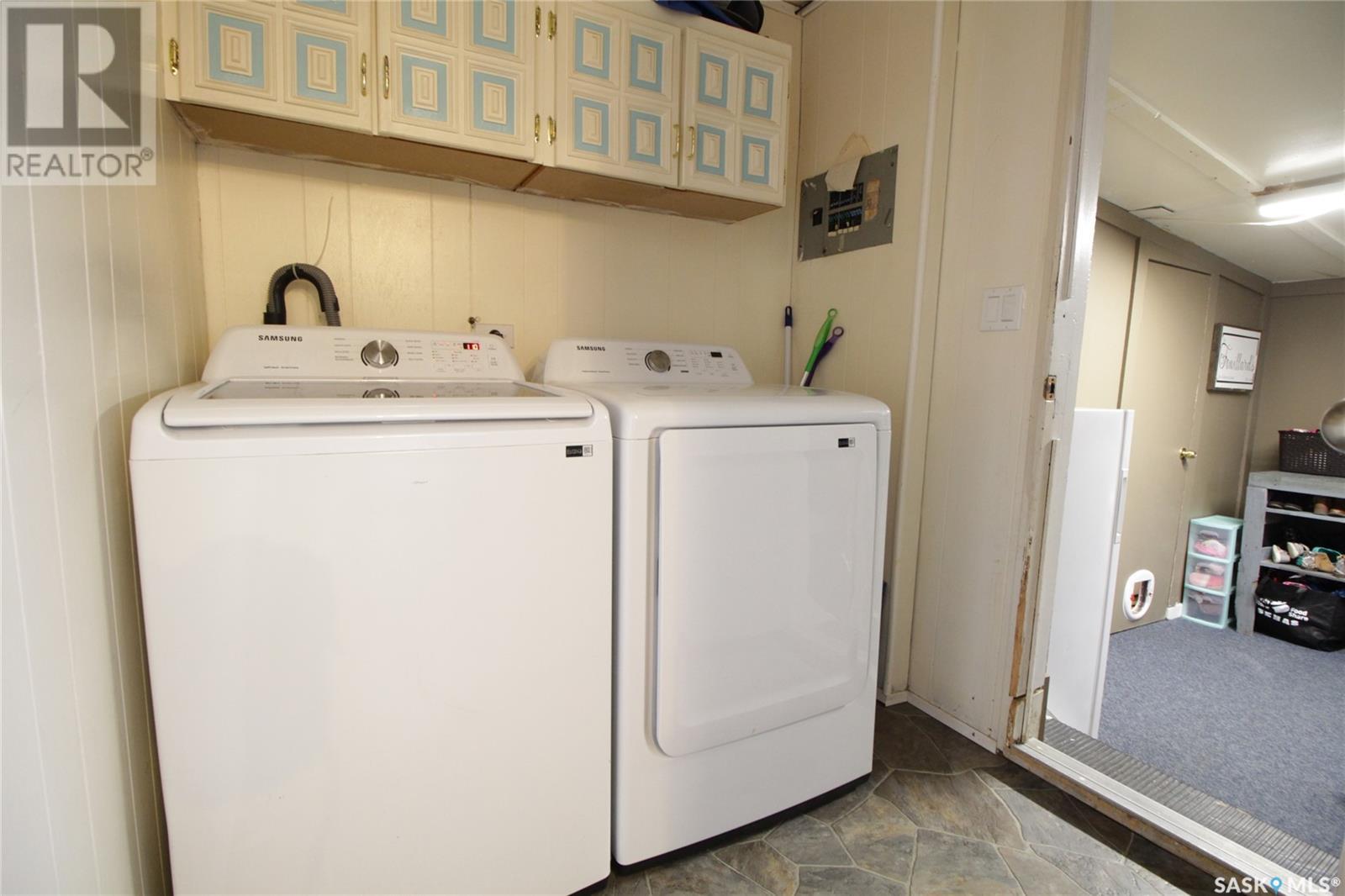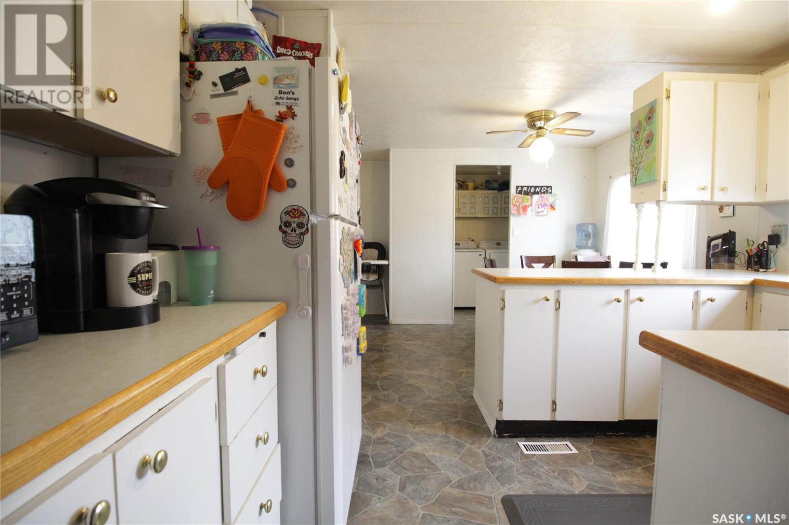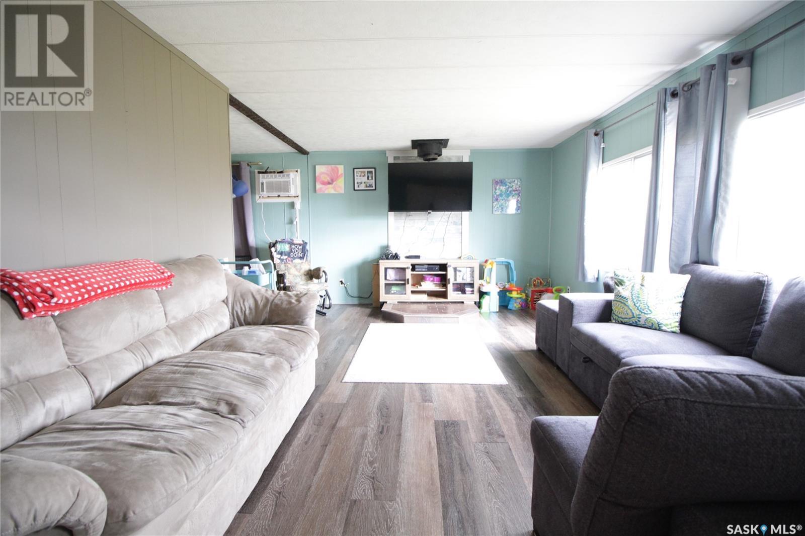 This acreage is in the perfect spot; just 4 kms west of Moosomin! Step inside to find a huge entrance that leads up into the laundry area and to the bright eat-in kitchen! You'll be amazed with how much storage space is in this kitchen!! Through the kitchen you'll find the formal dining area and spacious living room! A 4pc bathroom, 3 bedrooms, one of which is the master bedroom with 2 pc ensuite, complete this move-in ready home! The yard offers lots of mature trees, space for a garage or outbuilding, patio area, and 2-30 amp plugs! This location can't be beat; if you're looking to build, this is the spot!! BONUSES INCLUDE: updated shingles, furnace, flooring in some rooms, and portable a/c. Call today to view! (id:43042)