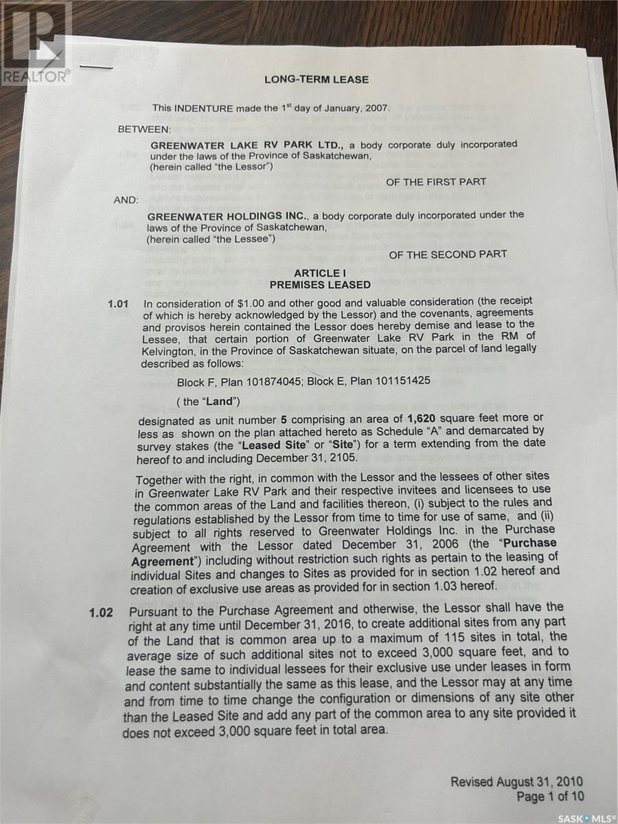 *Camper not included* Looking for a spot to park your home away from home for the year? Greenwater Lake is the place for you. This leased lot comes with power, water and sewer. Partially fenced 1600 square foot lot comes with decks and ready for you to pull your camper up and park and walk onto your deck for some relaxation. Previously there was a 34 foot camper with 3 slides so there is plenty of space for a large RV. This lot wont last long so give me a call to book a showing today! (id:43042)