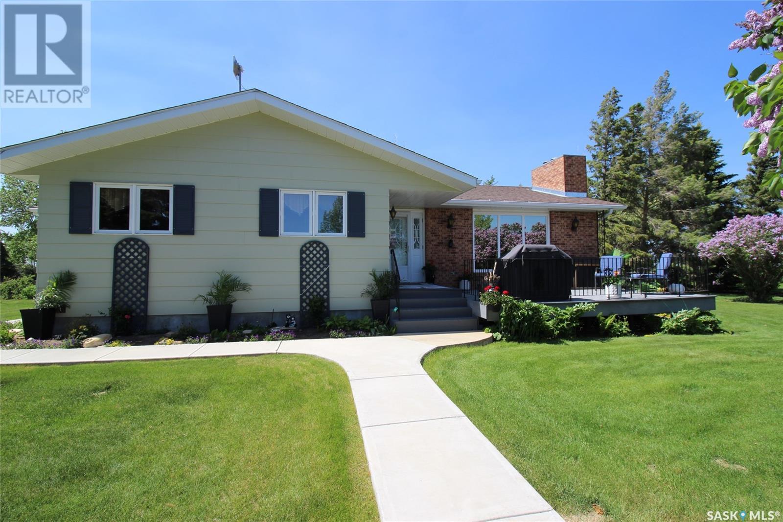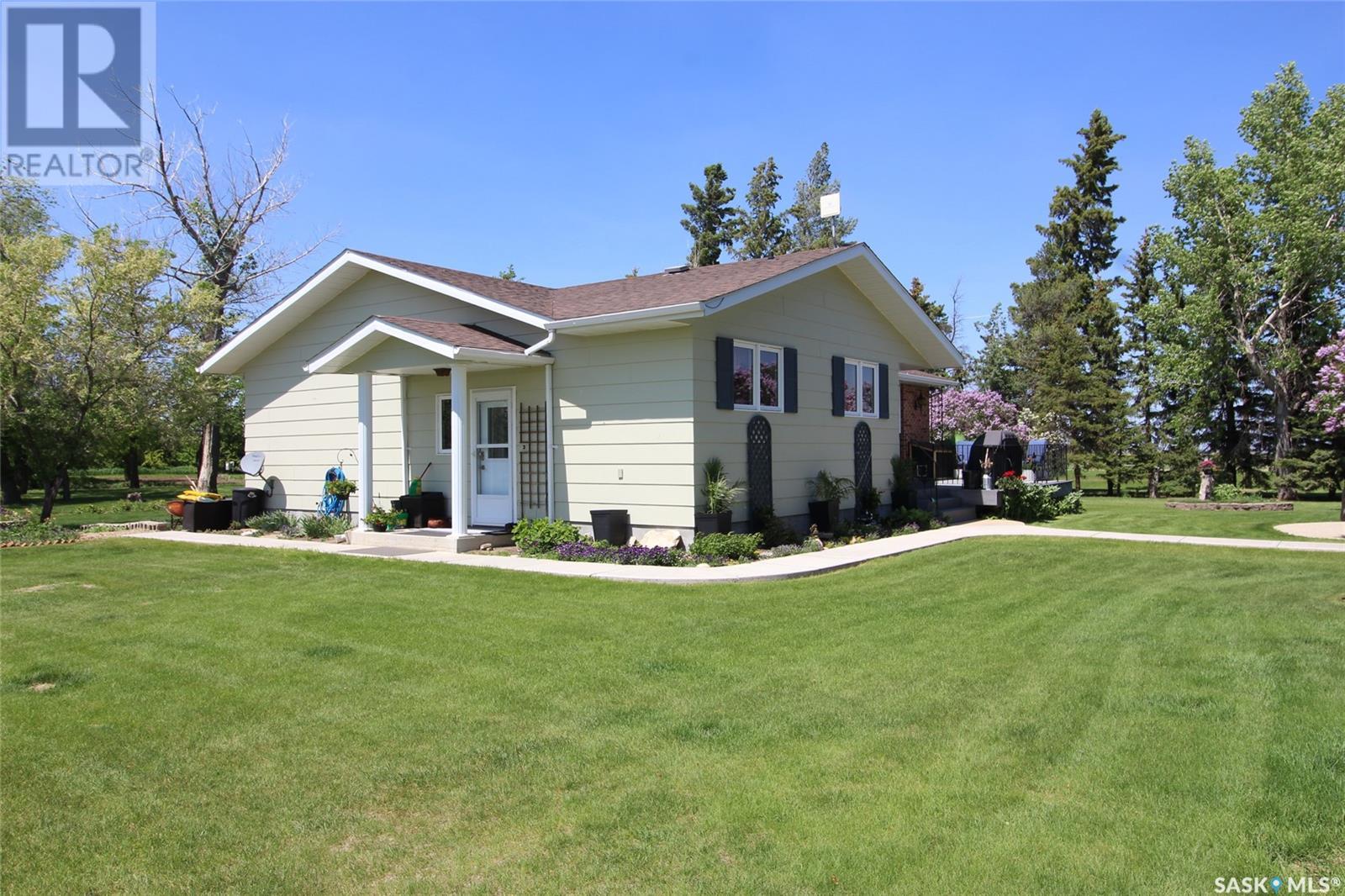 Executive Acreage for sale between Shaunavon and Gull Lake. This is the ideal acreage, equidistant between two thriving communities and 4.5KM off the main highway, this established property has been improved by the seller. The home is a huge 1383sq’ with all the right updates. The home has a large kitchen with solid oak cabinets and updated appliances and new counter tops. The dining room is adjacent to the patio doors to the sunny East facing deck. The living room is giant and features a wood burning fireplace. There are two bedrooms on the main level, both have walk in closet space and seriously gorgeous 3pc ensuites. The main floor laundry is about to have the flooring updated to ceramic tile so it coordinates with the bathroom floors. The lower level has an outstanding family room with space for pool table or home gym and also features a wood burning fireplace. Lower level has a bonus room, currently used as a guest room and a full 3pc bath and an oversized storage room. The outbuildings include a large shop with concrete, that is wired 110/240, complete with workbench. The double car garage is lined and insulated with storage for tools. The third building on the property doubles as a well house and chicken coop. A huge garden area is ready for this year’s crop with a thornless raspberry patch established. The property has two wells on the site so one can be dedicated to the garden space. The seller has been careful to tend the established perennial beds and have trimmed some of the trees in the yard. A good mixture of pine and hardy trees line the perimeter providing a perfect wind break. No stone left unturned on this property; you will appreciate the seller’s attention to detail leaving you to enjoy this space for years to come. Tractor, Zero-Turn Mower and SeaCan Storage Unit negotiable. (id:43042)