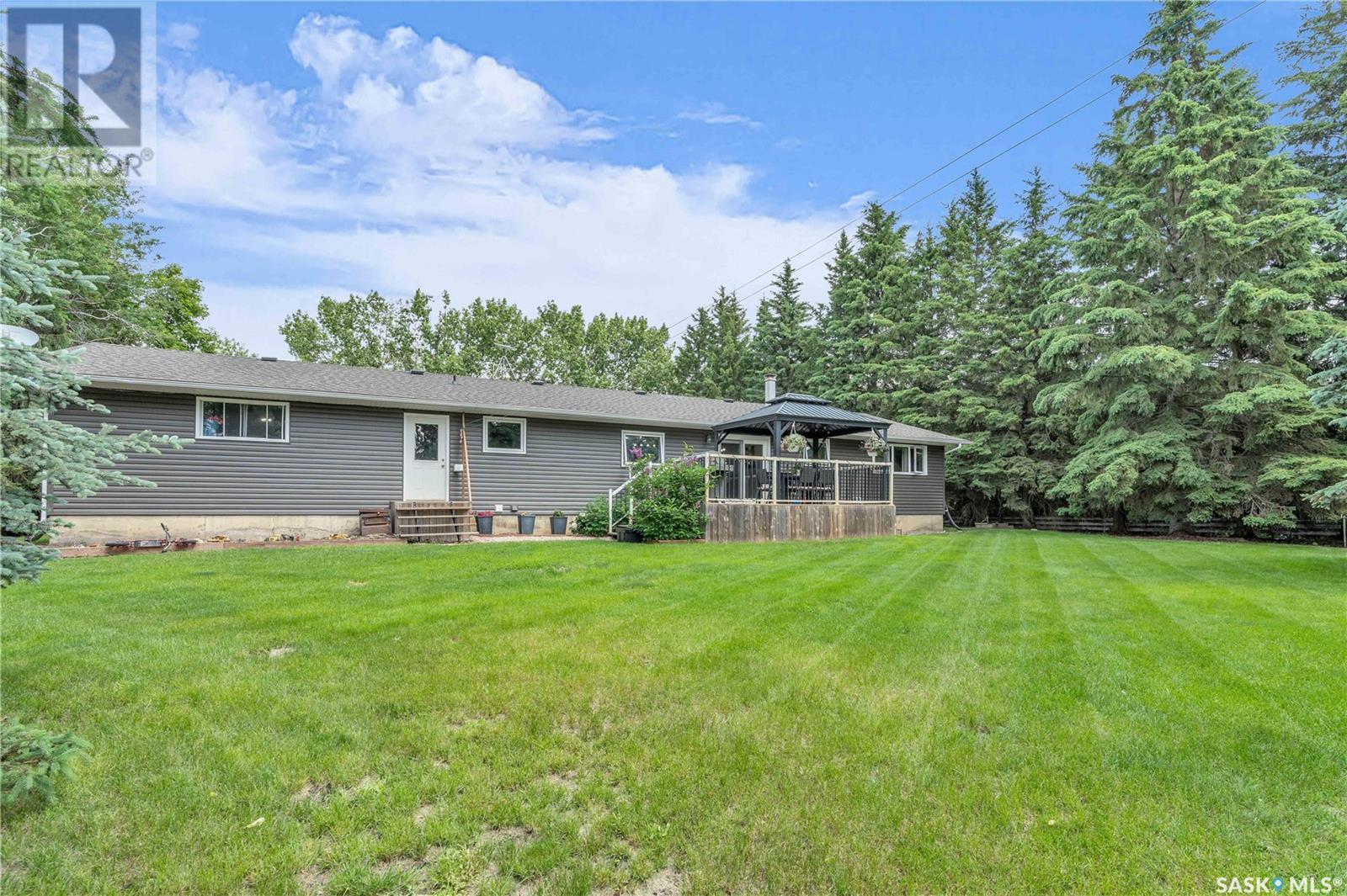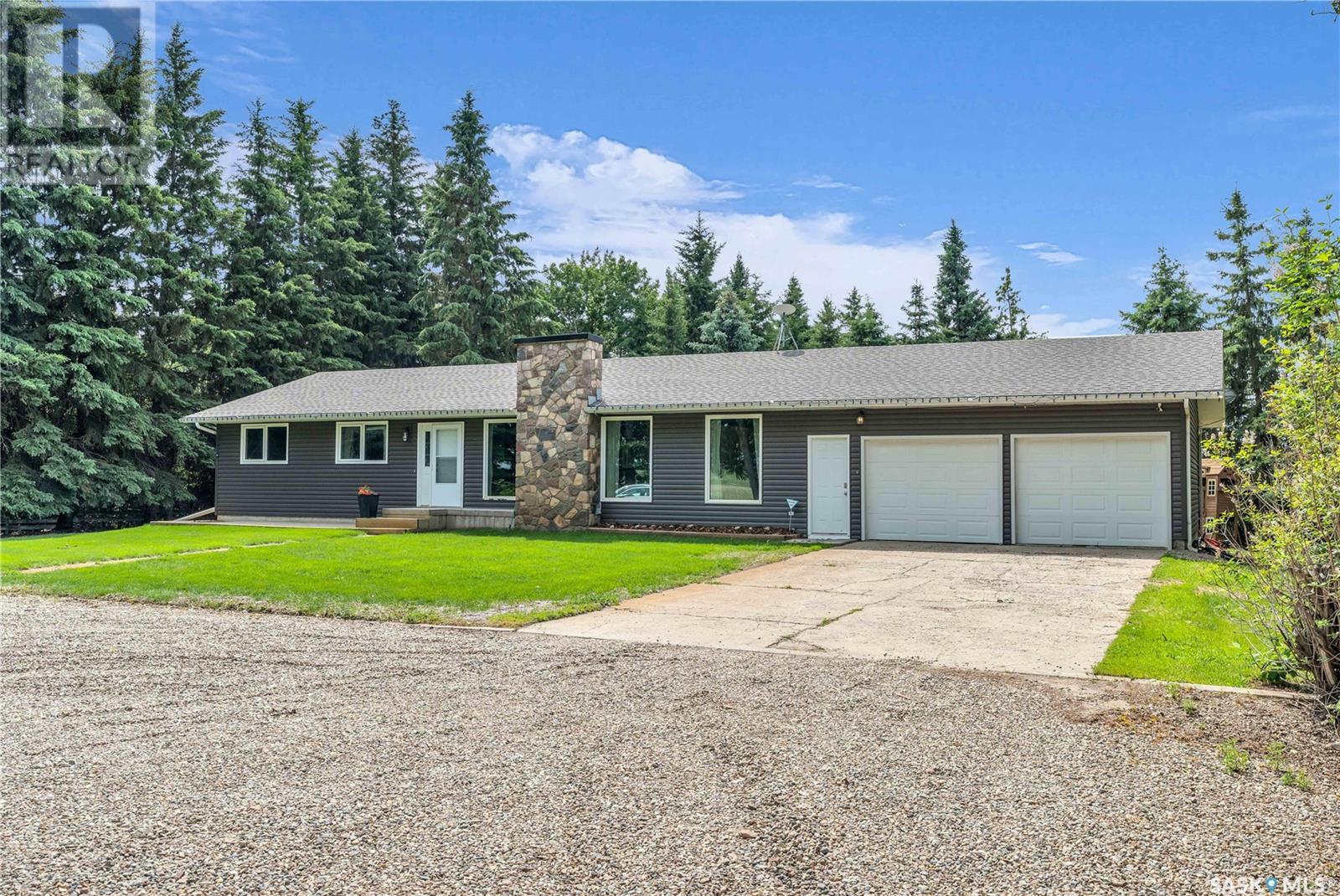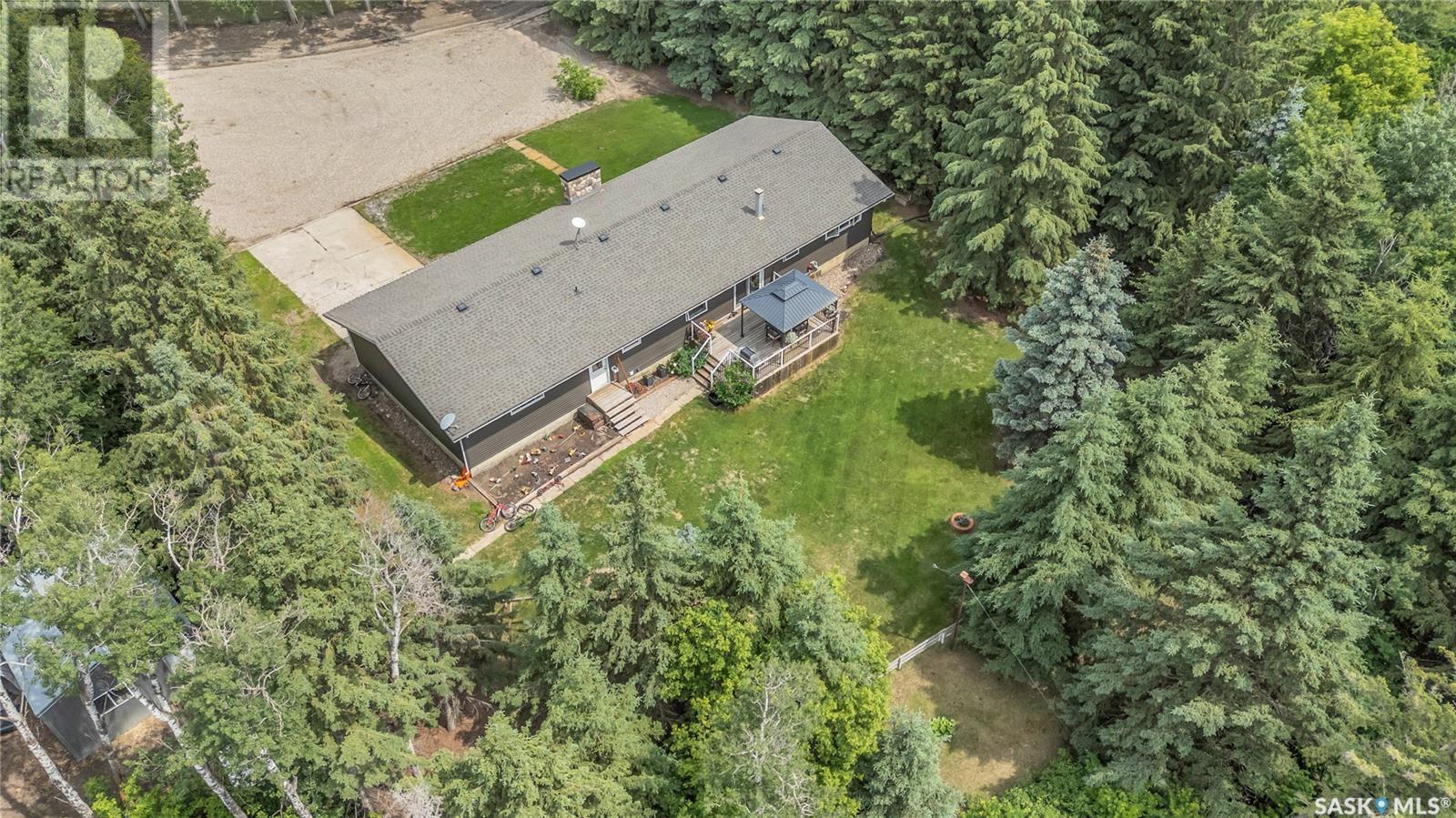 Welcome to this exceptional country property located just 20 minutes from North Battleford. Situated on a full quarter section with approximately 120 cultivated acres currently leased, this property offers a rare combination of peaceful rural living with built-in income potential. The established yard site is almost 100 years old, showcasing mature trees, privacy, and a truly beautiful natural setting that backs onto a quiet pond. The main residence is a sprawling, well-maintained 1,680 sqft bungalow, featuring four bedrooms, four bathrooms and a brand new renovated kitchen. The home offers a bright and functional layout with an open kitchen finished in custom hickory cabinetry, a spacious dining area, and a cozy living room centered around a stone fireplace. The fully developed basement includes a Dry Core subfloor and provides excellent additional living space. Significant updates include new siding, soffit, and fascia, shingles replaced in 2017, and all windows and doors updated in 2007. The furnace and ductwork were cleaned in 2025. Additional features include water softener, a two-car attached garage, and a large deck with railing and gazebo. A second home, located on the property and built in 1920, is currently rented and includes its own well and a single-car garage, adding further rental income opportunities. Both homes are serviced with natural gas and private wells. The property also includes a workshop, outbuildings, and several extras such as an older John Deere tractor and zero-turn mower, which will remain. With a peaceful location off the main road, income-producing farmland, a rental home, and a private, treed yard, this property is ideal for those seeking a country lifestyle with added value. Don't miss this rare opportunity to live the good life in the country. Call your agent today to schedule your showing today! (id:43042)