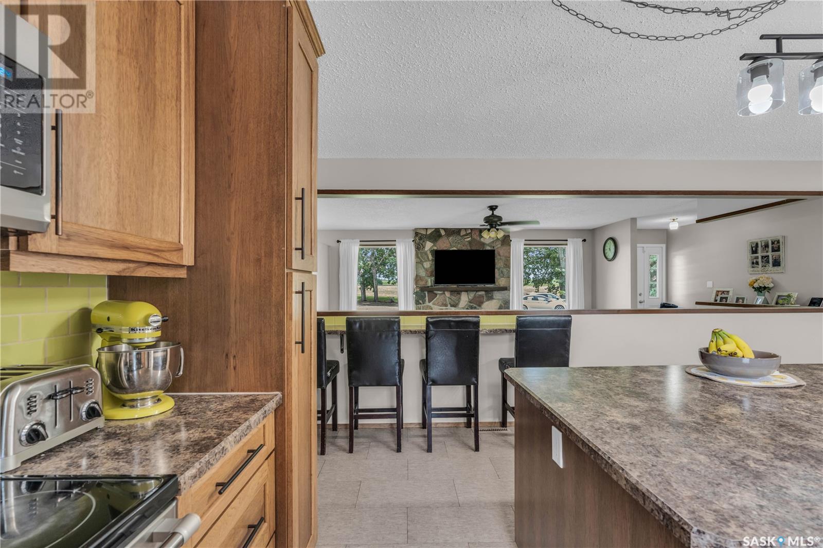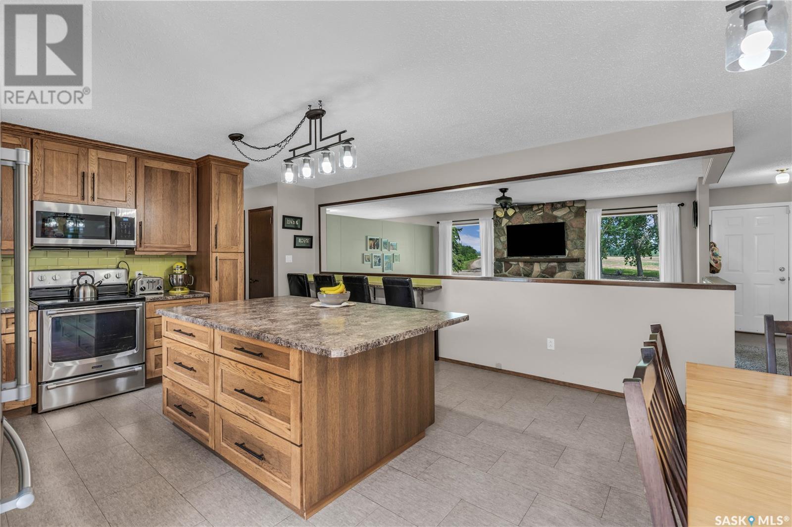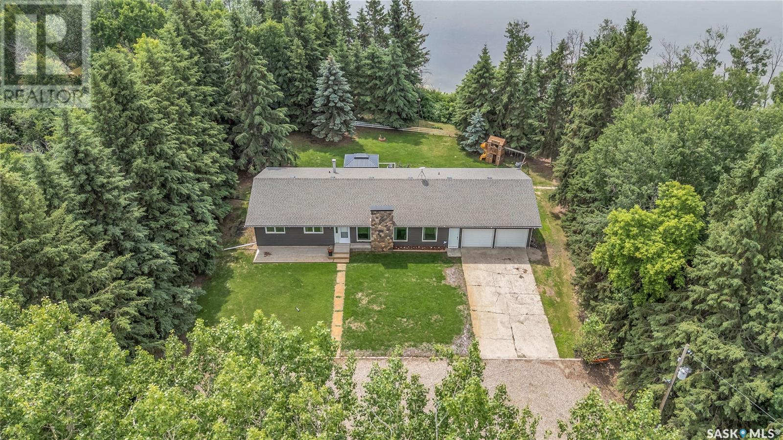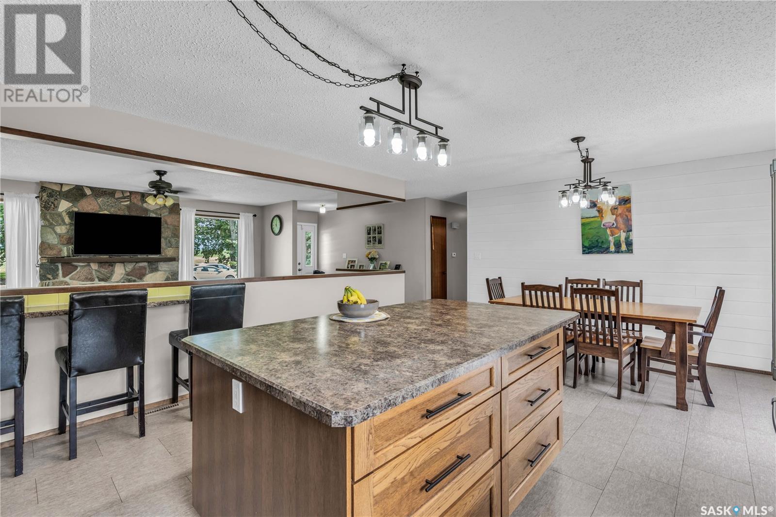 Welcome to this exceptional country property located just 20 minutes from North Battleford. Situated on a full quarter section with approximately 120 cultivated acres currently leased, this property offers a rare combination of peaceful rural living with built-in income potential. The established yard site is almost 100 years old, showcasing mature trees, privacy, and a truly beautiful natural setting that backs onto a quiet pond. The main residence is a sprawling, well-maintained 1,680 sqft bungalow, featuring four bedrooms, four bathrooms and a brand new renovated kitchen. The home offers a bright and functional layout with an open kitchen finished in custom hickory cabinetry, a spacious dining area, and a cozy living room centered around a stone fireplace. The fully developed basement includes a Dry Core subfloor and provides excellent additional living space. Significant updates include new siding, soffit, and fascia, shingles replaced in 2017, and all windows and doors updated in 2007. The furnace and ductwork were cleaned in 2025. Additional features include water softener, a two-car attached garage, and a large deck with railing and gazebo. A second home, located on the property and built in 1920, is currently rented and includes its own well and a single-car garage, adding further rental income opportunities. Both homes are serviced with natural gas and private wells. The property also includes a workshop, outbuildings, and several extras such as an older John Deere tractor and zero-turn mower, which will remain. With a peaceful location off the main road, income-producing farmland, a rental home, and a private, treed yard, this property is ideal for those seeking a country lifestyle with added value. Don't miss this rare opportunity to live the good life in the country. Call your agent today to schedule your showing today! (id:43042)