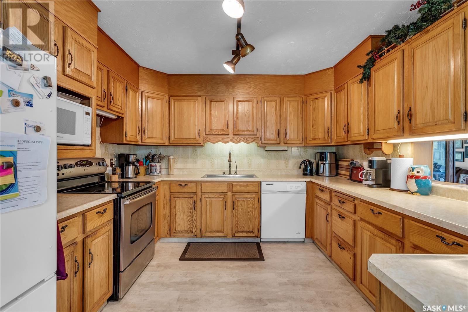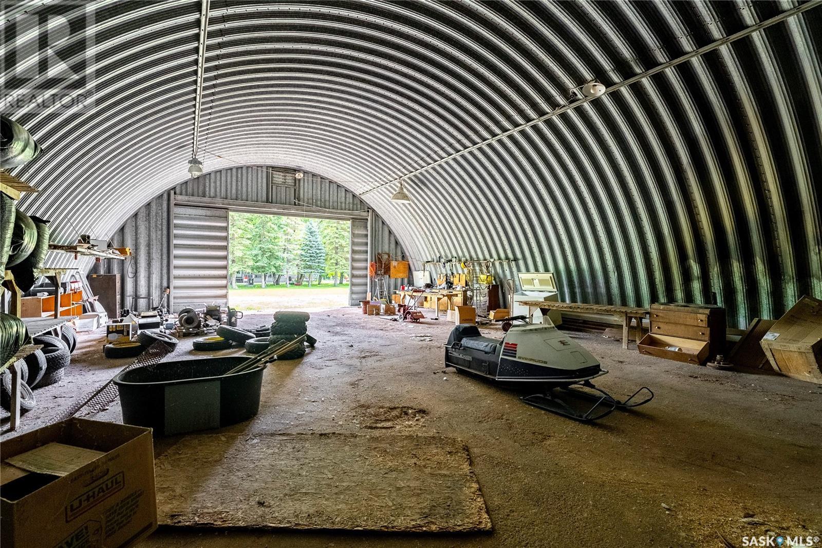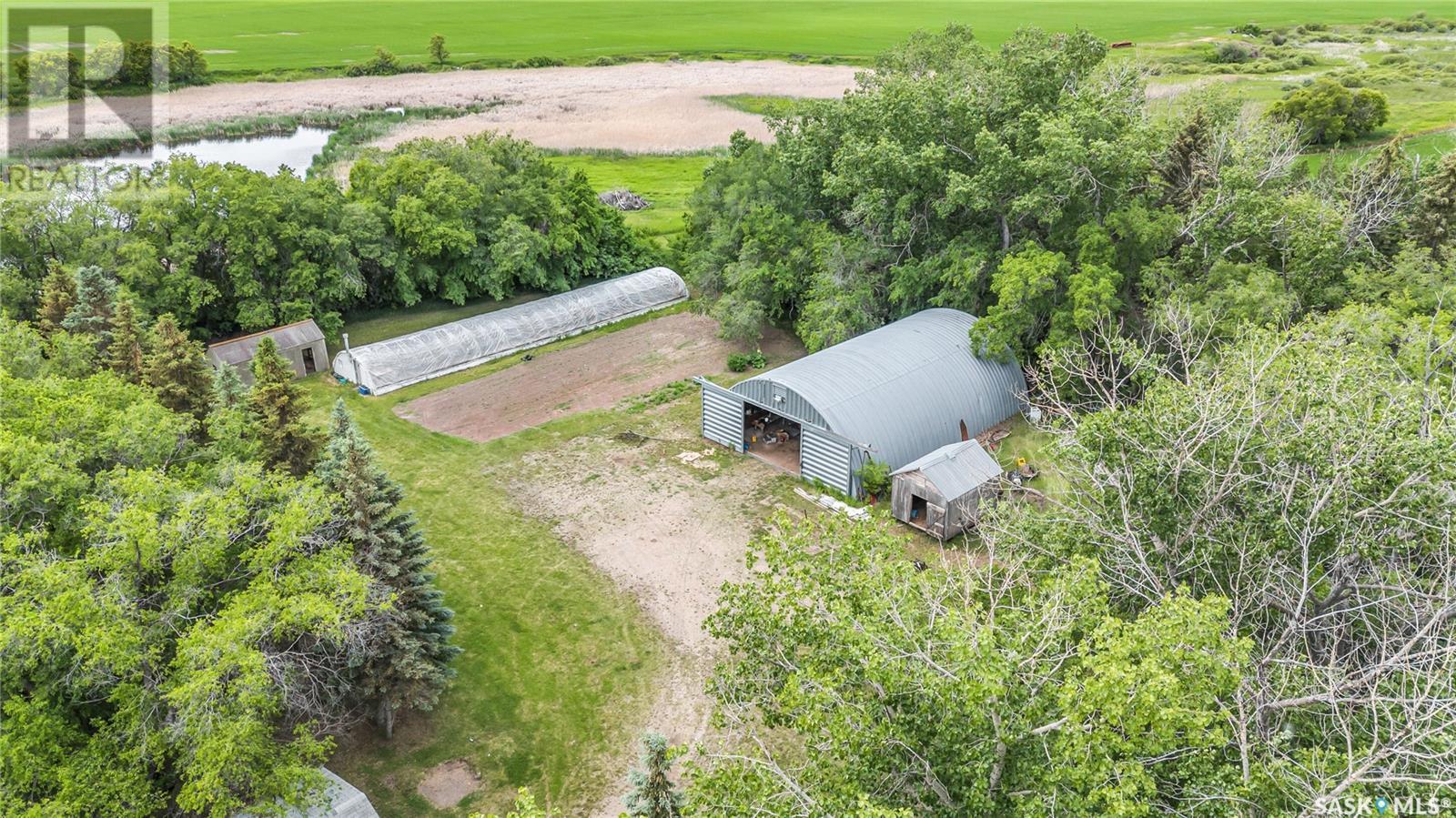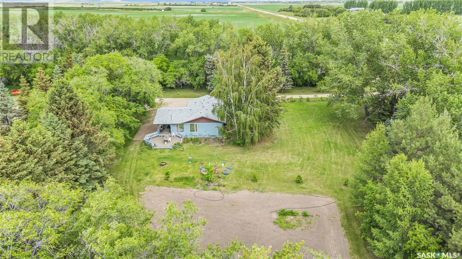 A great place to call home in this picturesque park-like setting just south of Imperial, SK on Highway #2. This expansive yard boasts a charming 1,437 square foot bungalow, providing a cozy and inviting living space. Inside, you'll find two bedrooms on the main floor, complemented by a spacious U-shaped kitchen, a separate designated dining area, and a large living room that offers plenty of space for relaxation and entertaining. The basement features a large enclosed family room, an open-area game room, 3rd bedroom, a convenient laundry area, a 2-piece bathroom and ample storage space. Step outside onto the generous covered deck and enjoy peaceful mornings or serene evenings overlooking the beautiful landscaped yard. The 30'x40' heated workshop is a haven for mechanics, equipped with an in-floor hoist and two overhead doors, making it ideal for projects and hobbies year-round. Additionally, the 40'x60' steel Quonset provides ample year-round storage for vehicles and equipment, offering versatility and convenience. For those with a passion for gardening, the greenhouse offers a perfect environment to start plants early and extend the growing season. A chicken coop with an enclosed fenced compound to protect your feathered birds. This property combines the tranquility of rural living with modern comforts and practical amenities, presenting an exceptional opportunity to embrace a lifestyle enriched by nature and convenience. Whether you're looking to cultivate your garden, indulge in workshop hobbies, or simply appreciate the beauty of your surroundings, this home offers everything you need for comfort and enjoyment. (id:43042)