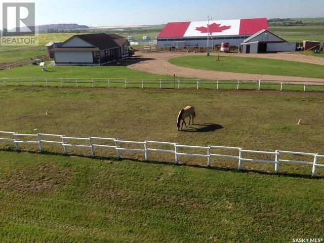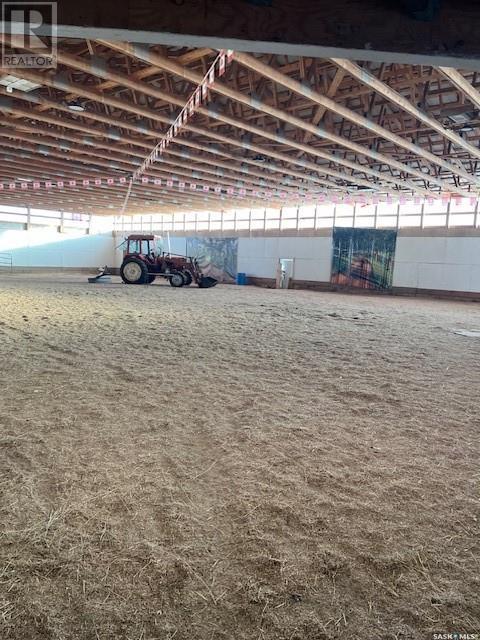 125 acres just minutes west of Saskatoon with 1365 sq.ft. bungalow built in 1994. 23 x 24 heated shop complete with 3 overhead doors, older barn full of box stalls and the true feature - a 90 x 100 like new indoor riding arena. Totall developed with multiple box stalls, tack room and upper level announcer booth. Mulitple outdoor pens with shelters and water hydrant. Note: This property has city water. Call today to book your personal viewing! (id:43042)