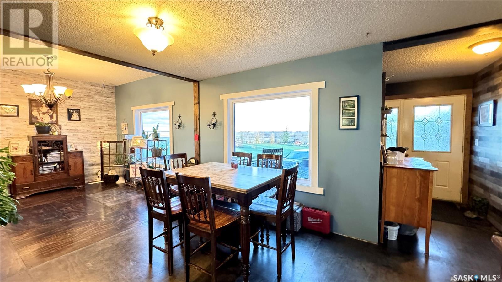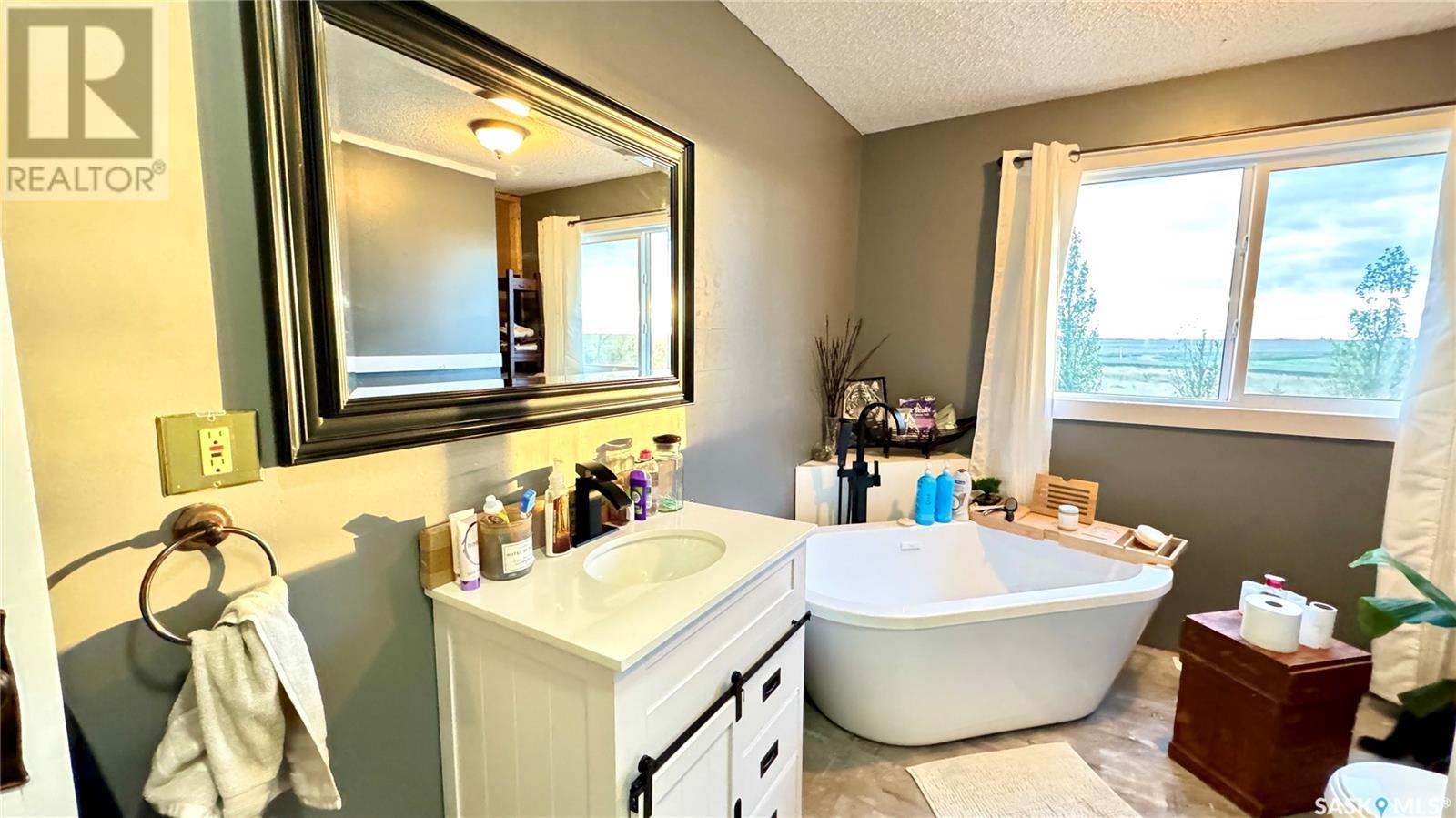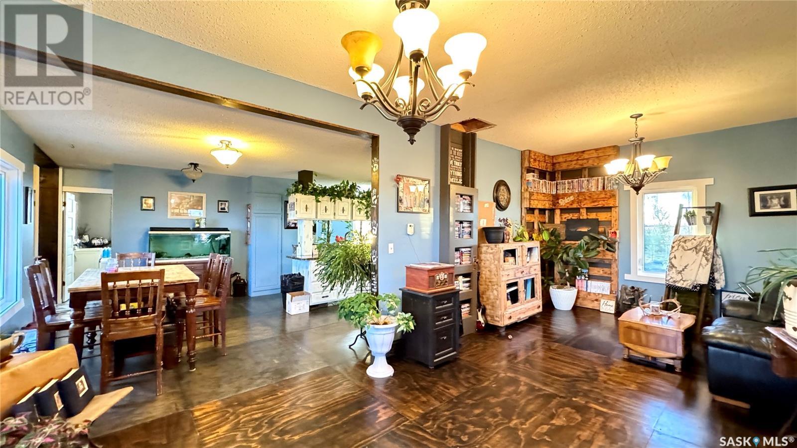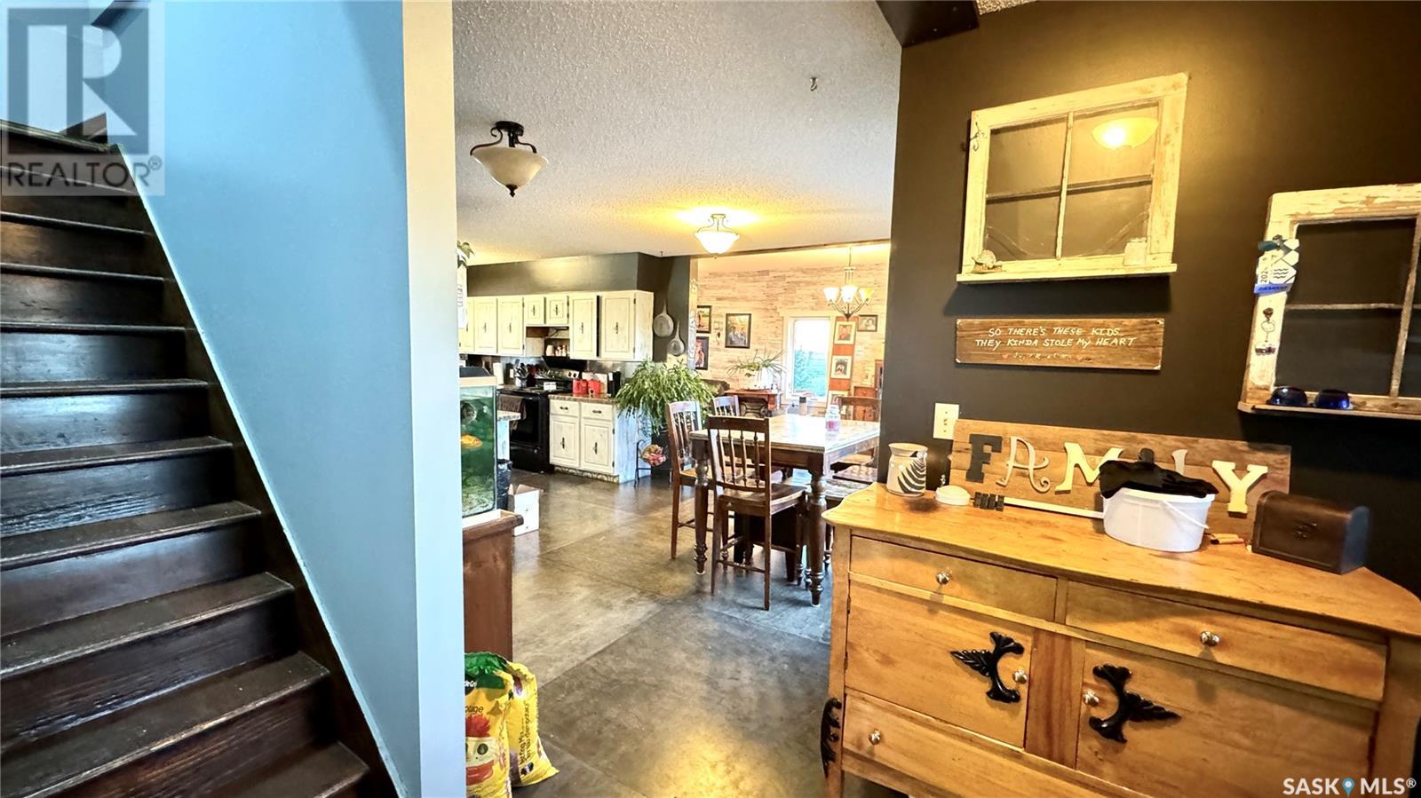 Located just 3.5 miles east of STRONGFIELD, SK, this 10-acre acreage offers modern comforts and COUNTRY CHARM, including MUNICIPAL WATER service. The 2,140 sq ft home, originally built in 1925 with a 1975 addition, was relocated in 2013 to its current location on a treated wood basement. With 6 bedrooms and 3 full bathrooms, this spacious home is perfect for families. The main floor features the master bedroom, a beautifully renovated bathroom with a free-standing soaker tub, an open-concept kitchen, dining, and living area, and the convenience of MAIN FLOOR LAUNDRY. Upstairs, there are 3 additional bedrooms and a full bathroom, while the basement includes 2 bedrooms, a large utility room, a combined rec room and family room, and plenty of storage. Recent updates include new triple-pane windows (2024), providing energy efficiency and abundant natural light. Outside, a 1,064 sq ft wrap-around deck offers plenty of space to relax and entertain while enjoying the peaceful surroundings. The property includes a few outbuildings, ideal for animals, and a dugout for watering animals, the lawn, and the garden. Plus, LAKE DIEFENBAKER is just 20 miles south on Highway 19, perfect for weekend lake getaways. This serene acreage combines space, comfort, and modern amenities. Don’t miss your chance to make it your own! Directions: 3.5 miles east of Strongfield, SK off of HWY 19. (id:43042)