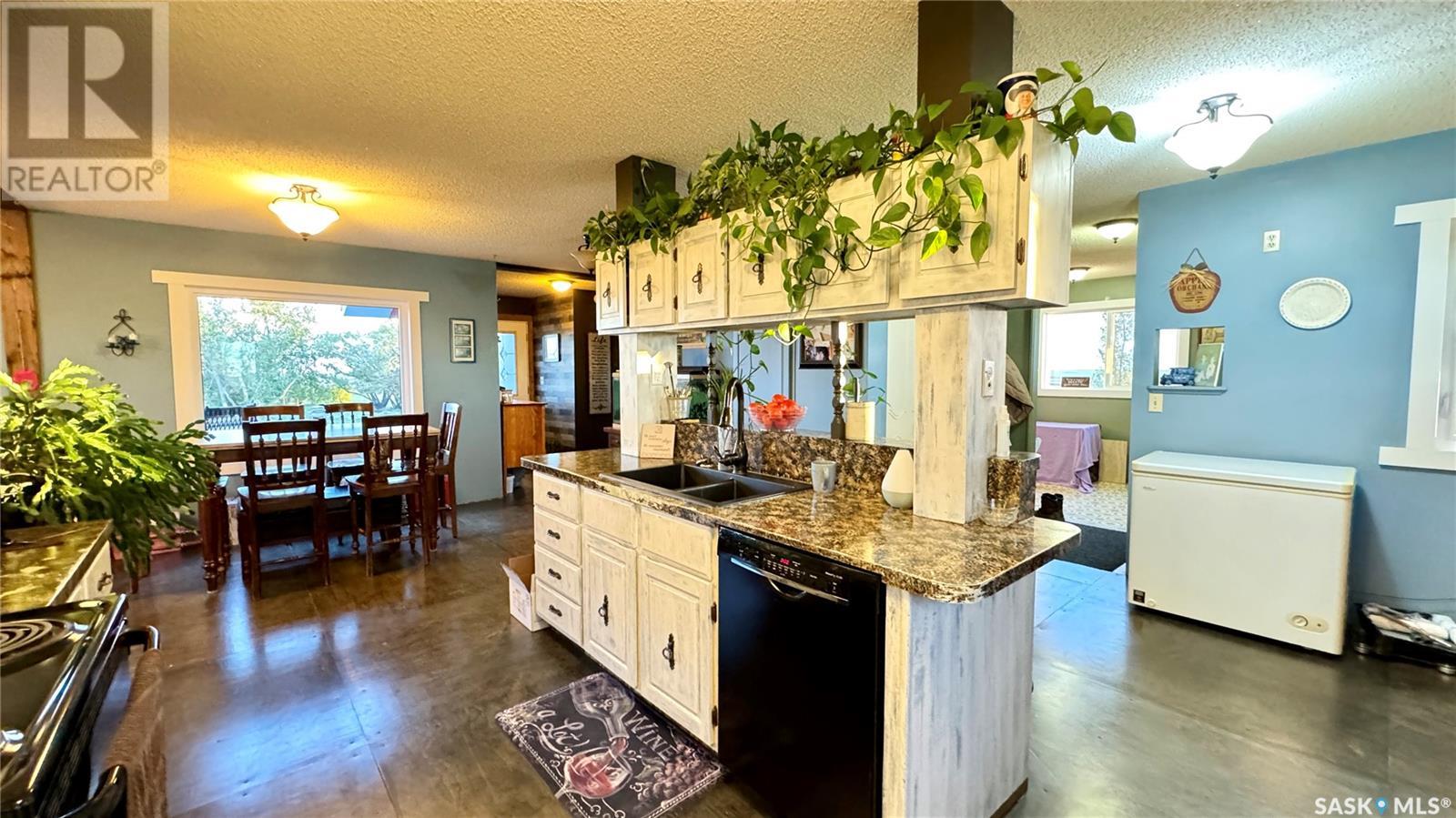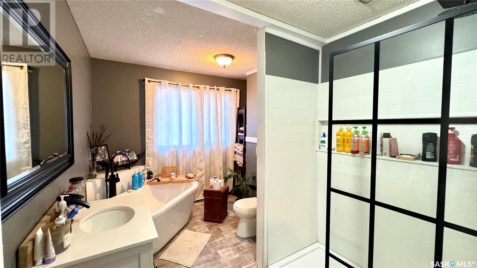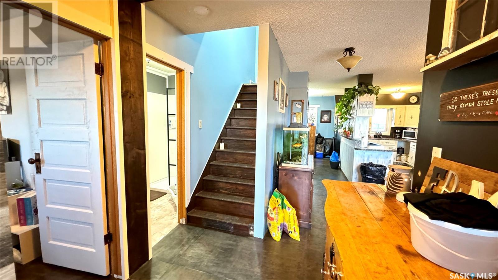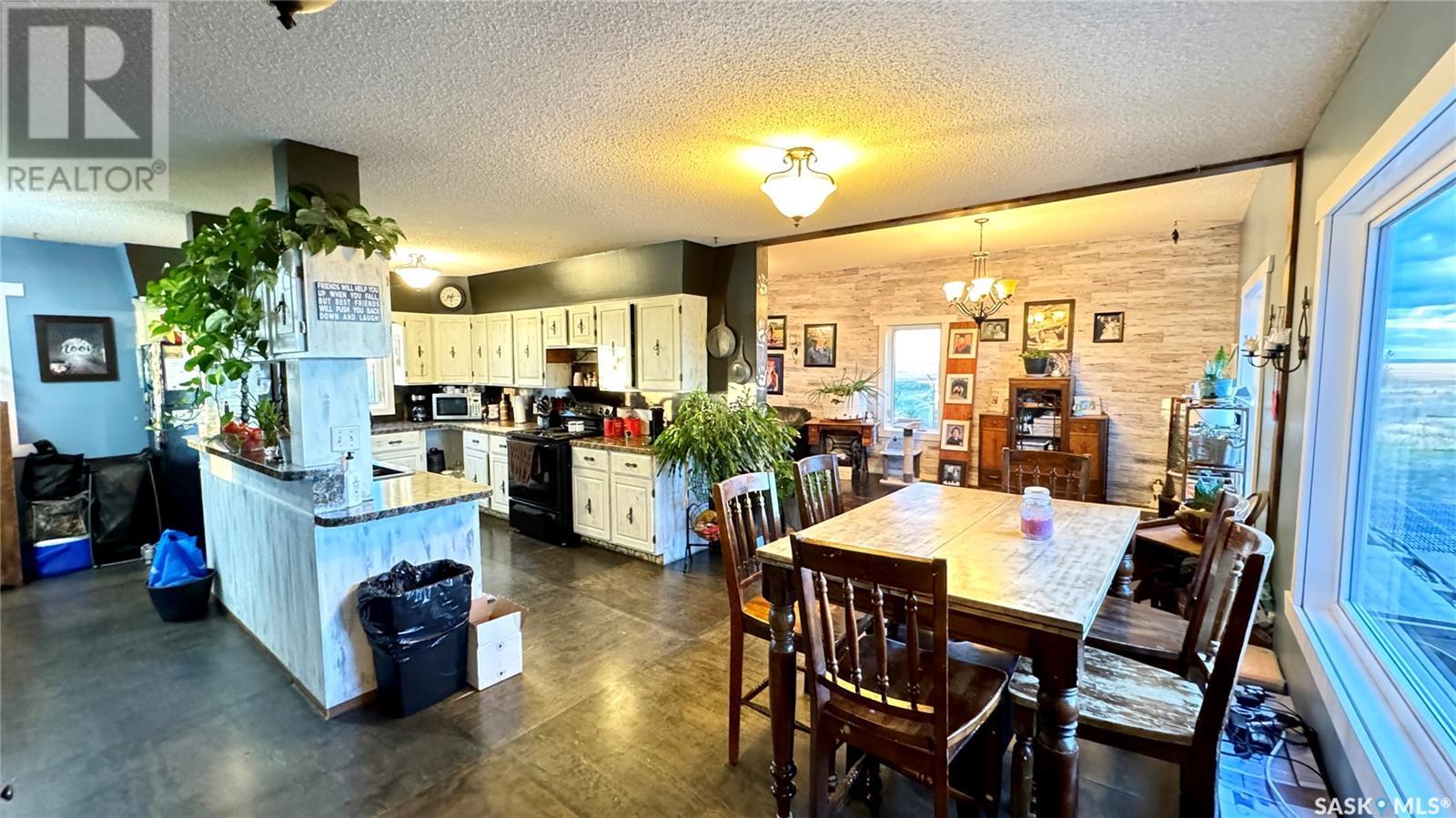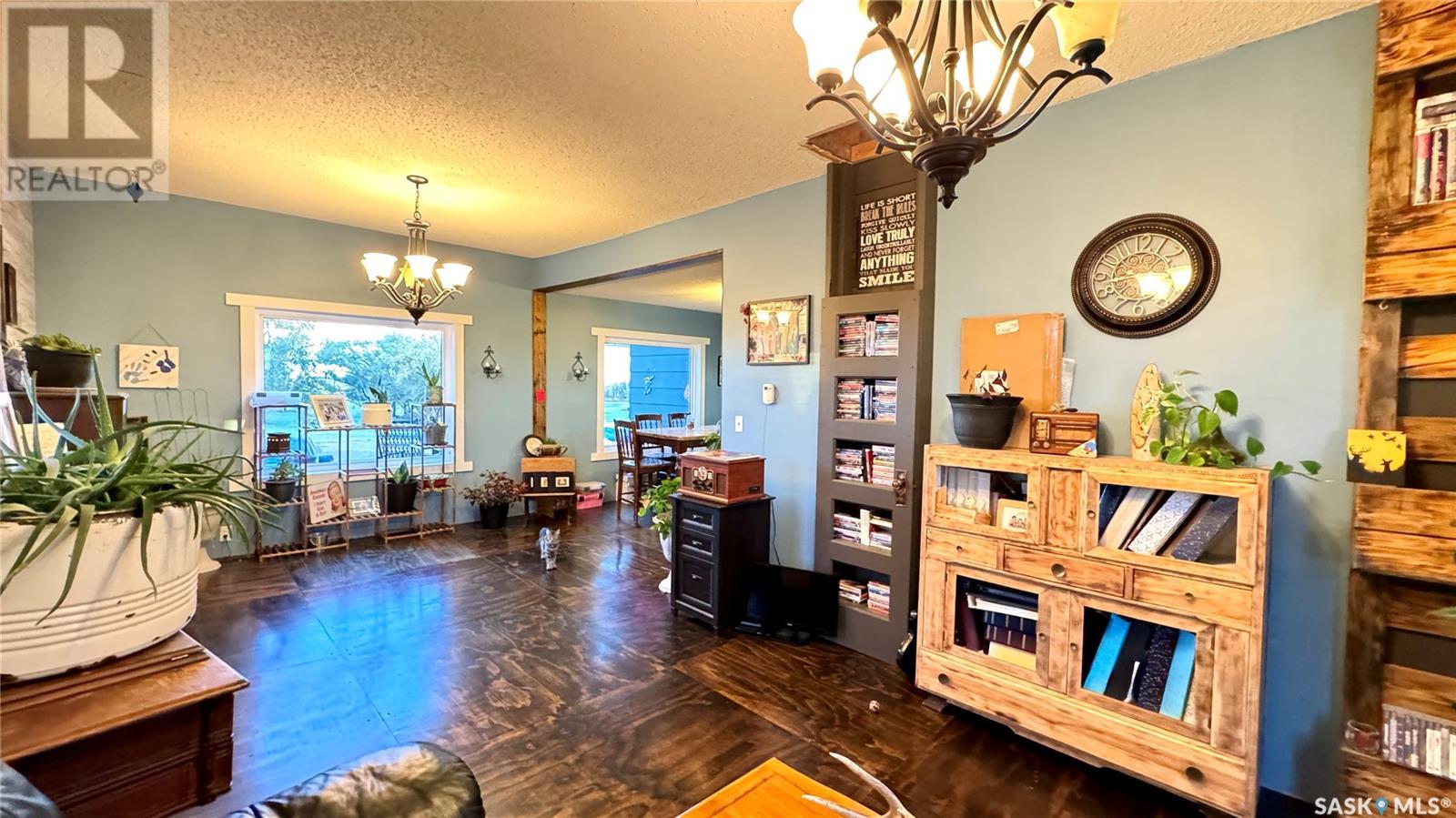 Located just 3.5 miles east of STRONGFIELD, SK, this 10-acre acreage offers modern comforts and COUNTRY CHARM, including MUNICIPAL WATER service. The 2,140 sq ft home, originally built in 1925 with a 1975 addition, was relocated in 2013 to its current location on a treated wood basement. With 6 bedrooms and 3 full bathrooms, this spacious home is perfect for families. The main floor features the master bedroom, a beautifully renovated bathroom with a free-standing soaker tub, an open-concept kitchen, dining, and living area, and the convenience of MAIN FLOOR LAUNDRY. Upstairs, there are 3 additional bedrooms and a full bathroom, while the basement includes 2 bedrooms, a large utility room, a combined rec room and family room, and plenty of storage. Recent updates include new triple-pane windows (2024), providing energy efficiency and abundant natural light. Outside, a 1,064 sq ft wrap-around deck offers plenty of space to relax and entertain while enjoying the peaceful surroundings. The property includes a few outbuildings, ideal for animals, and a dugout for watering animals, the lawn, and the garden. Plus, LAKE DIEFENBAKER is just 20 miles south on Highway 19, perfect for weekend lake getaways. This serene acreage combines space, comfort, and modern amenities. Don’t miss your chance to make it your own! Directions: 3.5 miles east of Strongfield, SK off of HWY 19. (id:43042)