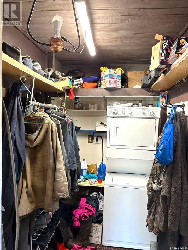 The location is terrific with close proximity to Saskatoon and Langham. If you are looking for a "fixer upper" on a sizable piece of land this might be for you! This was once a thriving dairy farm and has been downsized to a good sized acreage at 79.9 acres of partially fenced land. With some vision and desire it will be a fantastic property again. There are 2 decent sized bedrooms on the main and 2 rooms in the basement that are being used for bedrooms. Basement is mostly unfinished and used for storage. Some notable features include a small orchard with wild cherries, plums, crab apples and raspberries is close to the house. Also, if you like fish, the sellers have (summer stocked) trout with great success. Buyers and buyers reps will be responsible to verify measurements. (id:43042)