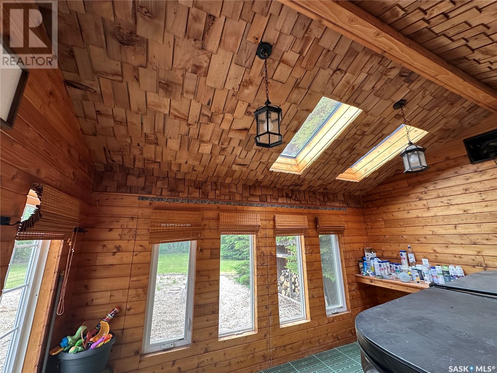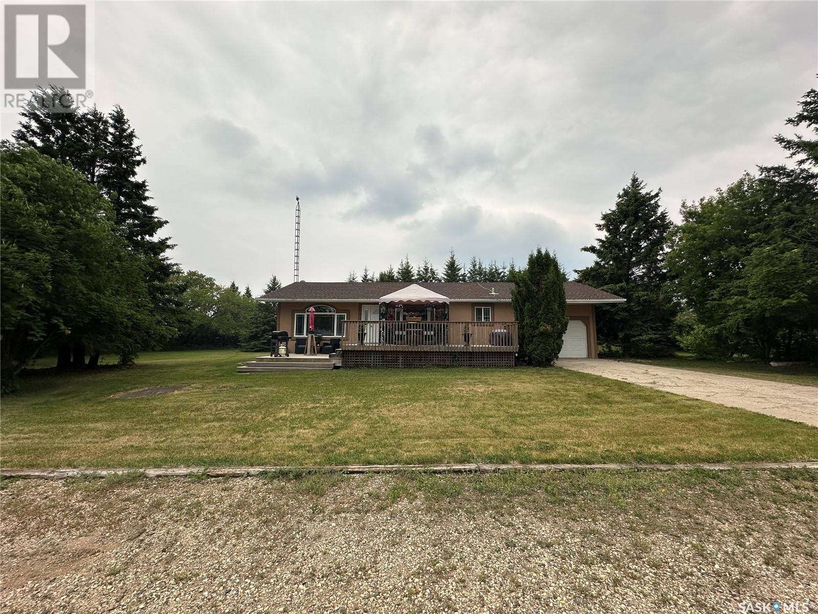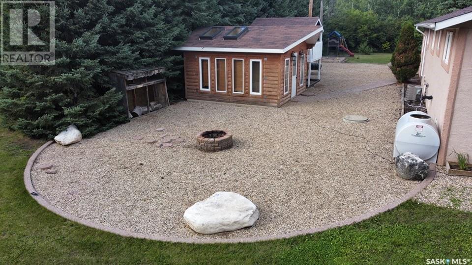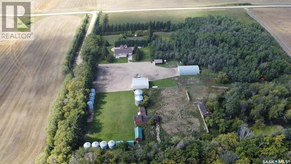 This beautifully maintained acreage offers the perfect blend of comfort, space, and functionality—ideal for hobby farming, outdoor living, or simply enjoying peaceful rural life. Tucked away on a private, well-treed yardsite, this bungalow features a bright, open-concept kitchen, dining, and living area with large windows that allow for plenty of natural light. The main floor includes three bedrooms and a full bathroom, along with a single attached garage for added convenience. The basement has been started but needs to be finished — there is a spacious family room, an additional bedroom, a den, a 3-piece bath, and a laundry/utility area. The yard is perfect for relaxing or entertaining, with a fire pit area, a large garden, and plenty of green space to enjoy. A hot tub is housed in its own separate building, though the hot tub is currently not in working order. The majority of the perimeter is fenced with barbed and page wire, and a dugout is located in the northeast corner. Various shelters and outbuildings throughout the property are well-suited for livestock or additional storage. The property is well equipped with a 36 x 44 heated workshop with concrete floor and power, a 40’x60’ Quonset—also with concrete floor and power—and a double detached garage and other outbuildings and bins. Potable water is delivered to the property and stored in a large holding tank located in the garage, ensuring year-round convenience. Recent upgrades add even more value, including a 200-amp underground power service (2025), a high-efficiency furnace (2024), a central vacuum system, a garage heater, and a garage door opener (2024). Conveniently located less than 20 minutes from Humboldt and just 10 minutes from Lucien Lake Regional Park, this well-rounded acreage offers endless possibilities in a peaceful country setting. (id:43042)