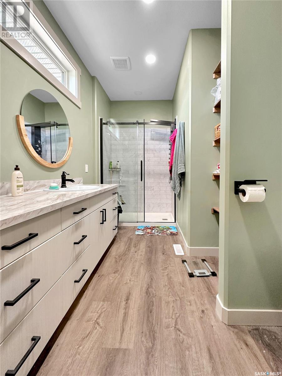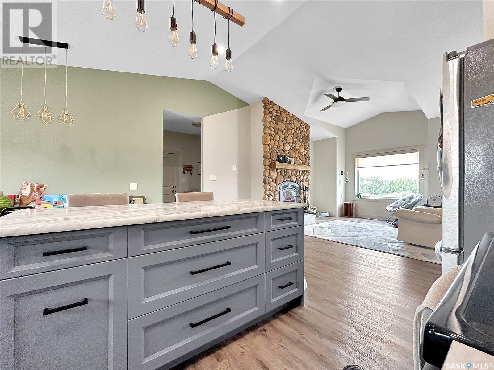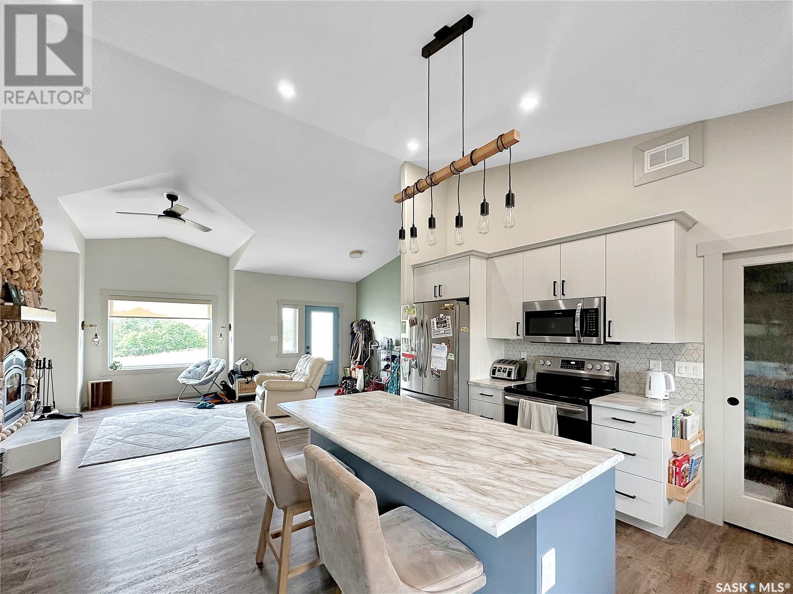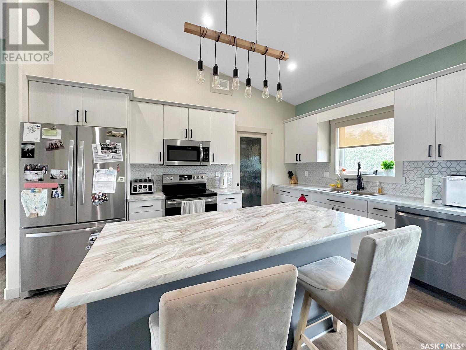 Its the new Stockholm acreage. Geothermal, ICF, walk out- the wow factors there. Double over sized attached garage with extra height give the hunter or mechanic extra room to hoist, hang, dangle whatever you're into. The main floor boasts a generous entrance with oodles of storage, a classy 2 pc bath for the quick wash up and an opposing main floor laundry space with wash tub & storage. Straight into a well lit main floor kitchen/dining/living room with open access keep the convo flowing while entertaining or getting the DL from the crew/family after lifes busy days. A large walk out facing east off the dining room keep the next owner reminded of the great prairie back drop this homes anchored upon. A full four piece bath, 3 main floor bedrooms, a master ensuite, cutstom bedroom built ins and a spiral slide to the basement give this acreage a definite one of a kind vibe! A highlight is the calming tones and cohesive floor textures throughout the main floor. The basement boasts a concrete walk out, a large rec room, full basement bath, storage and extra cold room.storage as well as an additional 3 bedrooms. Modest taxes, modest utilities, great water (including heated holding tank & geothermal)RO ) make this a great option to consider if your on the hunt to purchase in the thriving potash community of SE Sk! (id:43042)